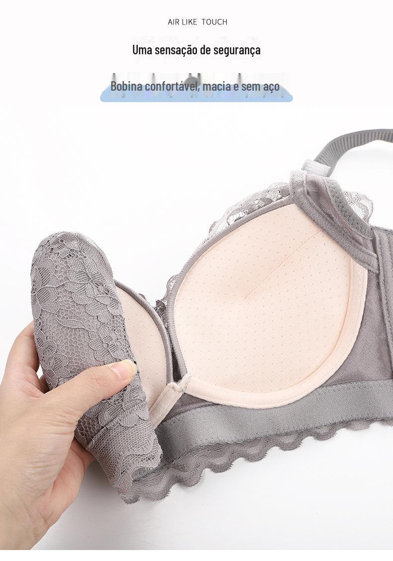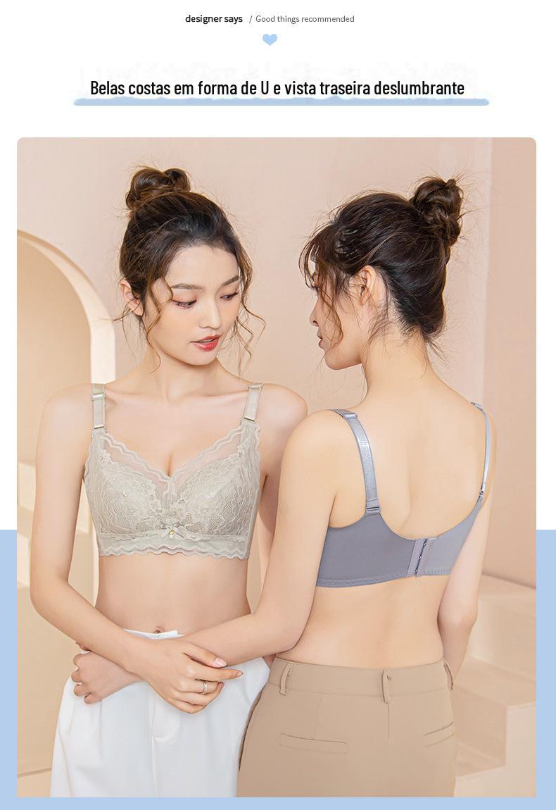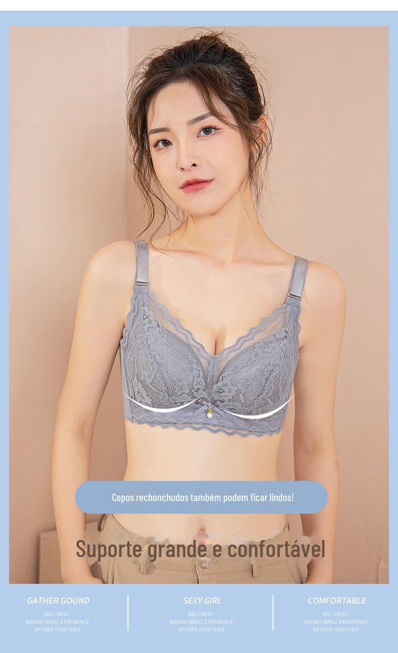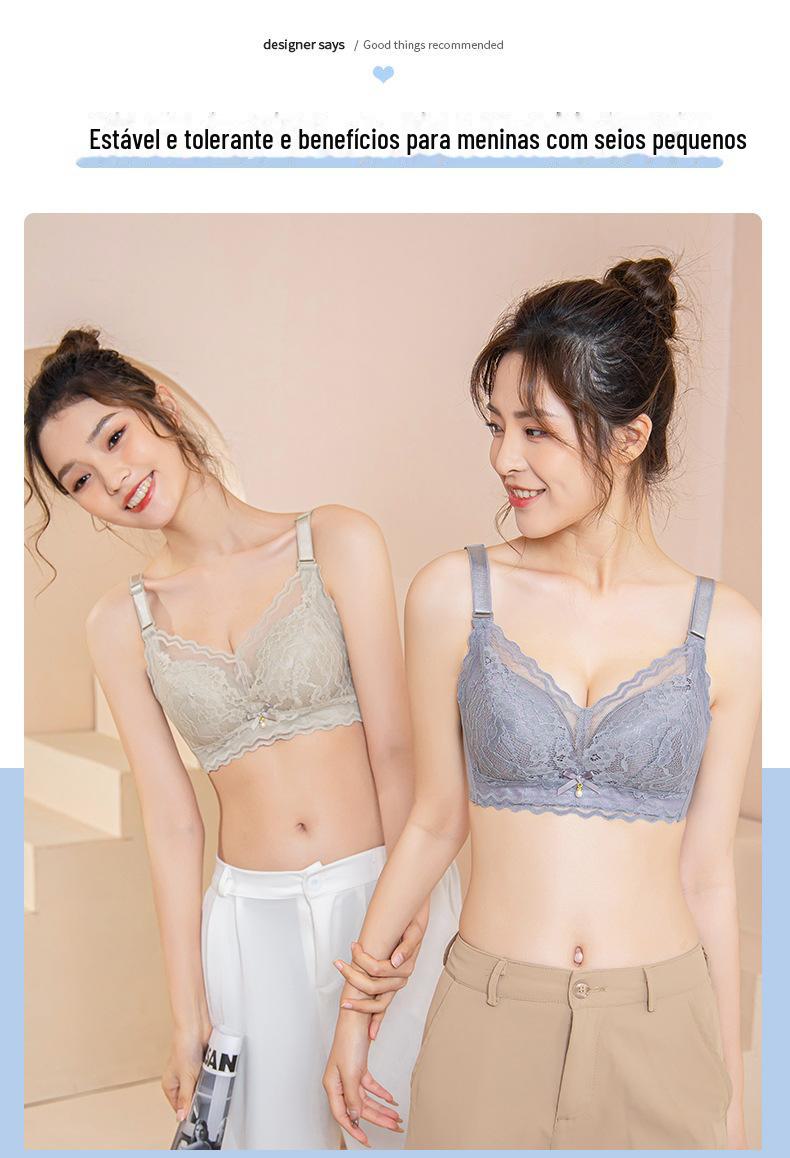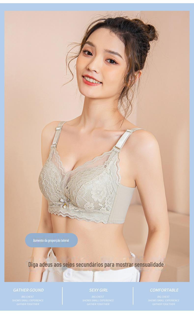 Roupa interior ajustável anti-flacidez sem anel de aço peito pequeno reunindo grande confortável acessório peito respirável sutiã de renda
