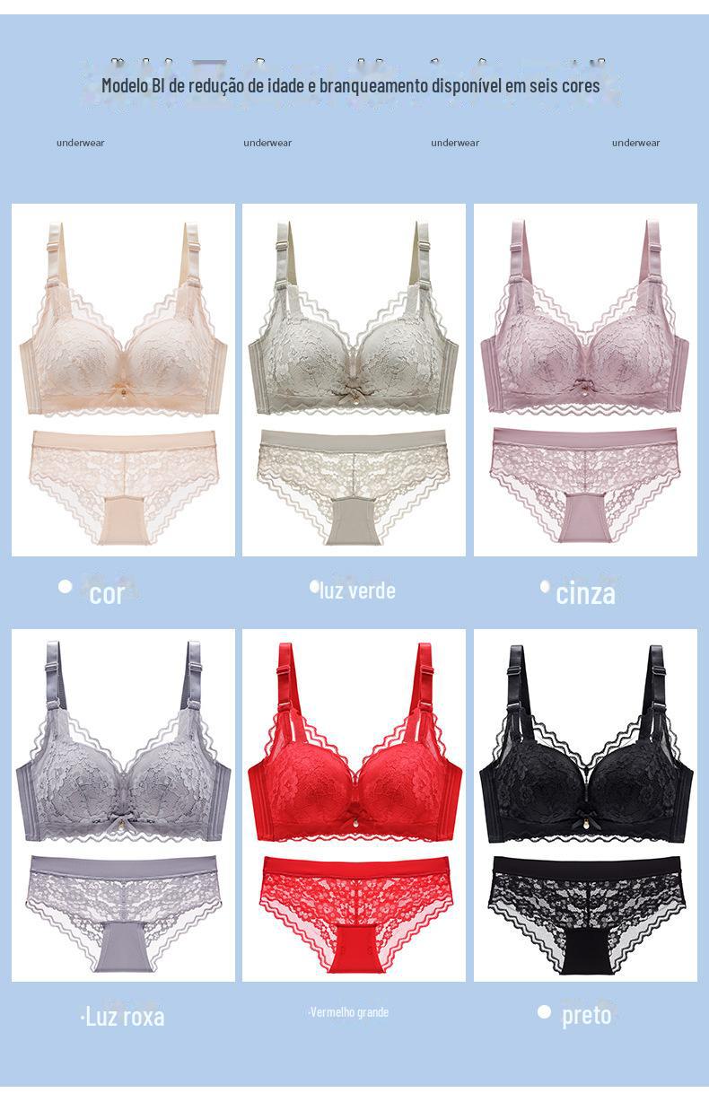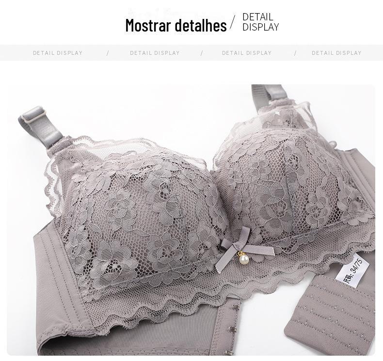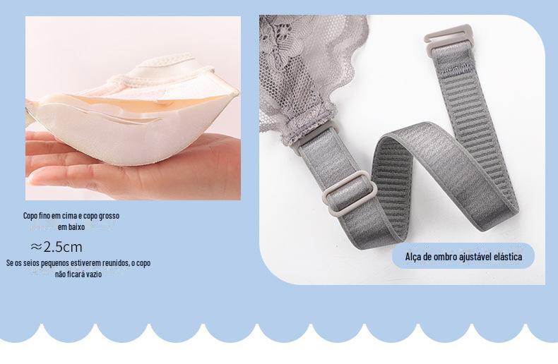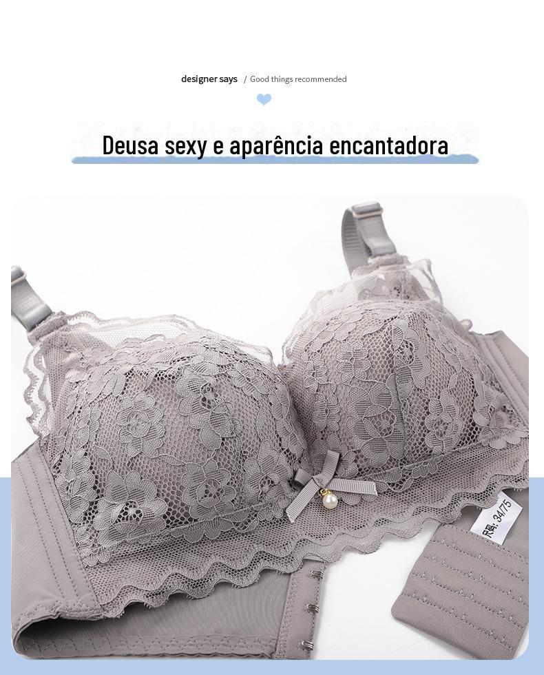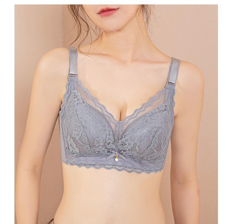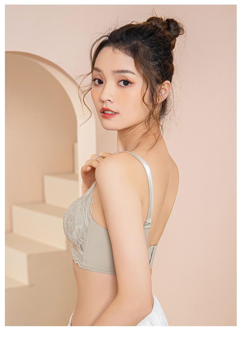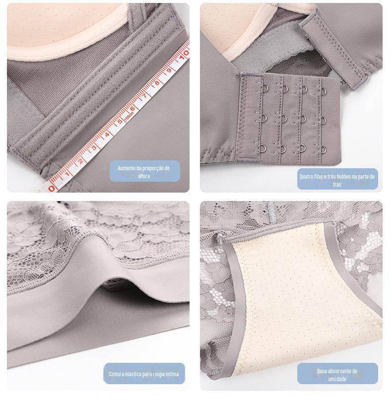 Roupa interior ajustável anti-flacidez sem anel de aço peito pequeno reunindo grande confortável acessório peito respirável sutiã de renda