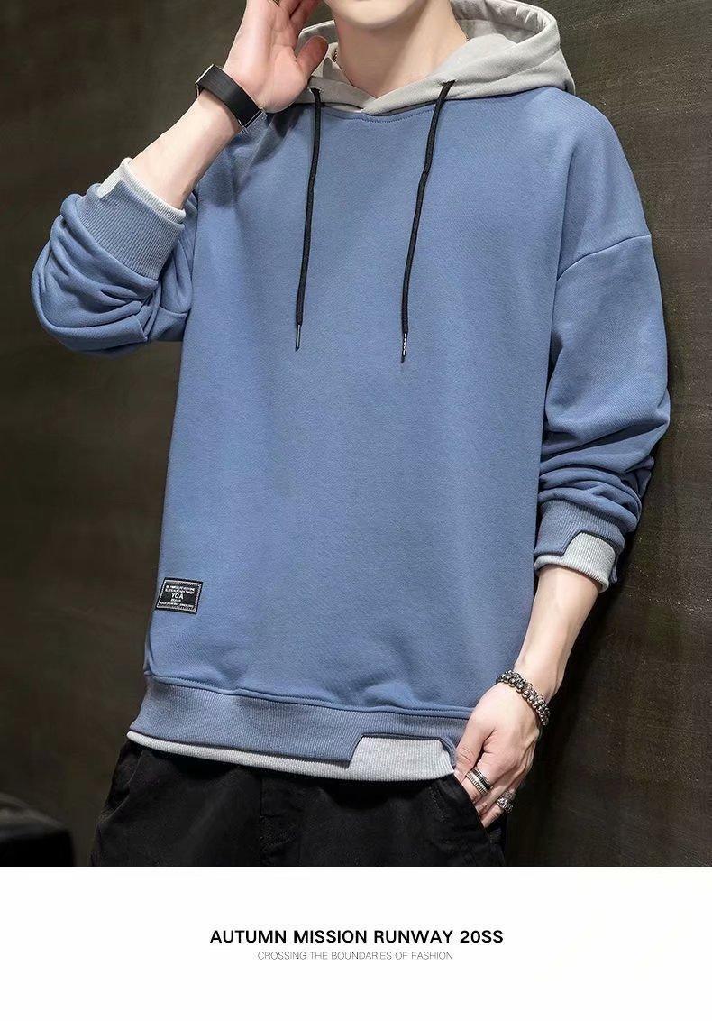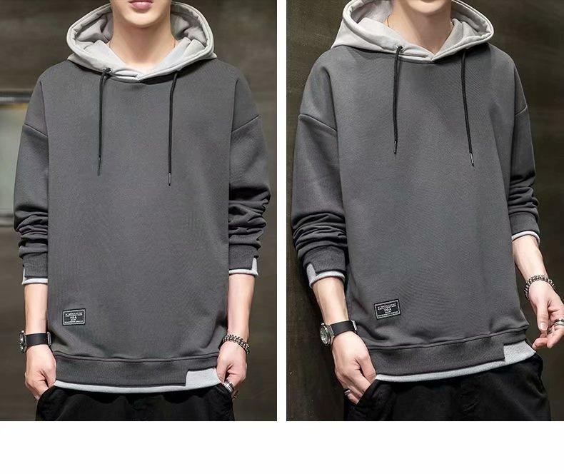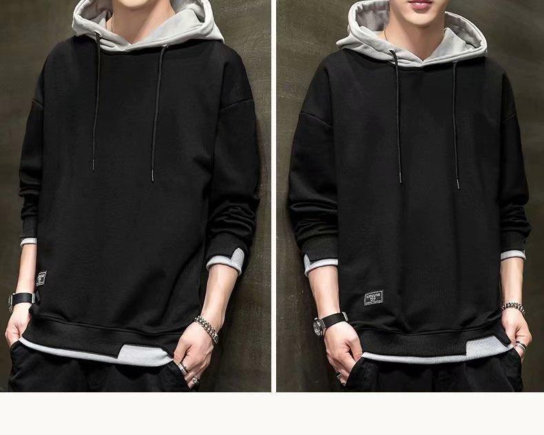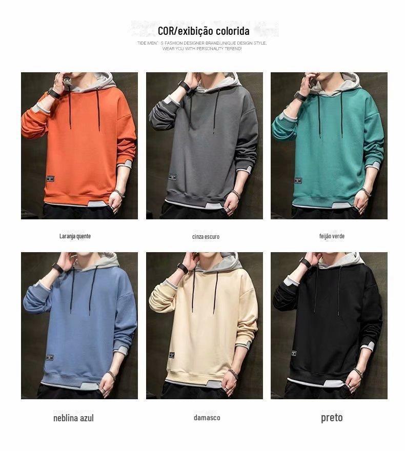 Suéter com capuz masculino 2021 Primavera e Outono Nova moda solta all-matching top trendy casaco casual de duas peças fake