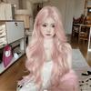 [Creme rosa e branco] Peruca feminina testa renda estilo diário rosa platina rede celebridade cabeça cheia cabelo longo encaracolado peruca