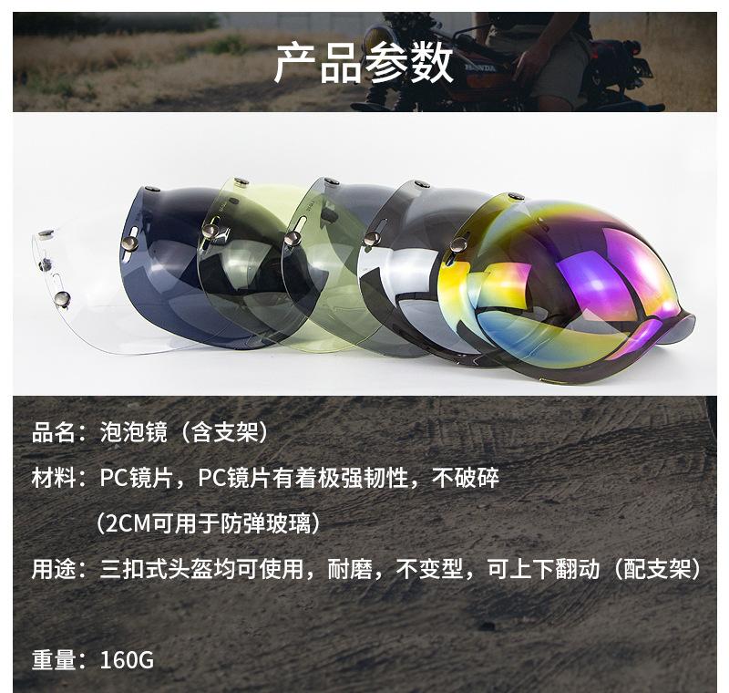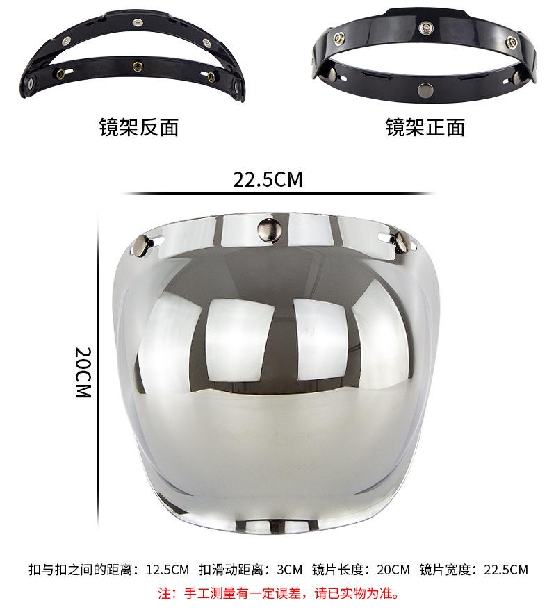 Lente de Capacete de Motocicleta Mais Vendida Espelho Bolha Capacete Meio Capacete Capacete Retrô Capacete de Aviador Lente de Três Botões com Conjunto de Moldura