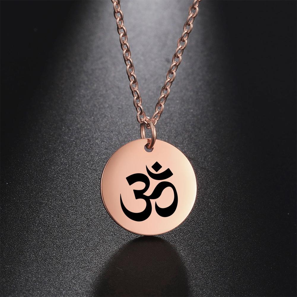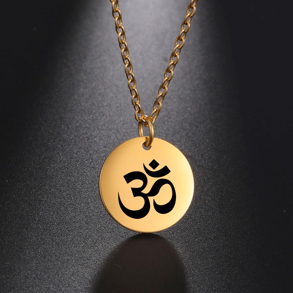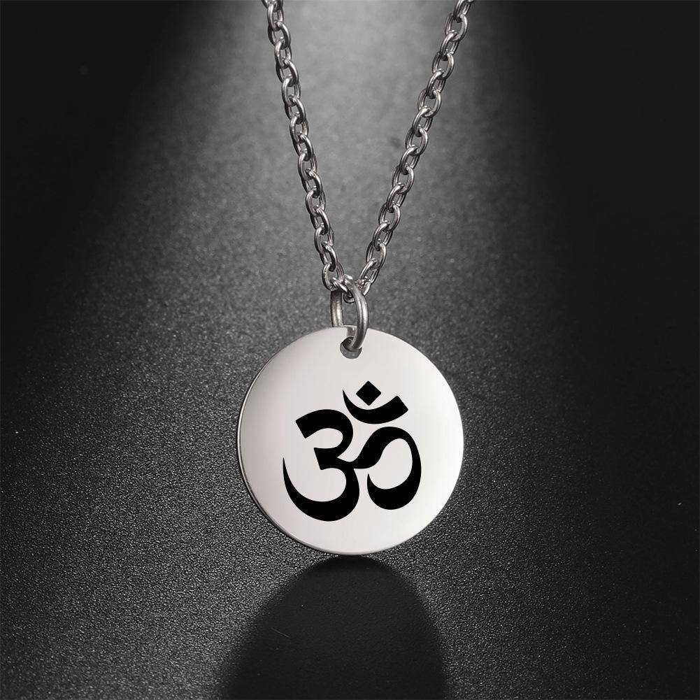 Cross-border europeu e americano venda quente punk hip hop estilo marcação a laser OM personagem yoga símbolo pingente colar de aço inoxidável para mulheres