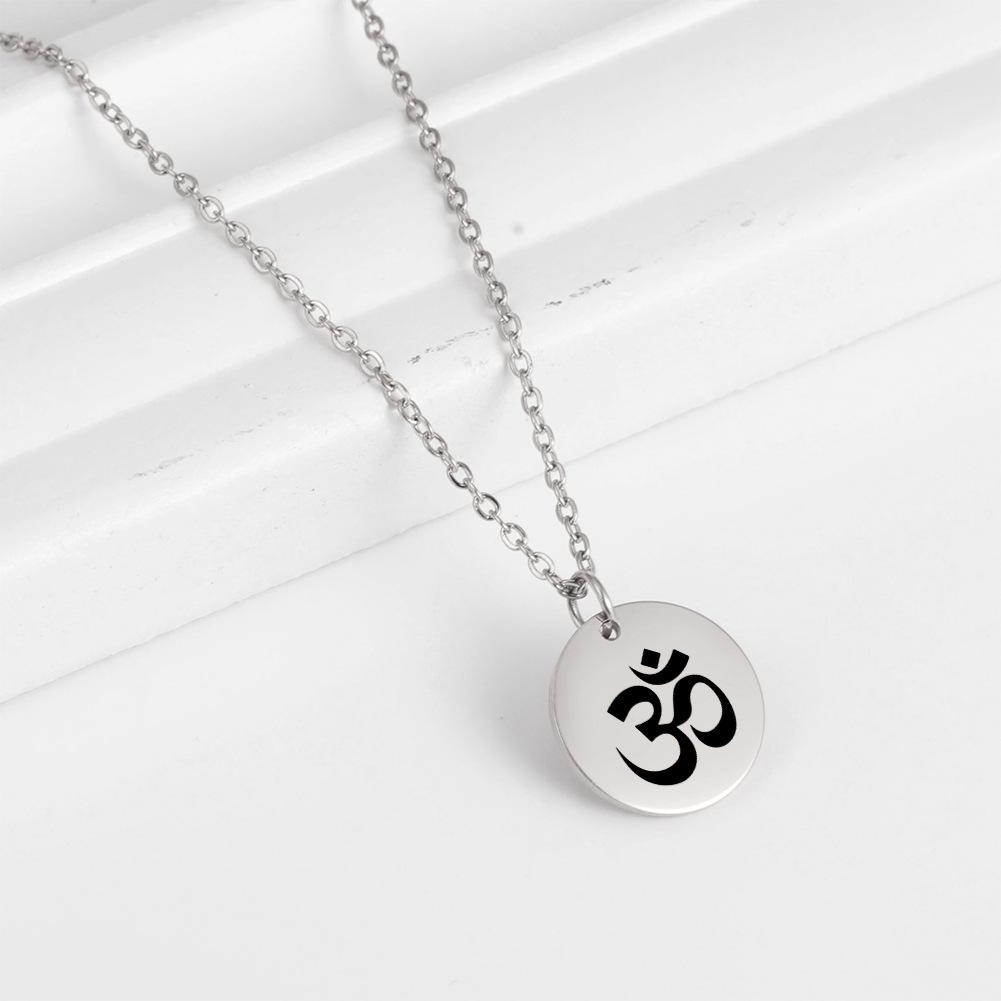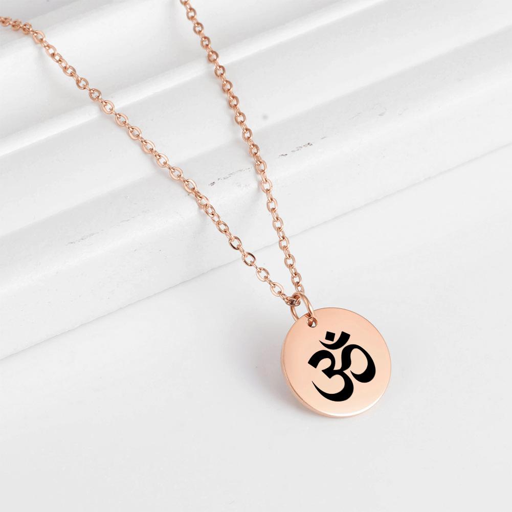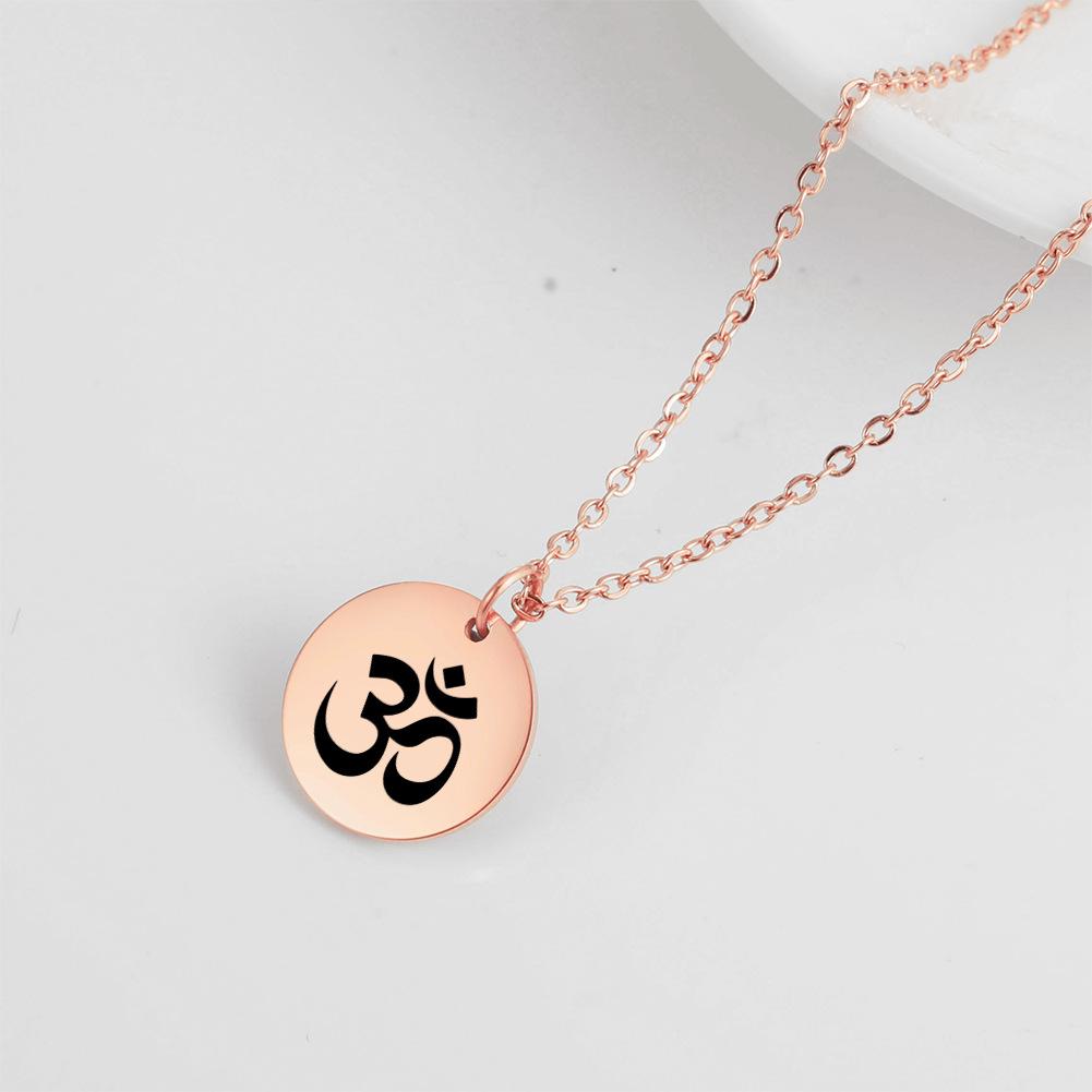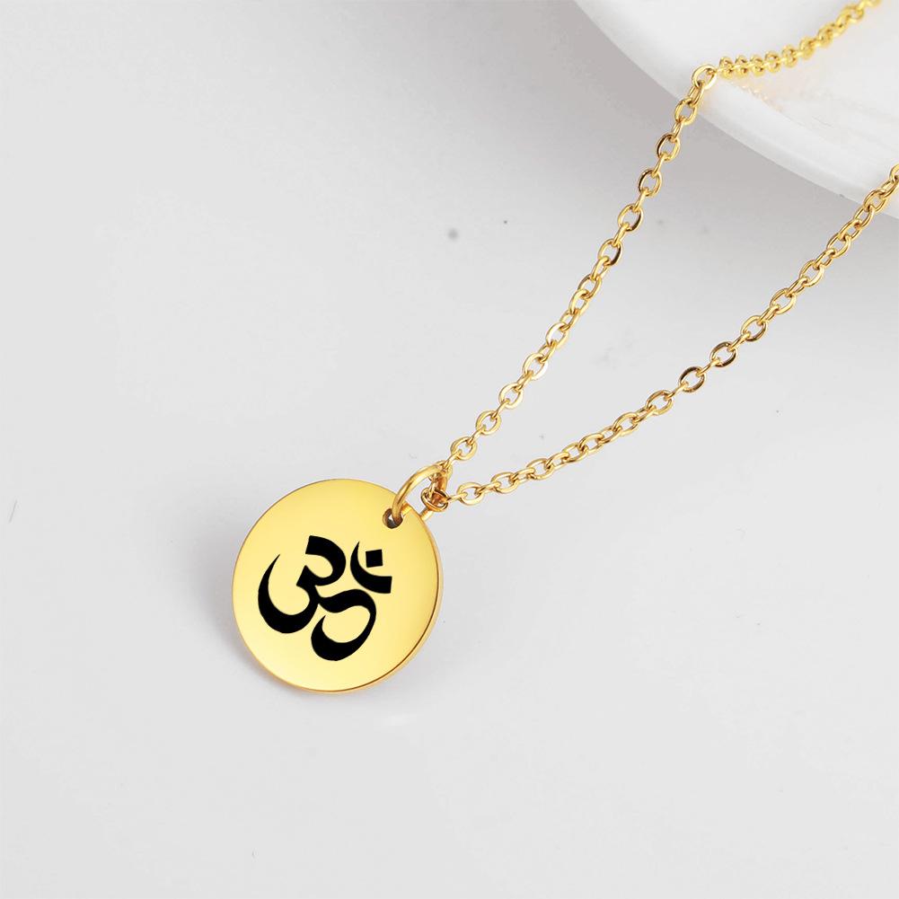 Cross-border europeu e americano venda quente punk hip hop estilo marcação a laser OM personagem yoga símbolo pingente colar de aço inoxidável para mulheres