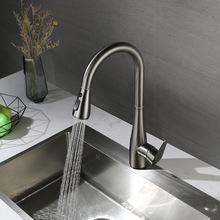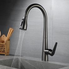 Torneira de cozinha telescópica de aço inoxidável SUS304, pistola cinza de comércio exterior, quente e fria, torneira de pia de vegetais