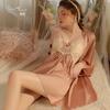Cross-border Ice Silk suspender saia feminina de verão fina de seda artificial sexy camisola francesa com almofada no peito roupa interior de renda preta