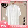 Meia-idade e idosos Tang Terno Masculino Verão Algodão e Linho Top de manga curta com fivela Estilo chinês Linho Estilo Antigo Terno Marido Masculino