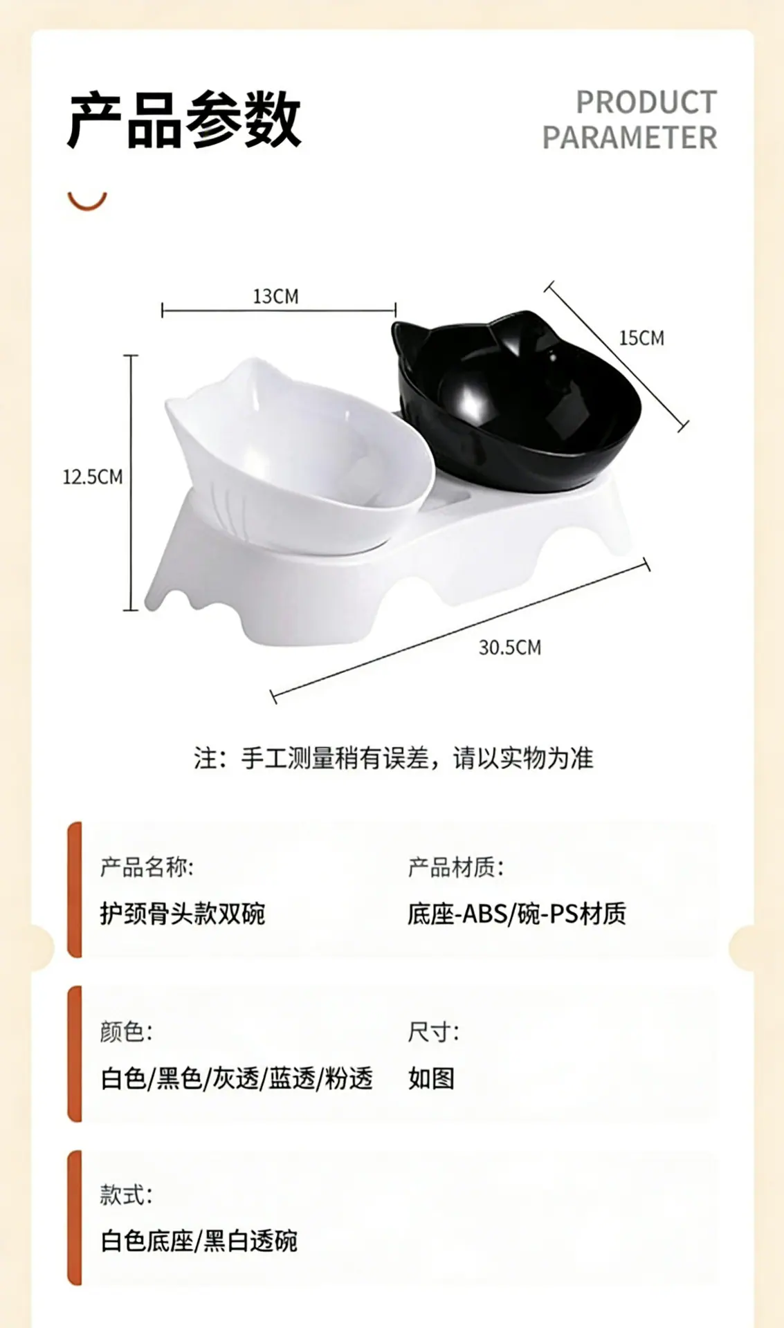 Bone pattern double bowl-gray transparent + gray transparent (Bowl without beard), Bone pattern double bowl-bl...