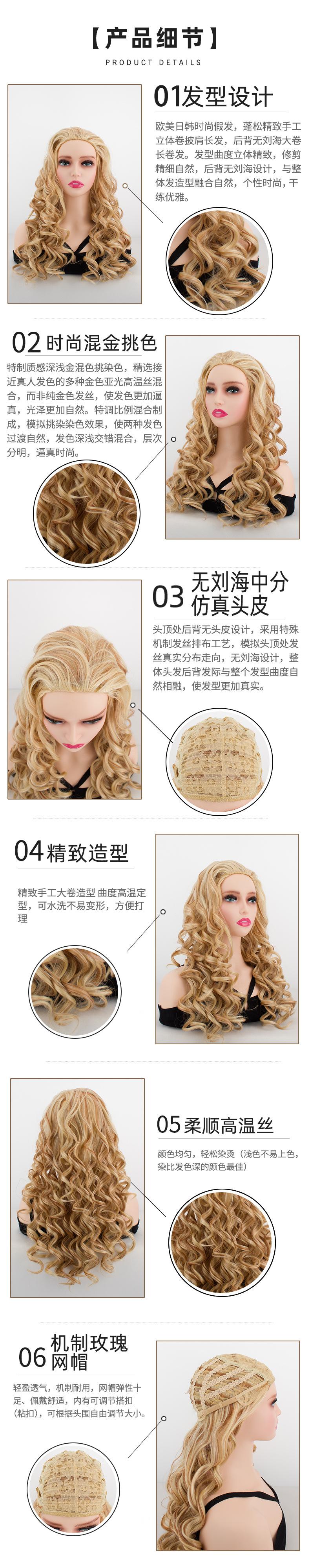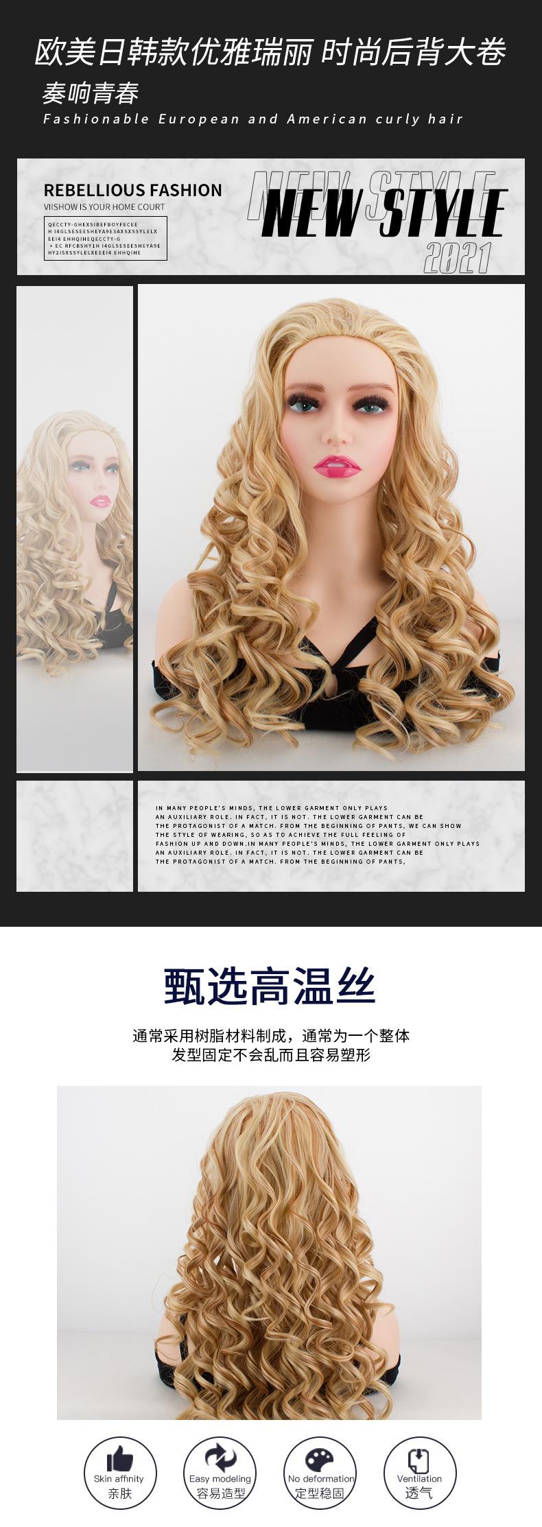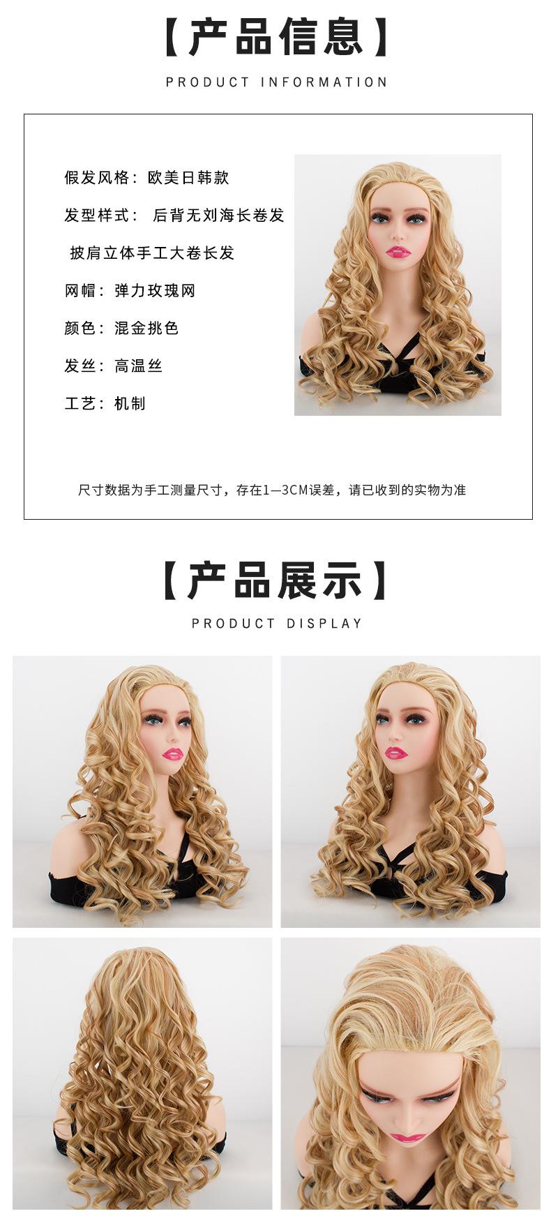 Peruca Europeia e Americana Transfronteiriça Cor Mista Dourada Onda Grande Costas Sem Franja Peruca Xale Fofo Cabelo Longo Cacheado