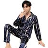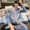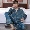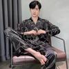 Primavera e Verão fino artificial seda gelo pijamas homens Jacquard cardigan calças de manga comprida plus size homewear plus size