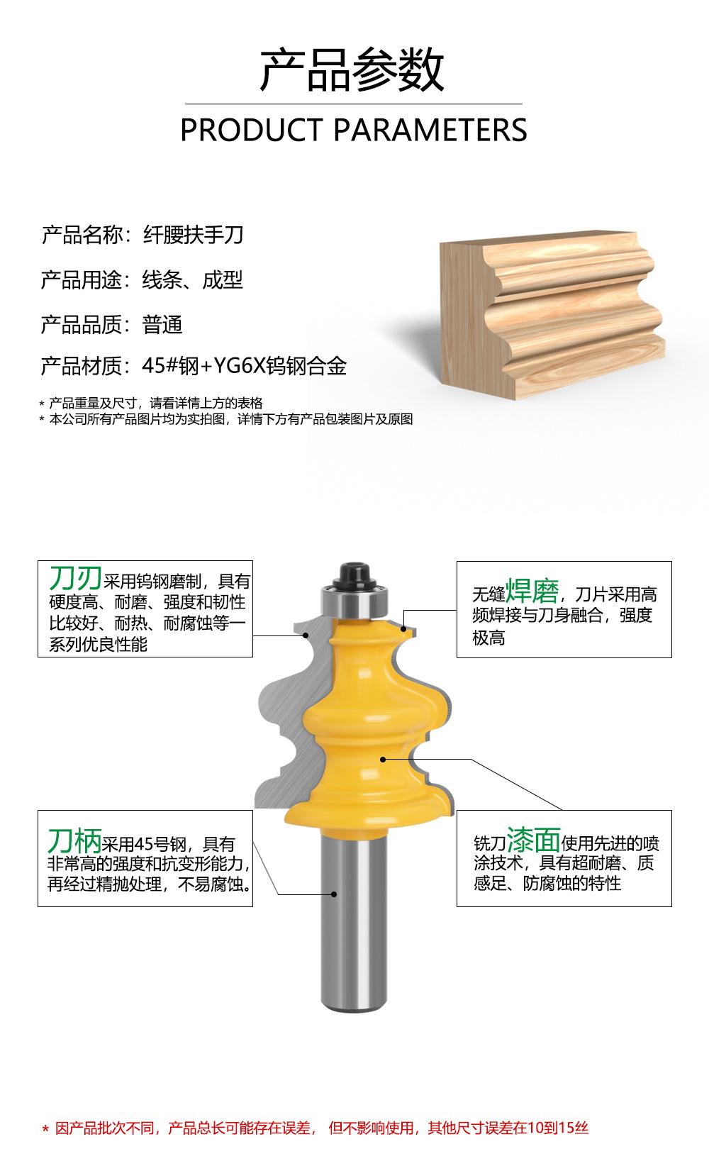 As alças do cortador de madeira incluem: 3 mm, 6 mm, 1/4 "(6,35 mm), 8 mm, 12 mm, 1/2" (12,7 mm)