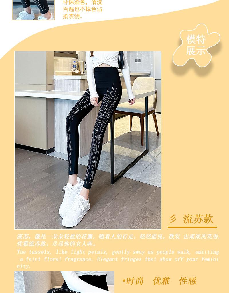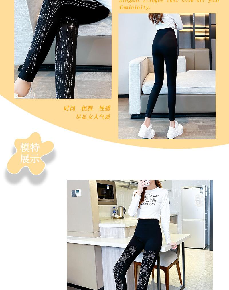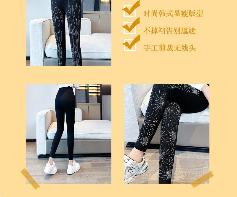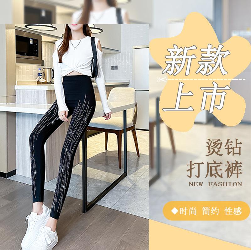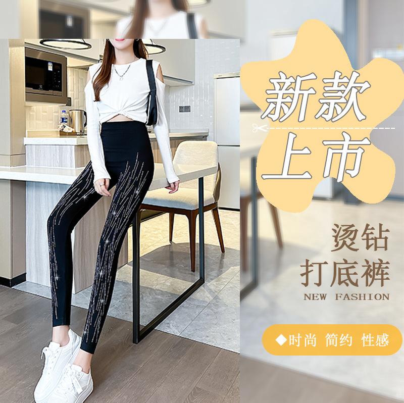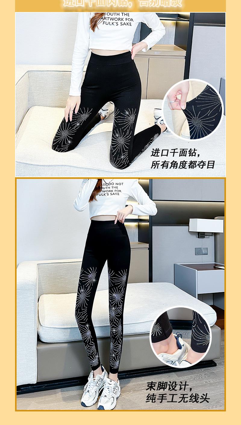 Leggings Novas de Primavera e Outono Roupa Exterior Feminina Modal Diamante Quente Lápis Calças de Perna Pequena Cintura Alta Emagrecimento Mais Fácil para Combinar Calças de Nove Pontos
