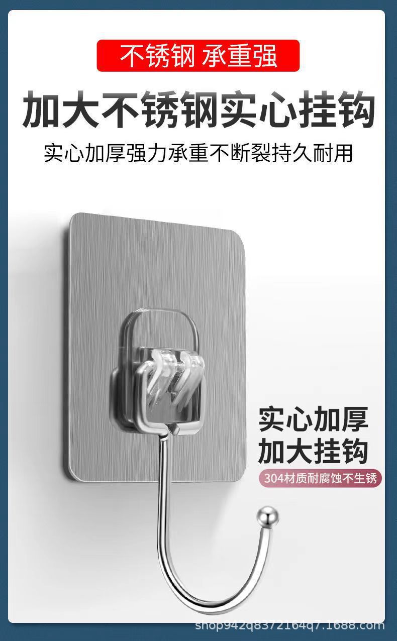 Gancho pasta forte vara aço inoxidável oversized sem costura não perfurado gancho pegajoso gancho gancho cozinha banheiro gancho