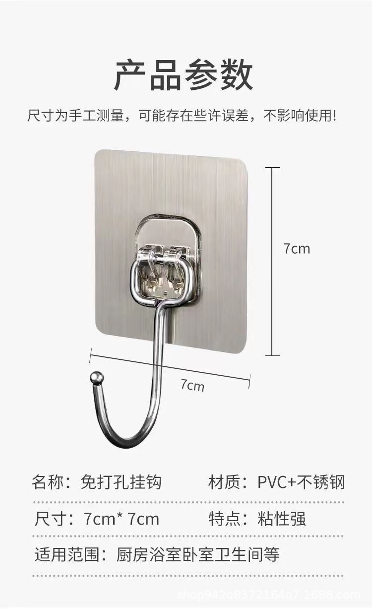 Compre Gancho pasta forte vara aço inoxidável oversized sem costura não perfurado gancho pegajoso gancho gancho cozinha banheiro gancho no atacado no Joom.pro