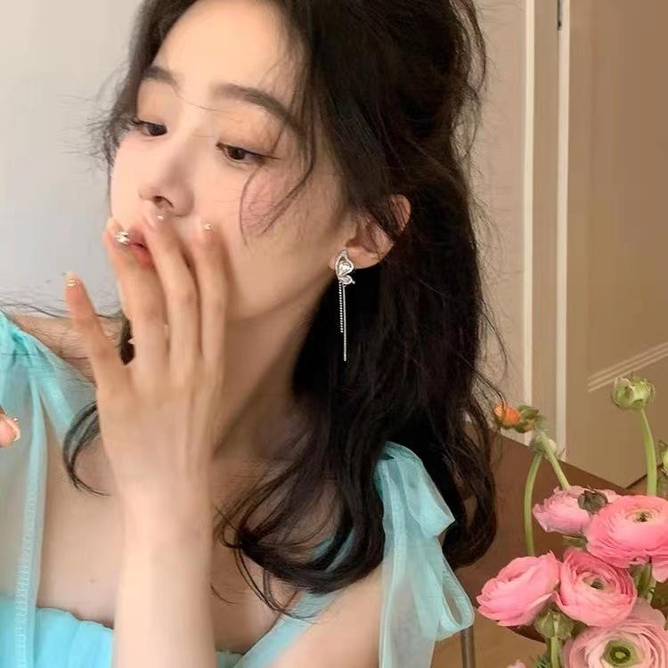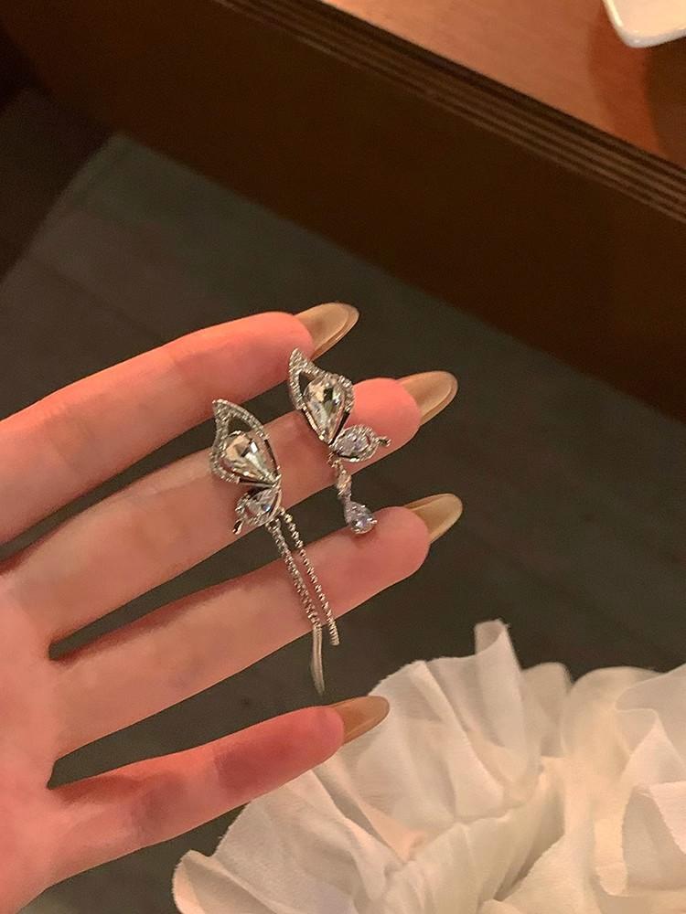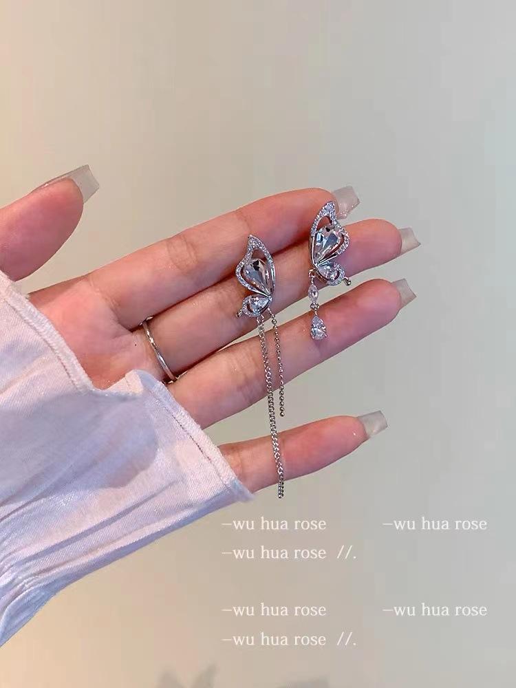 Brincos de pino de borla de strass de borboleta assimétrica doce design de nicho avançado requintado brincos de orelha de elfo