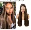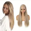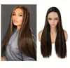 Perucas de Estilo Europeu e Americano para Mulheres, Cabelo Longo Liso com Repartição Central, Cabelo Sintético Macio, Fibra de Alta Temperatura, Peça de Cabelo Sintético com Renda Frontal, Perucas de Renda