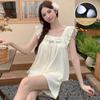 Pijamas Verão Novo Bubble Crepe Algodão Sling Conjunto de duas peças com almofada peito Roupas de casa doce menina para uso exterior