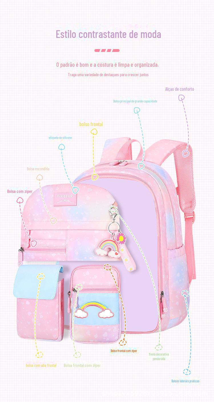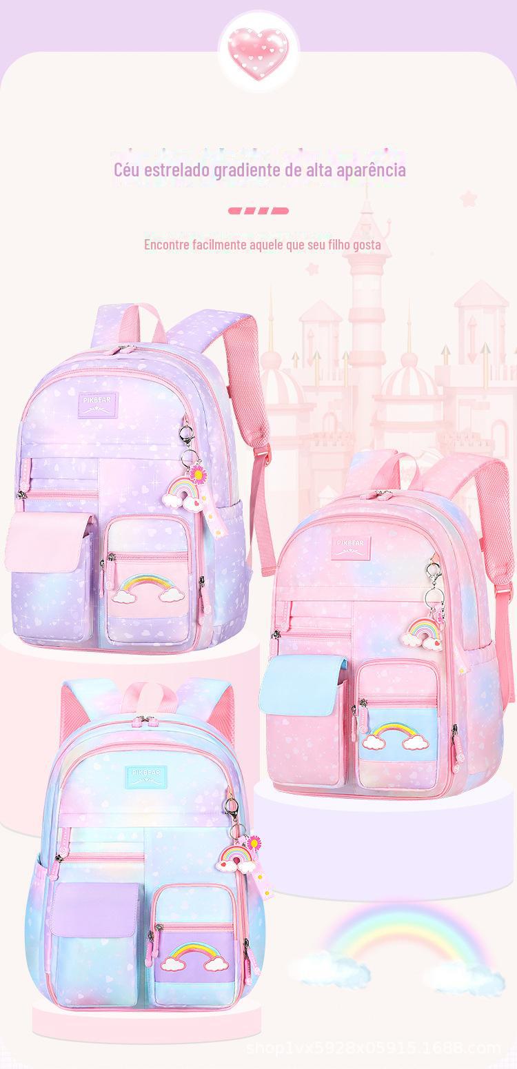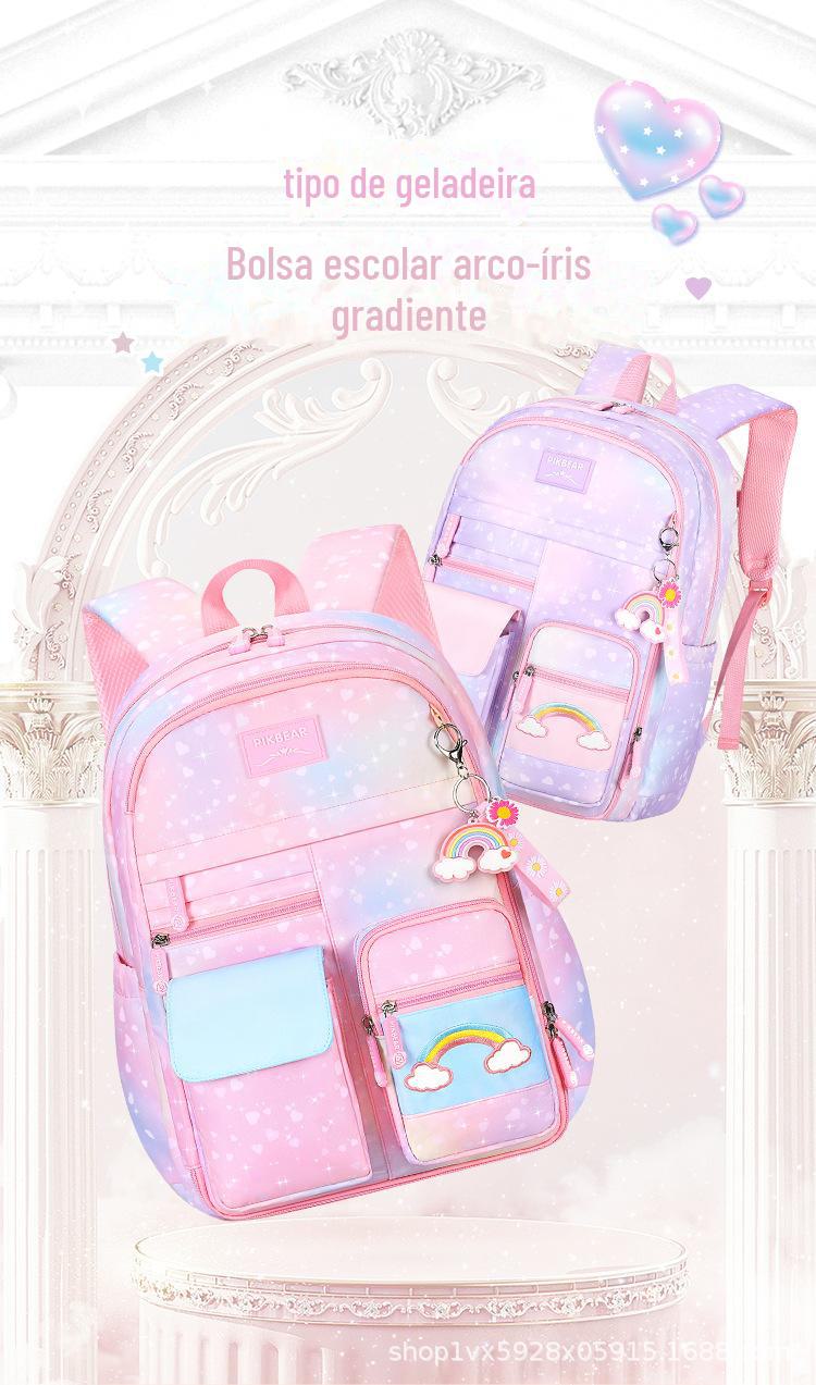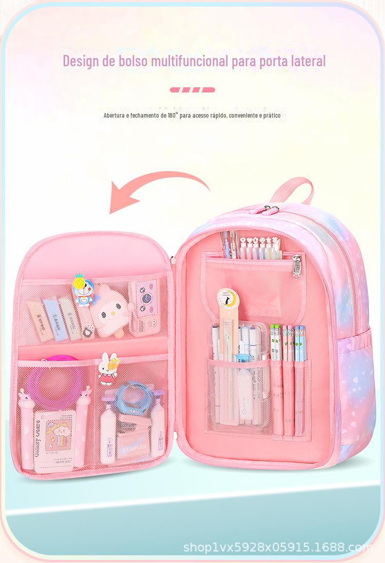 Mochila escolar infantil fofa para meninas, 1ª a 6ª séries, grande capacidade, mochila lateral aberta, nova mochila escolar infantil