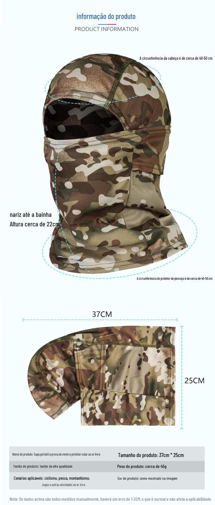 Cross-border capacete de motocicleta ao ar livre à prova de poeira Máscara de equitação de secagem Balaclava Hat verão máscara de camuflagem tática