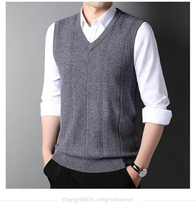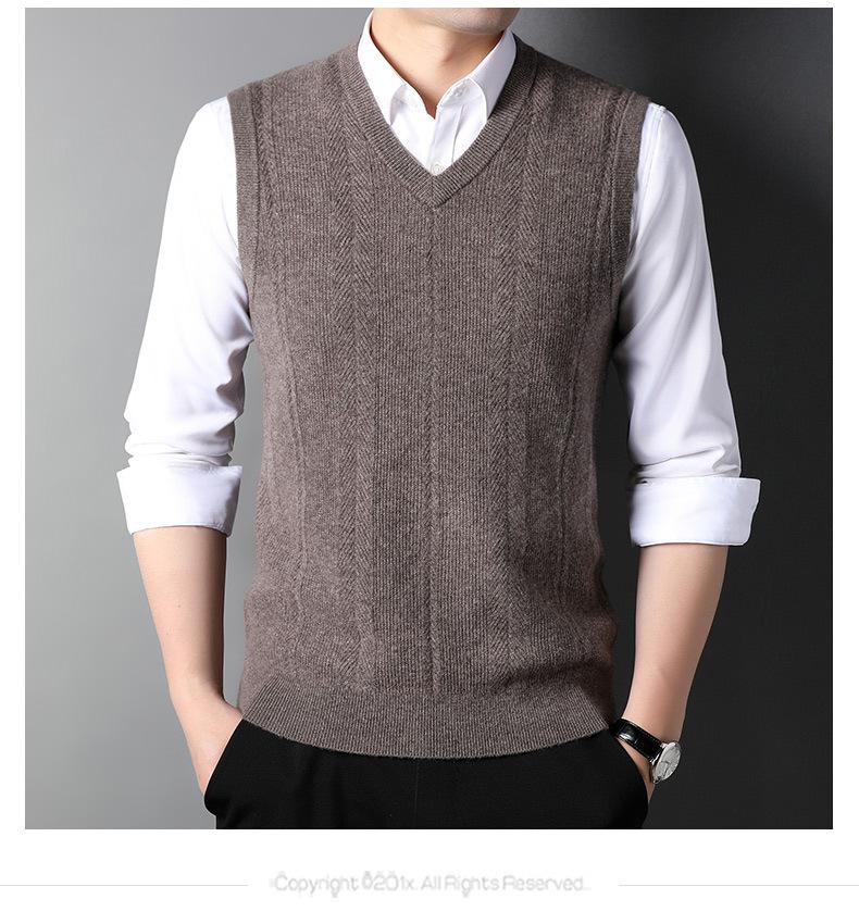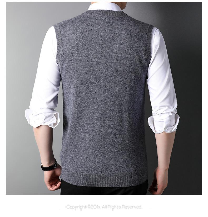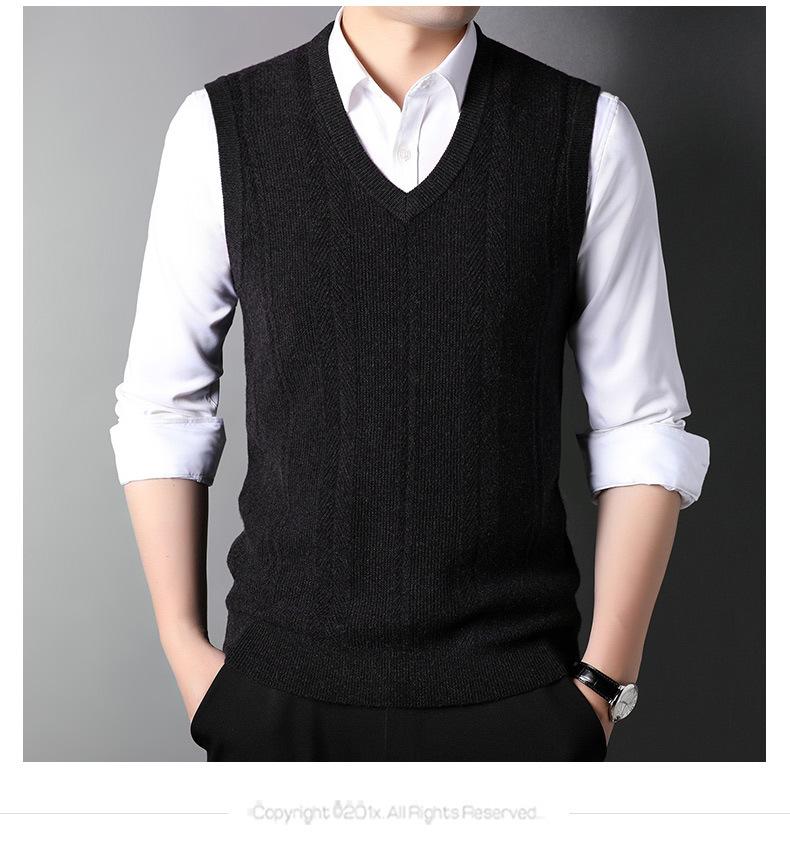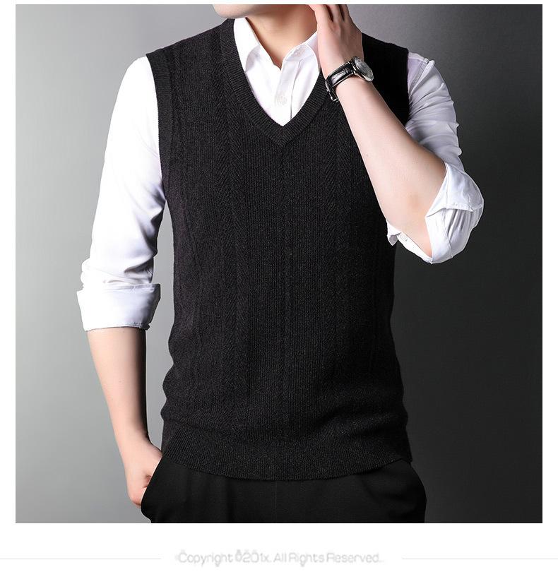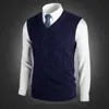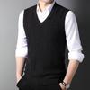 Jovens Outono e Inverno Masculino V-neck malha colete de lã colete Business Casual masculino sem mangas colete com cavalo de lã