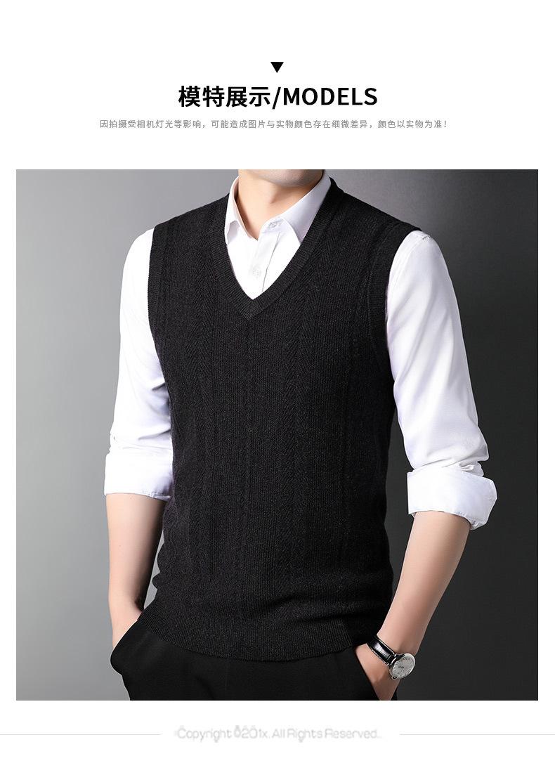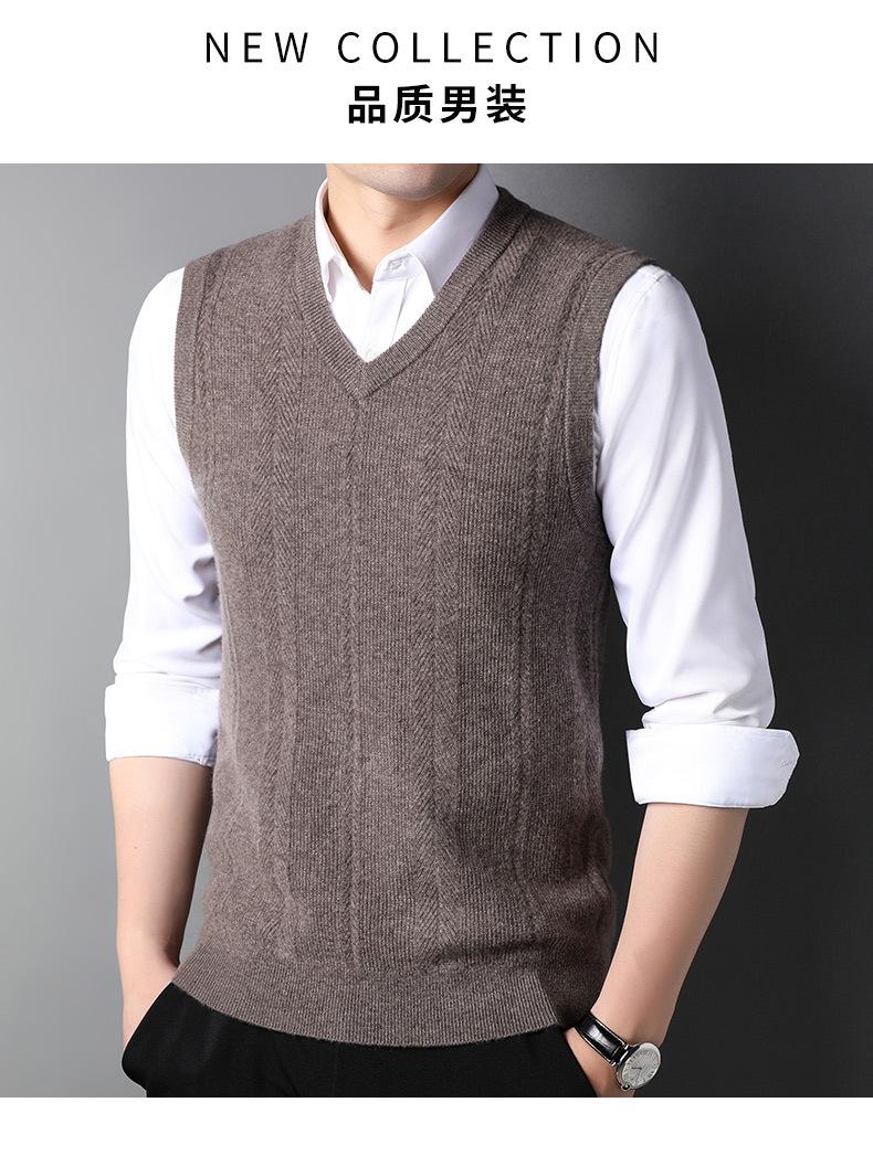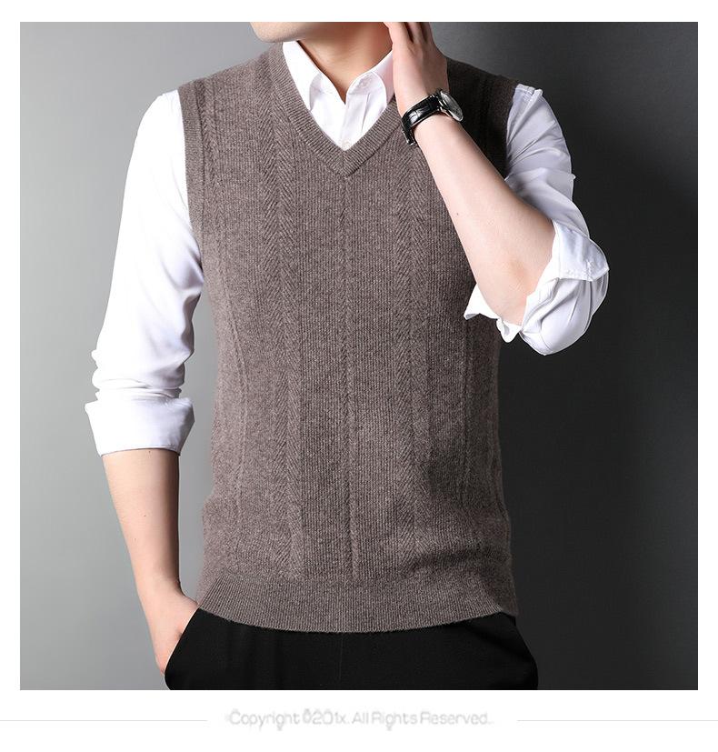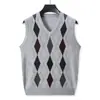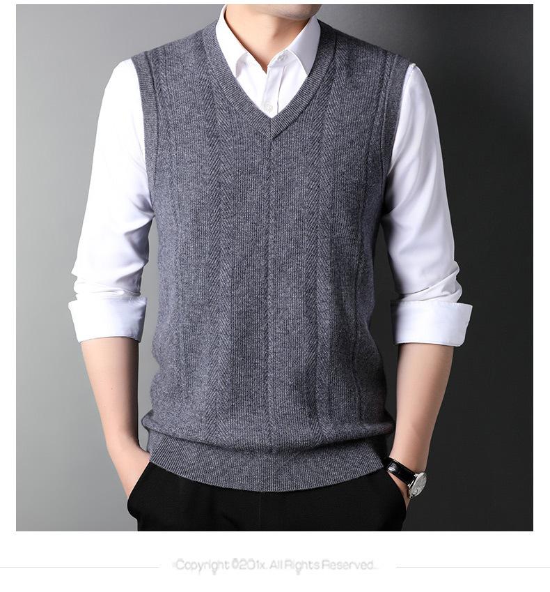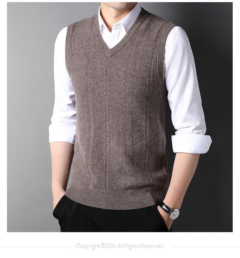 Jovens Outono e Inverno Masculino V-neck malha colete de lã colete Business Casual masculino sem mangas colete com cavalo de lã