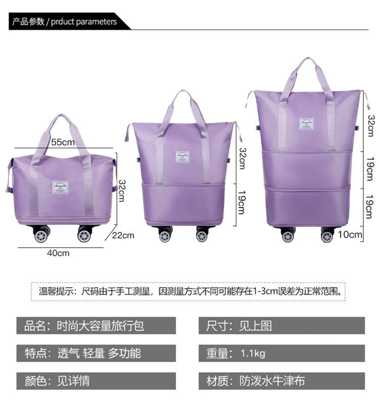 Bolsa de Viagem de Grande Capacidade para Homens e Mulheres, Bolsa de Bagagem Expansível, Bolsa de Bagagem para Compras, Roda Universal de Armazenamento, Embarque para Viagem de Negócios, Dobrável