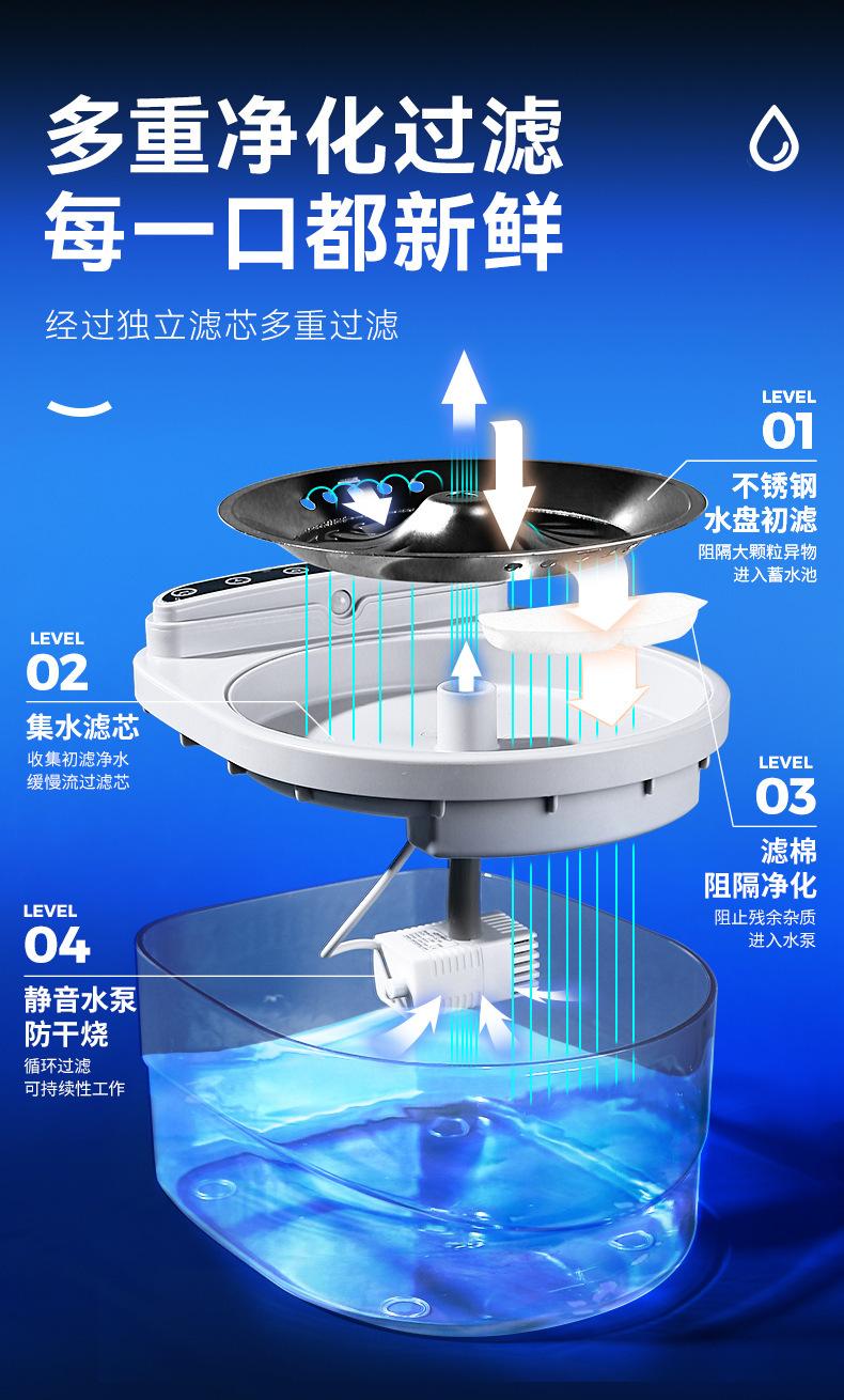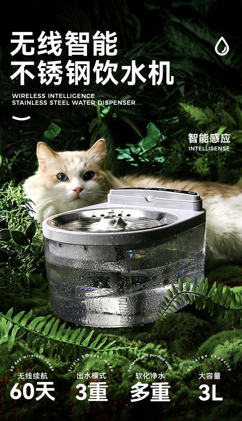 Compre Pet Smart Water Dispenser Ciclo sem fio recarregável silencioso alimentador de água inoxidável Aço Vivo Cat Water Dispenser no atacado no Joom.pro