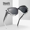 Nova moda oval armação óculos de sol personalidade oca alto sentido pequeno livro vermelho com óculos de sol proteção UV atacado