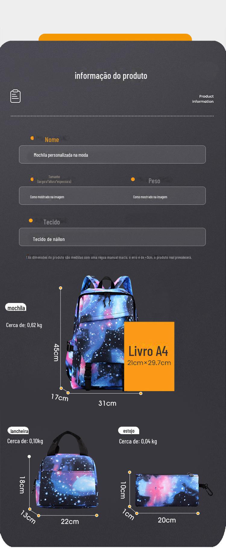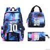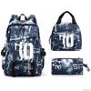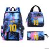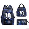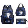 Messi maxi impresso mochila escolar 3 peças casual lápis caso mochila bolsa de ombro