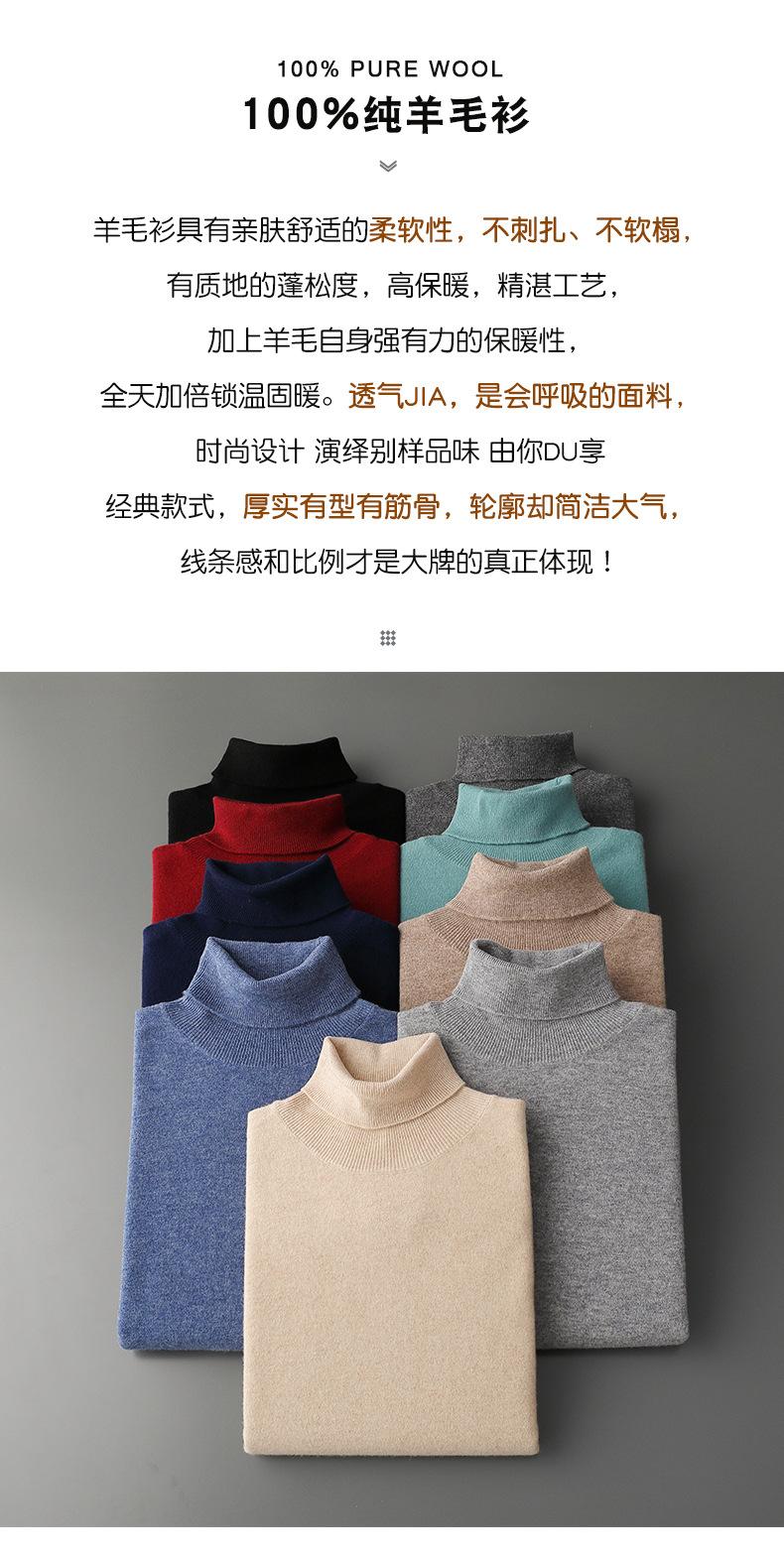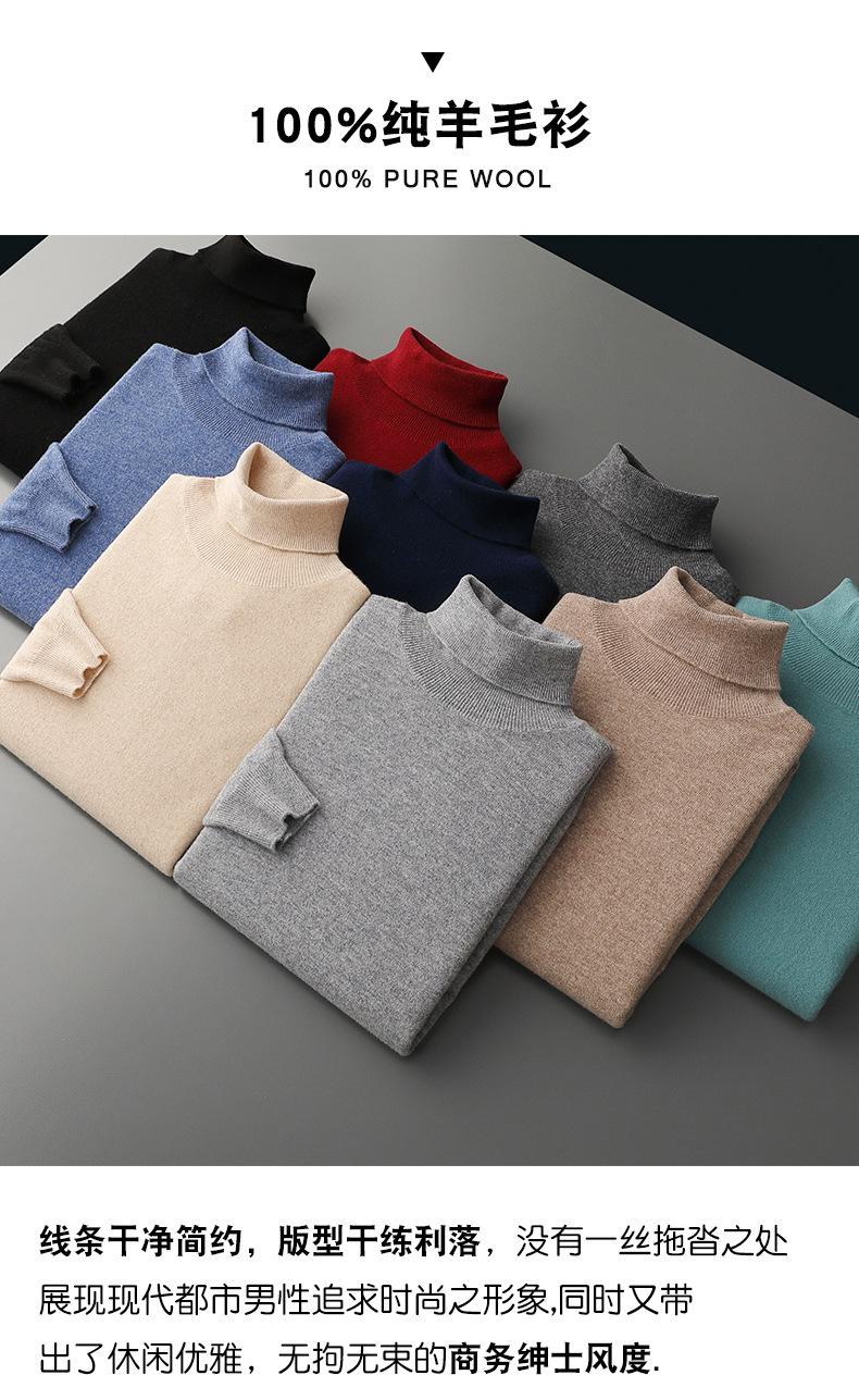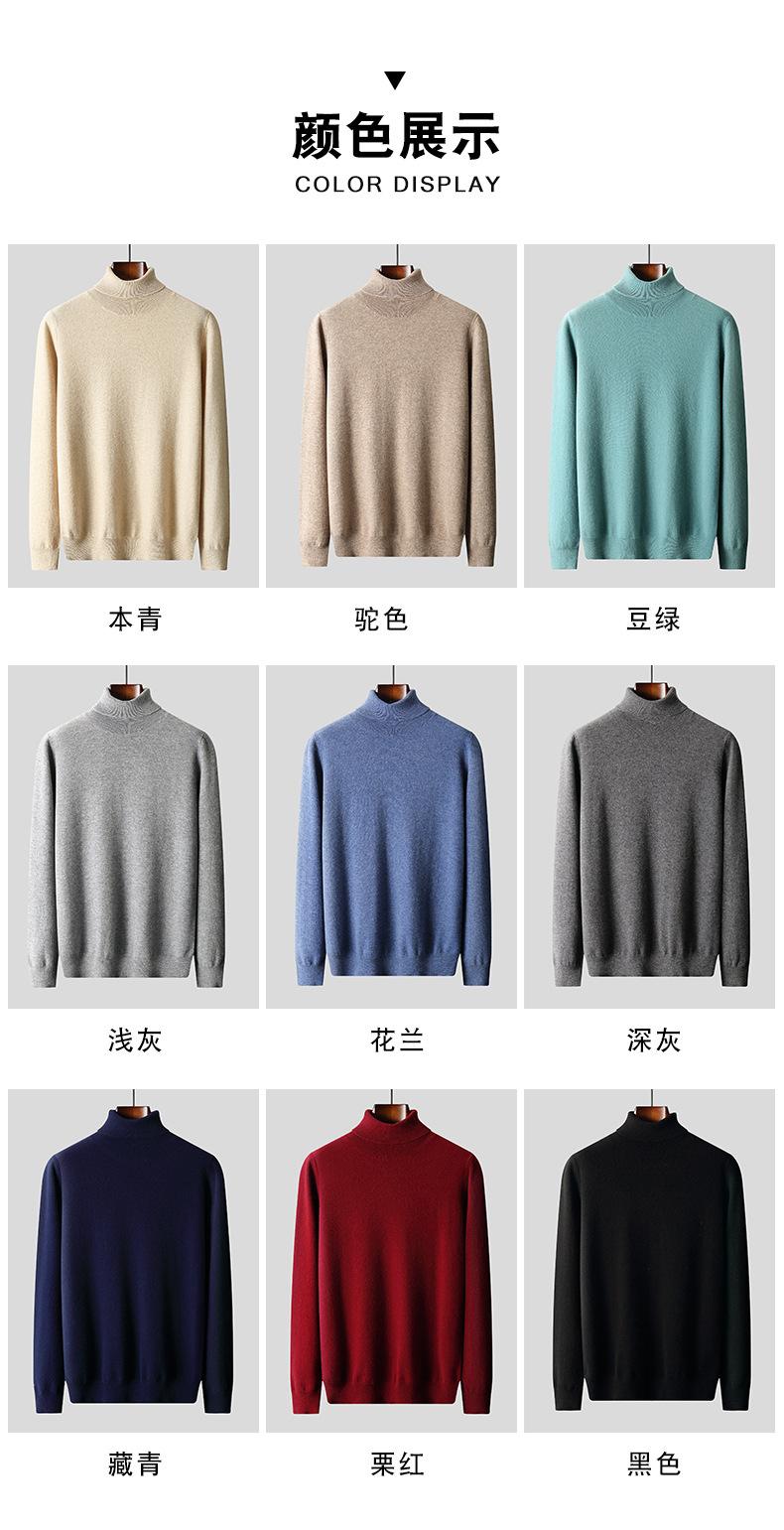 Compre Suéter masculino meia gola alta outono e inverno lã pura suéter masculino suéter pulôver cor sólida fundo grosso top no atacado no Joom.pro