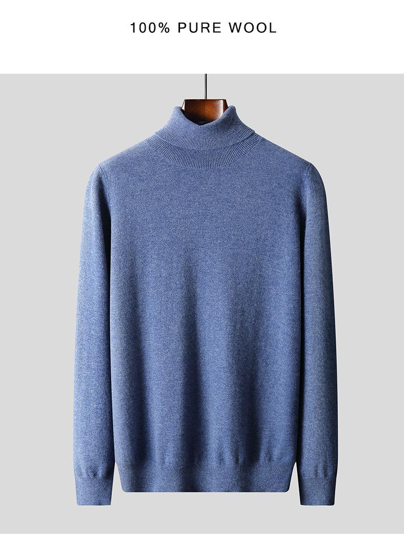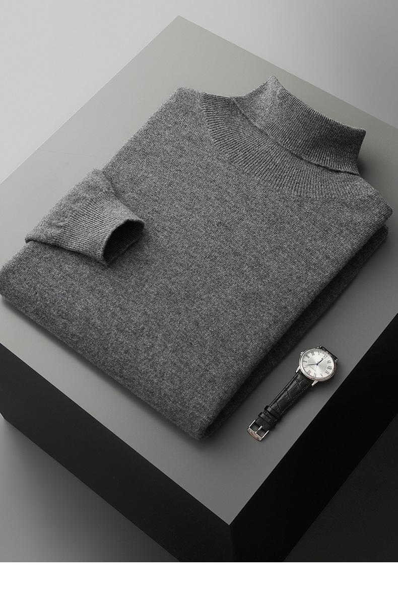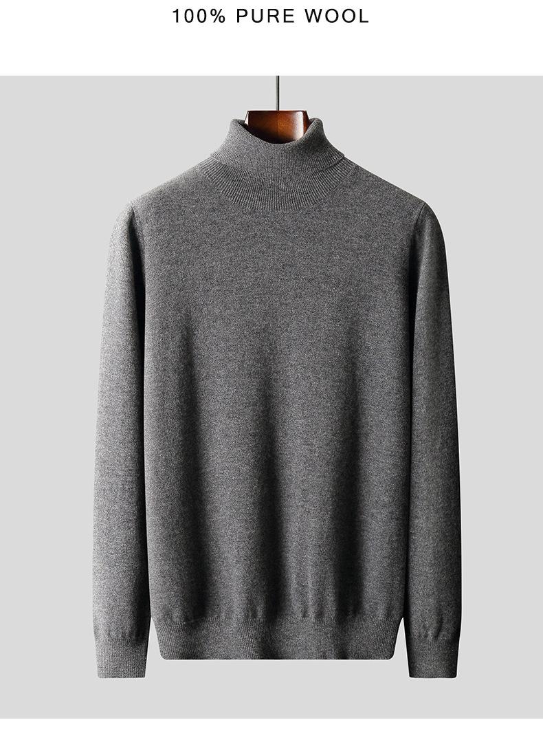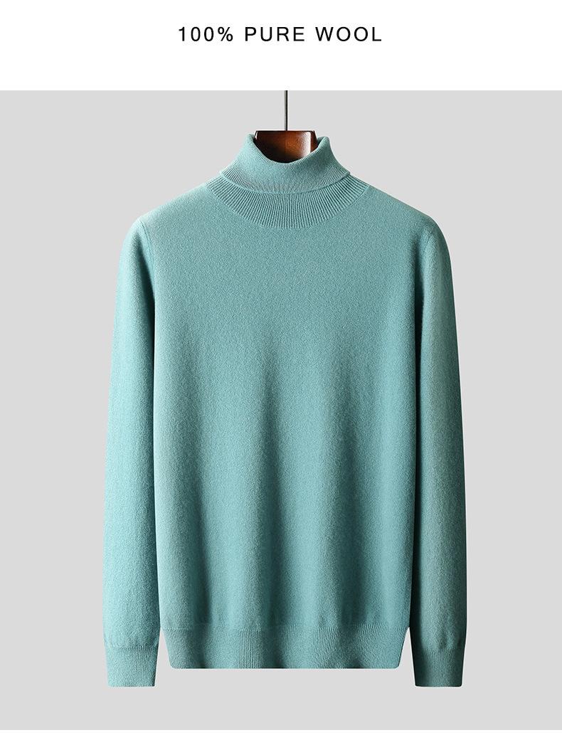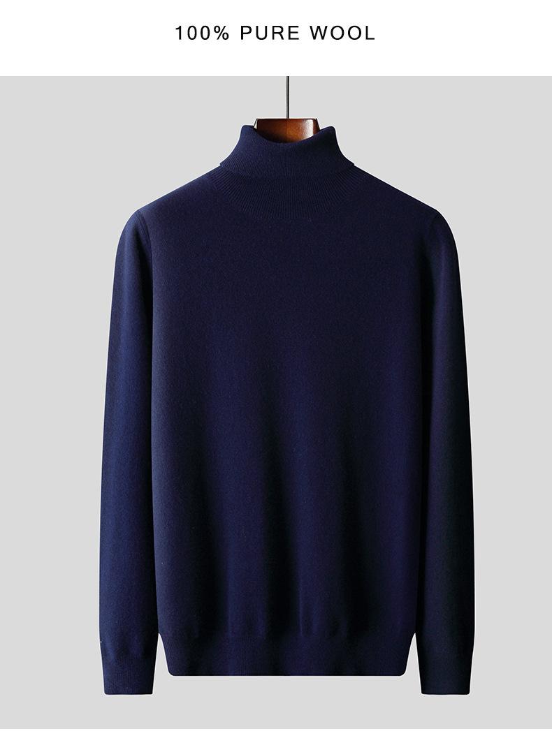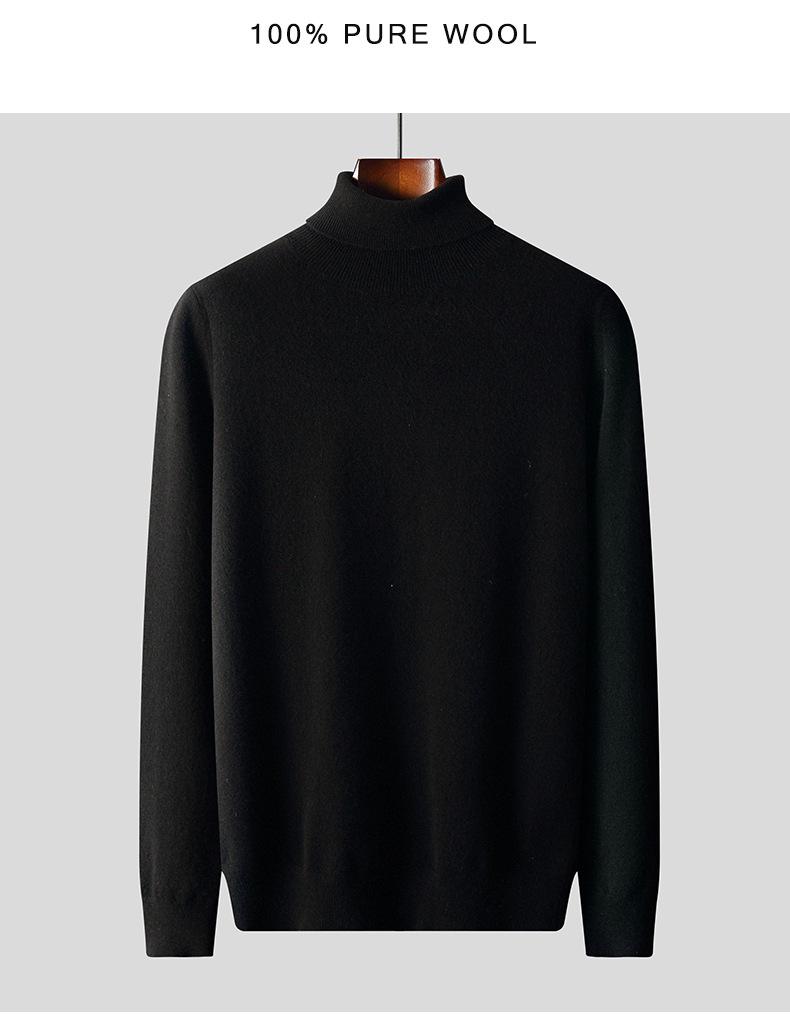 Suéter masculino meia gola alta outono e inverno lã pura suéter masculino suéter pulôver cor sólida fundo grosso top