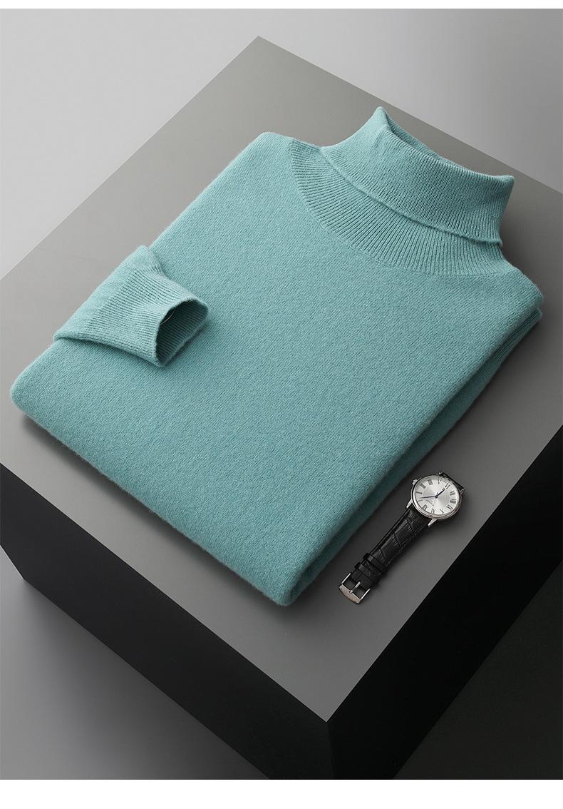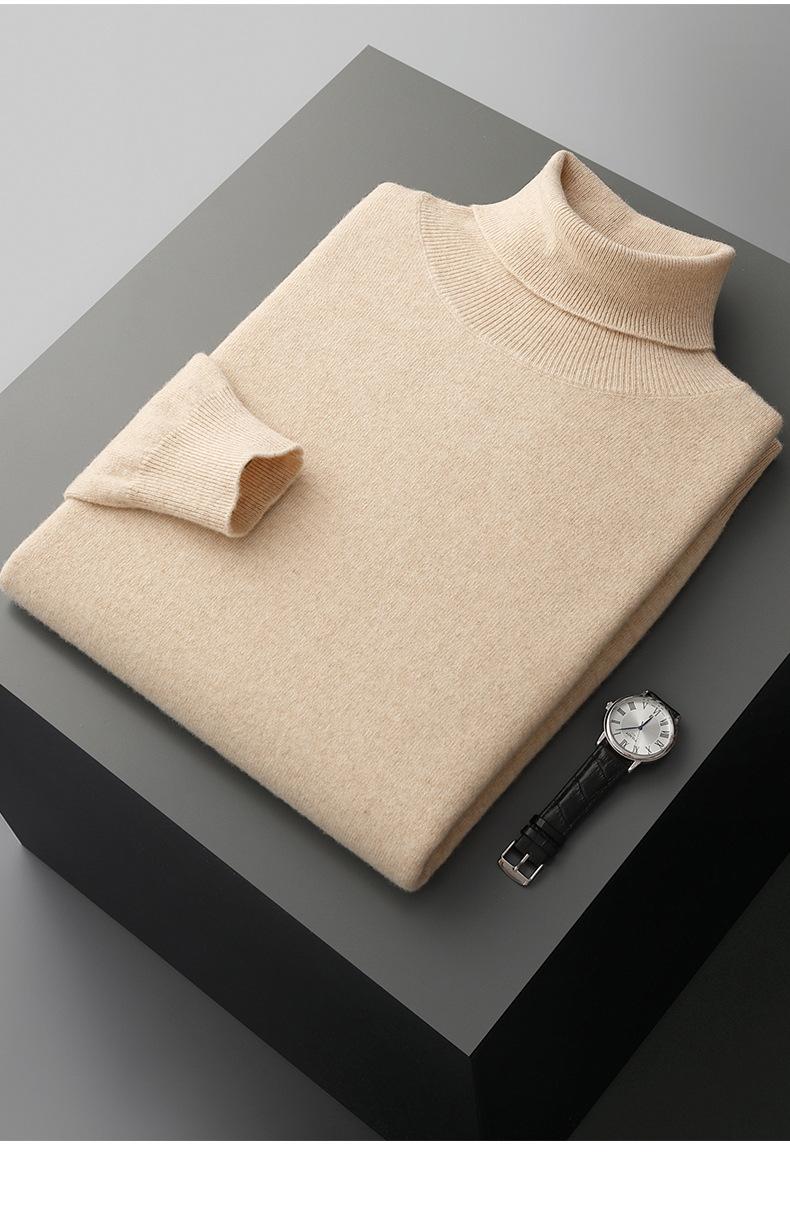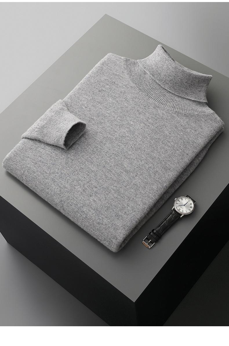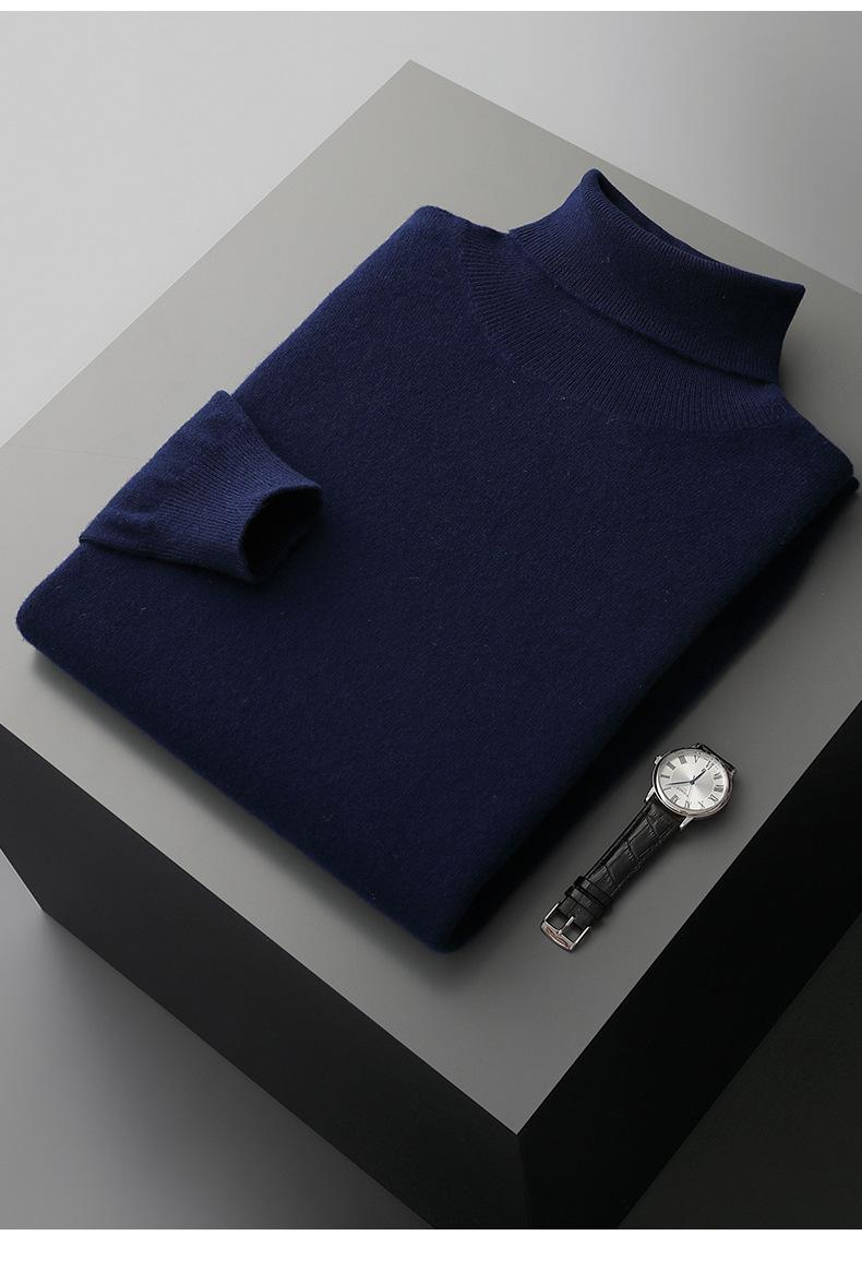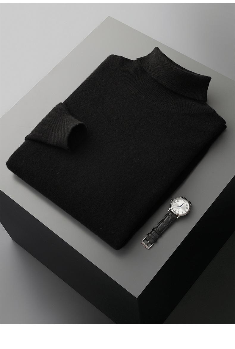 Suéter masculino meia gola alta outono e inverno lã pura suéter masculino suéter pulôver cor sólida fundo grosso top