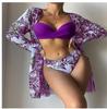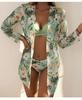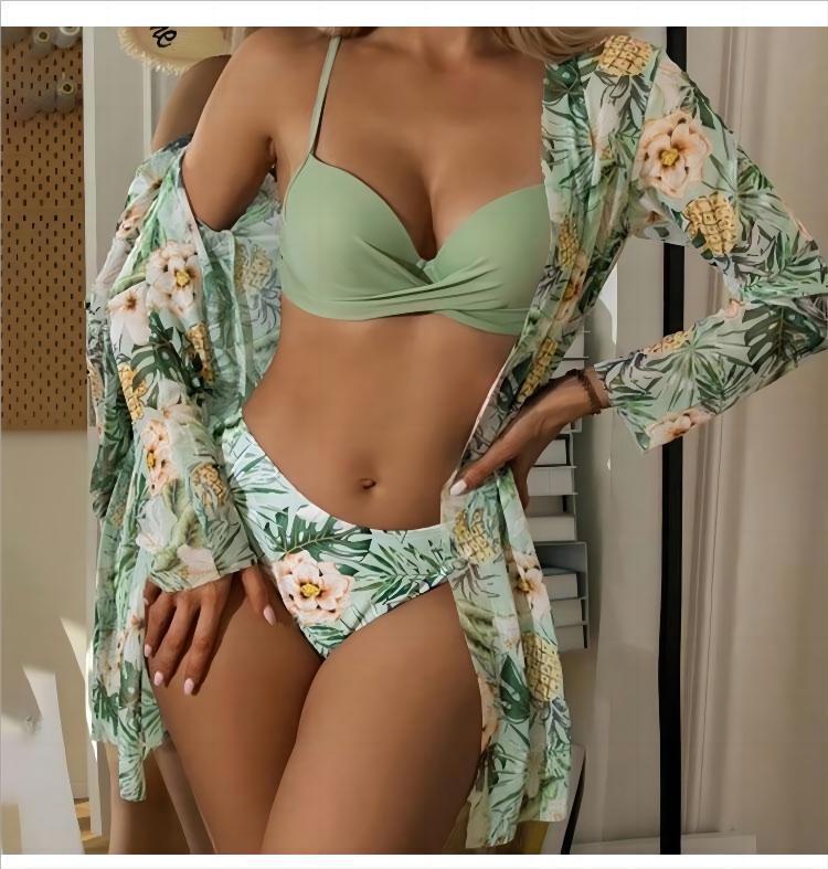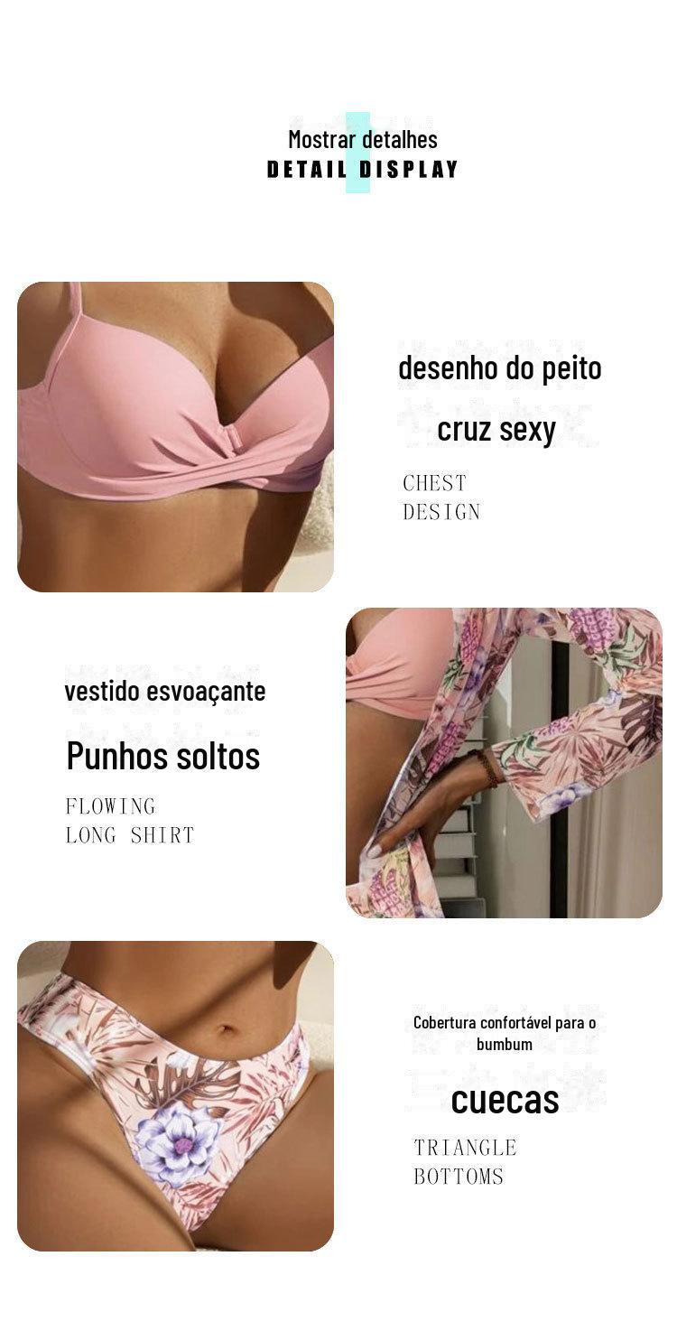 Cross-border Novo Sexy Cross Bikini Split Sling Swimsuit de três peças Estampa Europeia e Americana