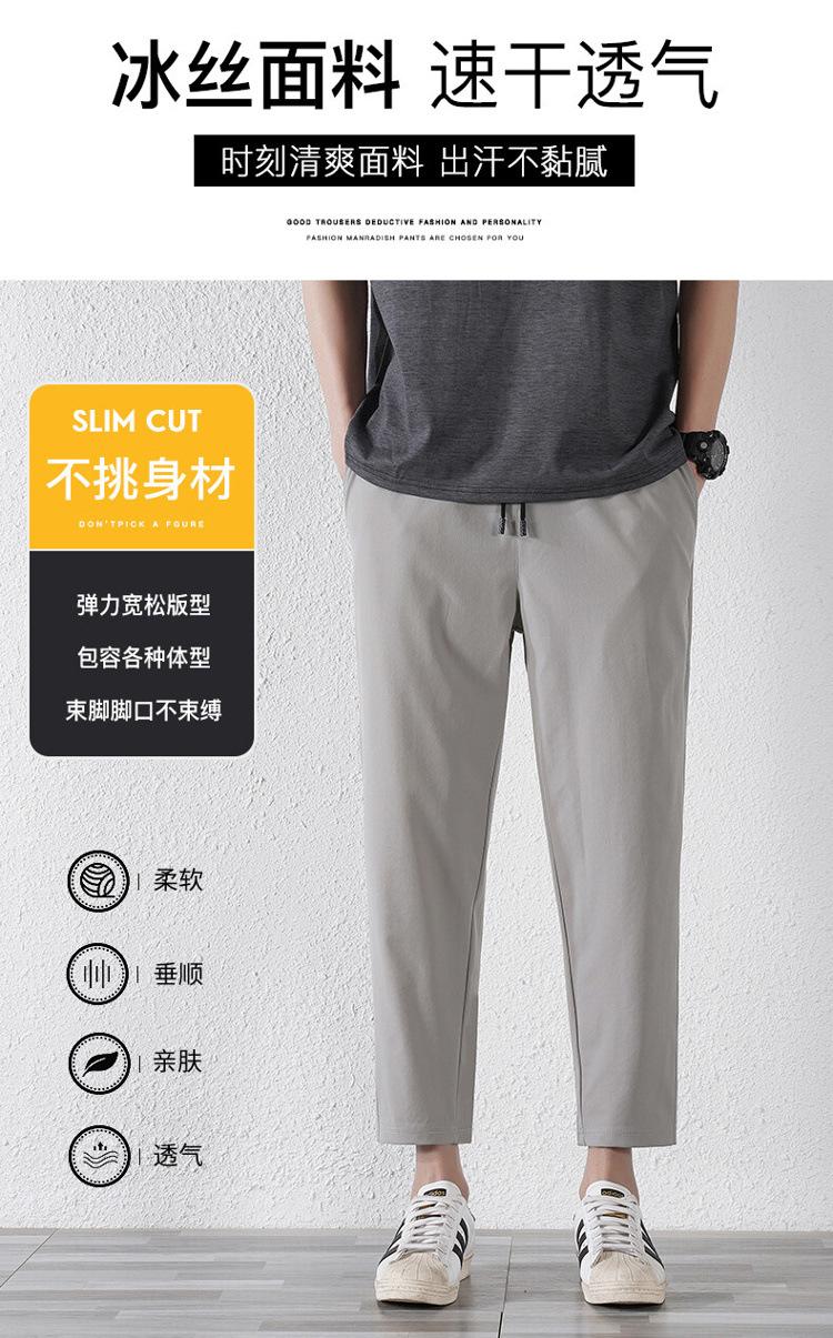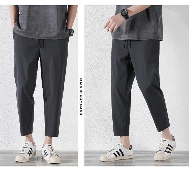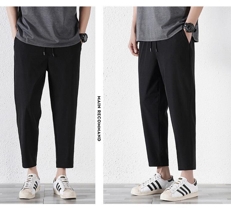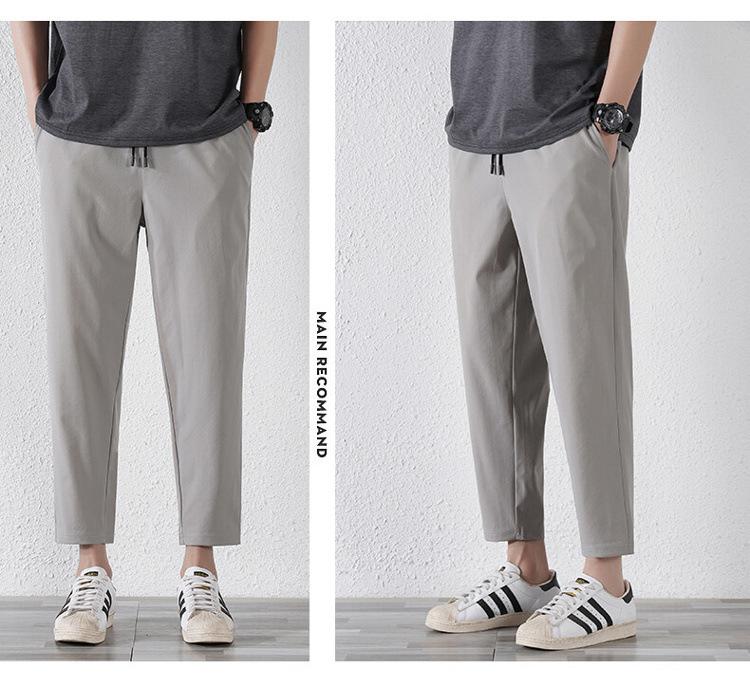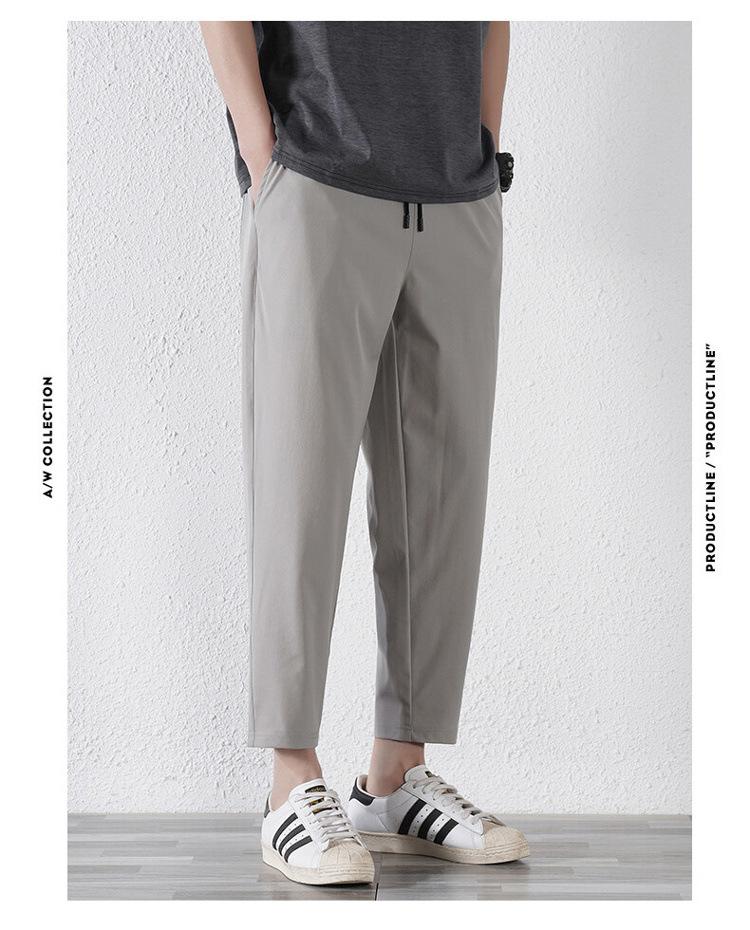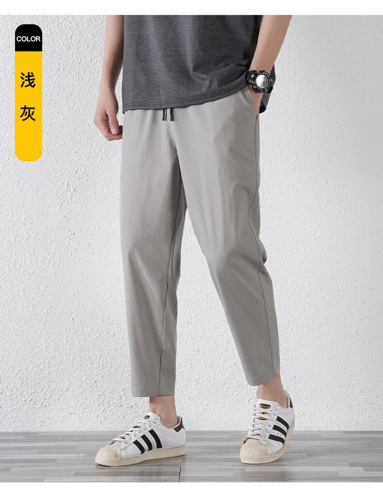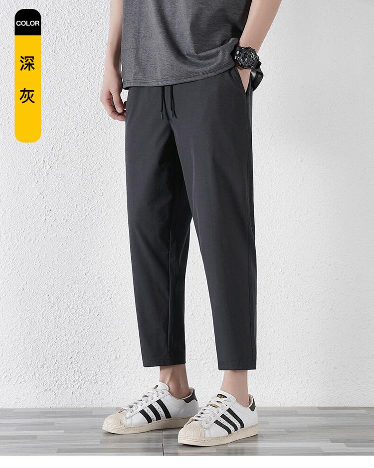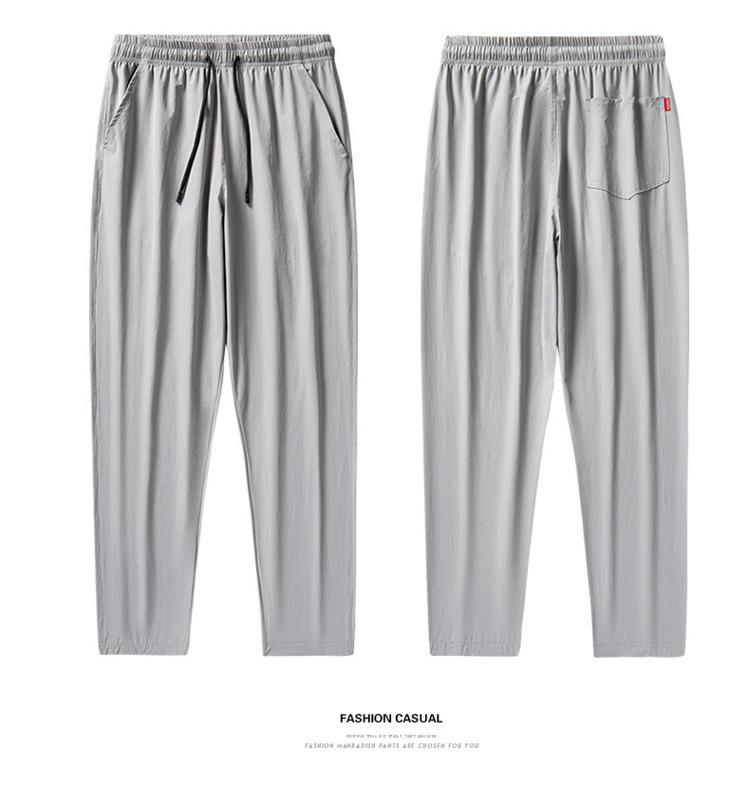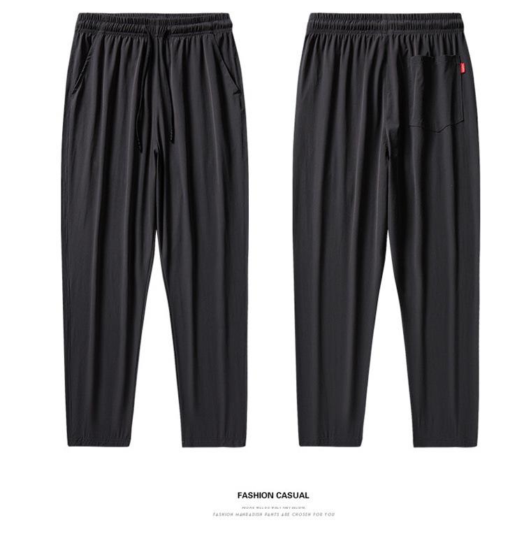 Calças de seda gelada de verão, calças masculinas stretch cropped, secagem rápida, ultrafinas casuais de pernas retas esportivas casuais com ar condicionado