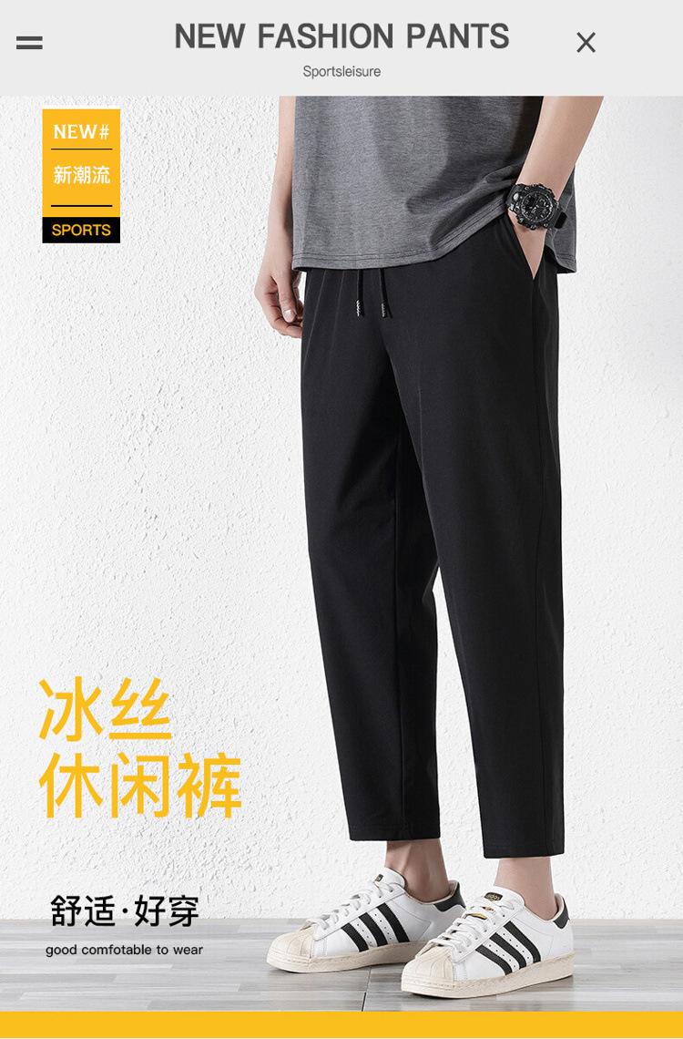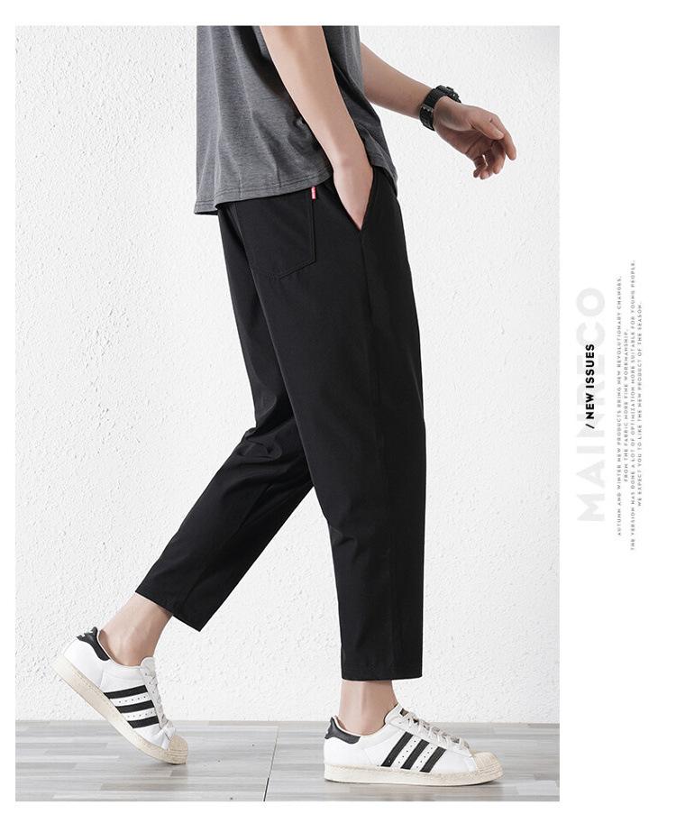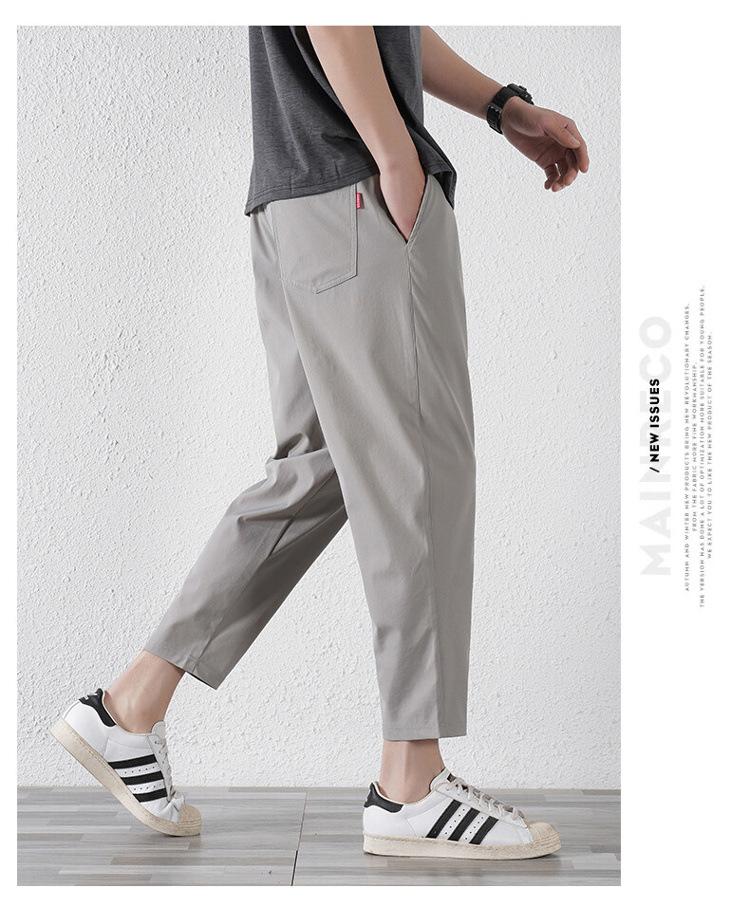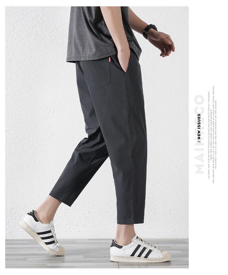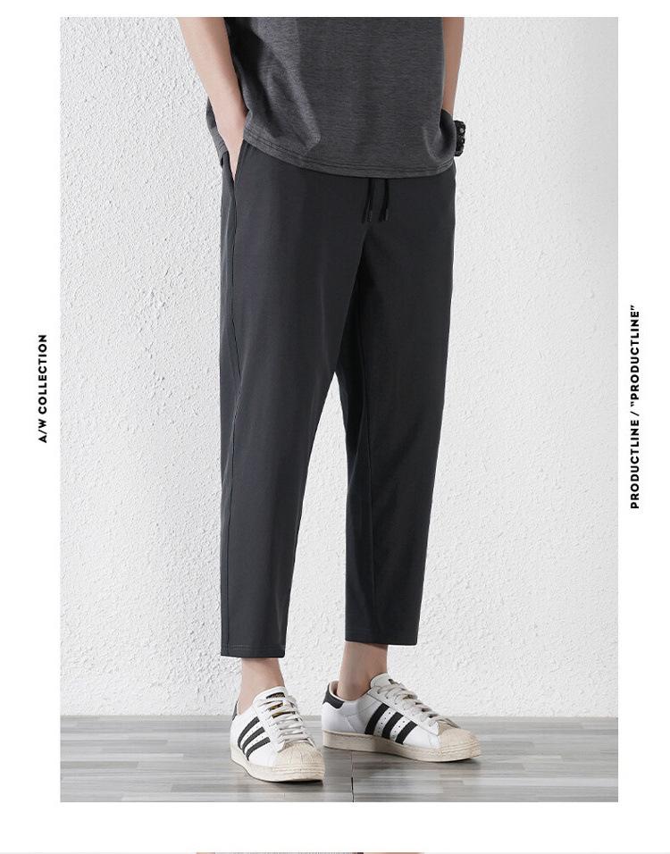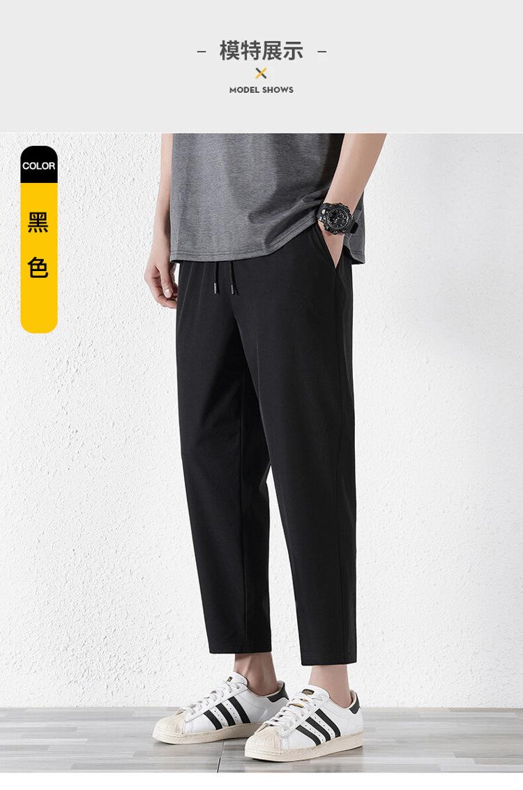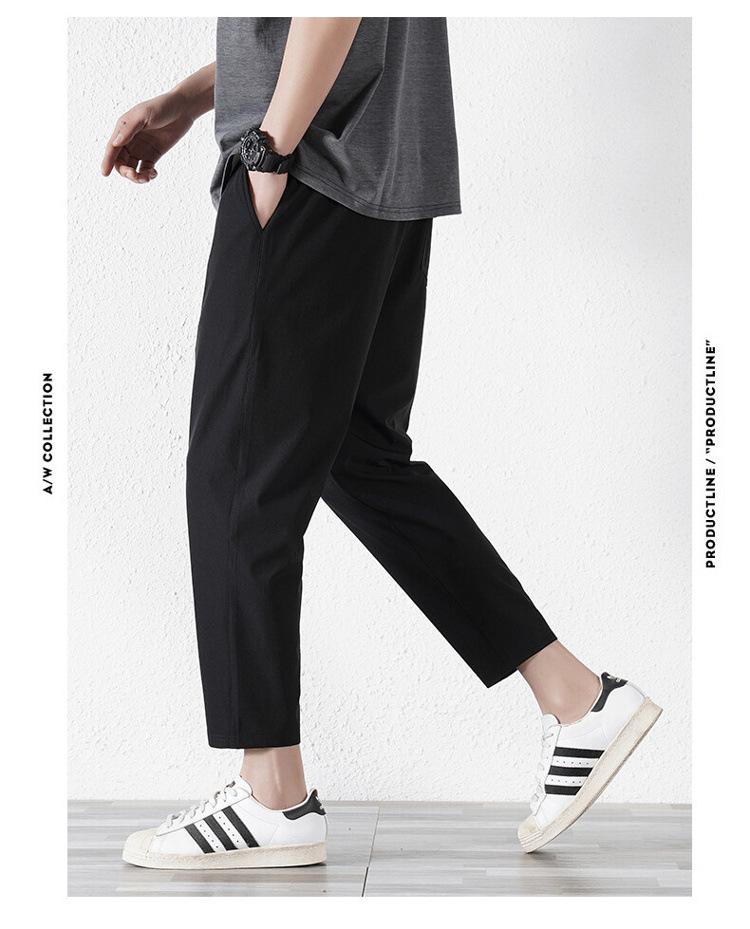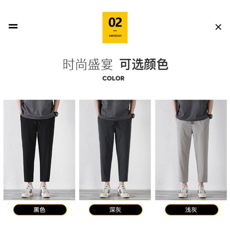 Calças de seda gelada de verão, calças masculinas stretch cropped, secagem rápida, ultrafinas casuais de pernas retas esportivas casuais com ar condicionado