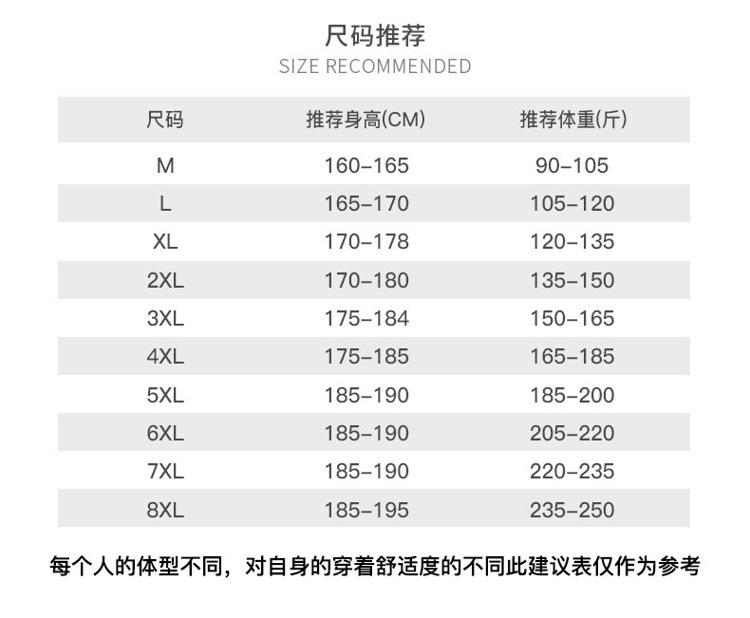 M, L, XL, 2XL, 3XL, 4XL, 5XL, 6XL, 7XL, 8XL