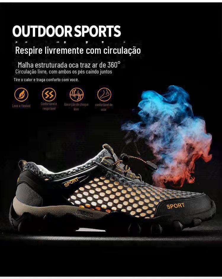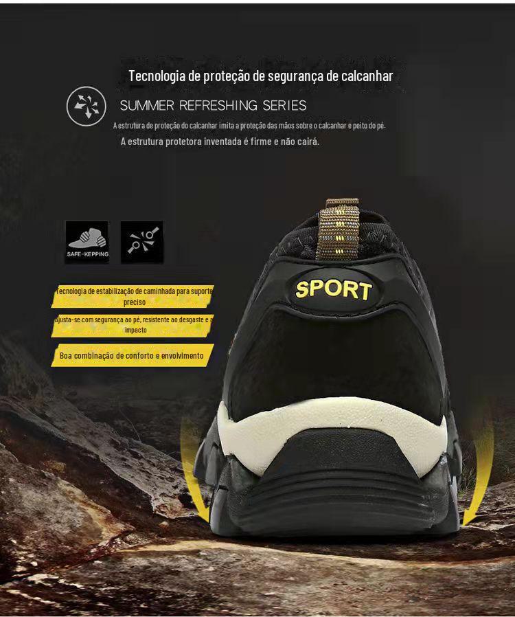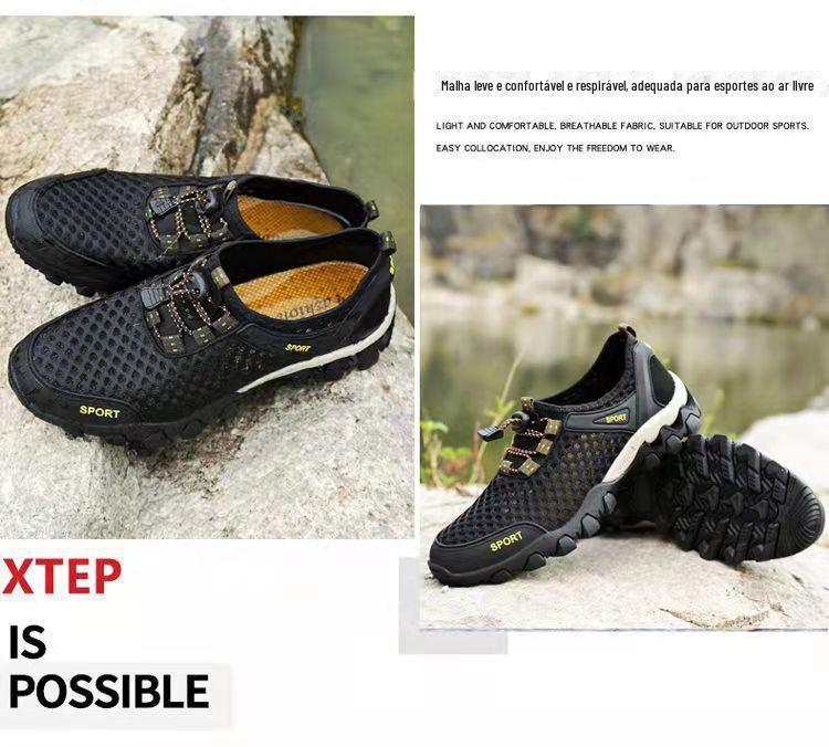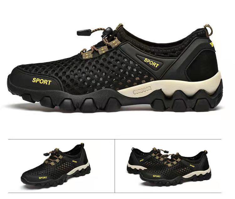 Sapatos masculinos de verão, calçados para caminhada ao ar livre, respiráveis, atacado internacional, calçados masculinos confortáveis de malha oca