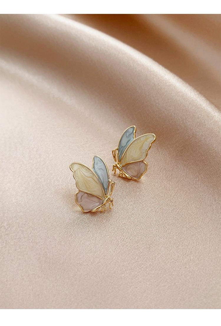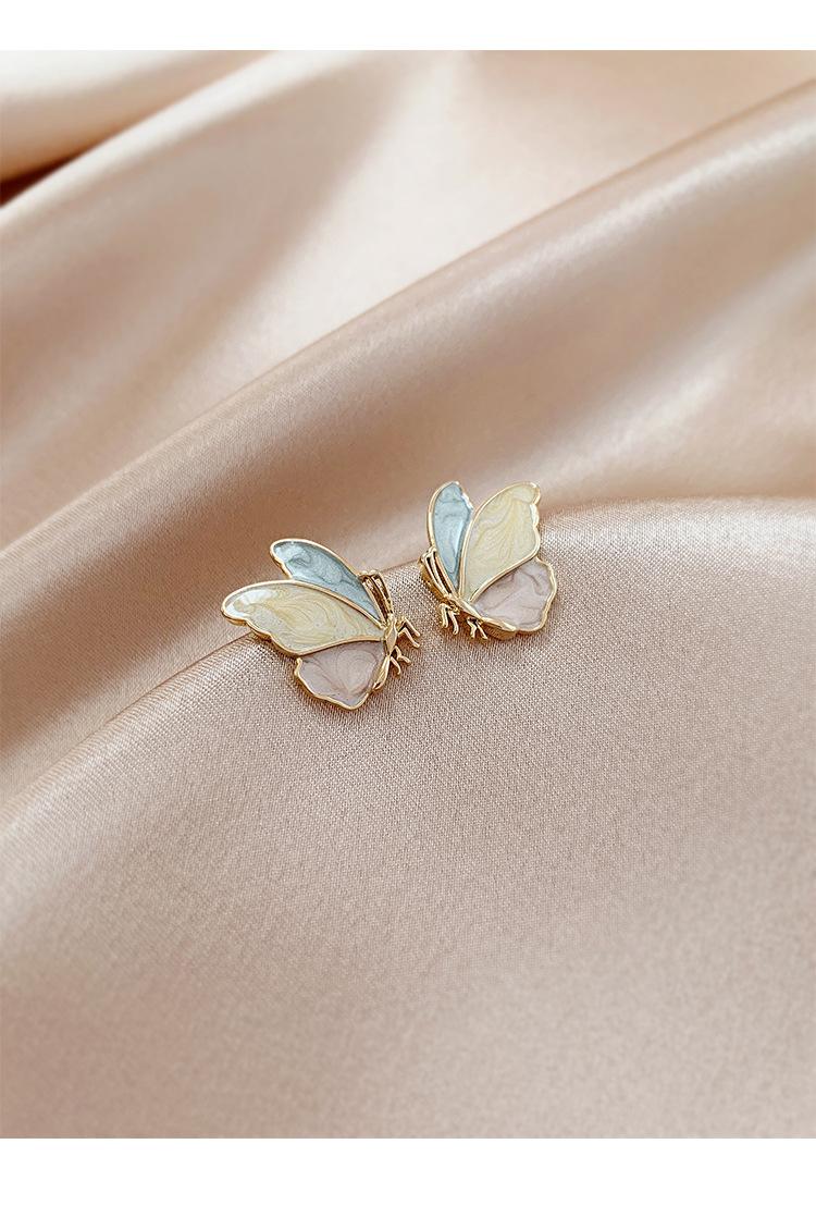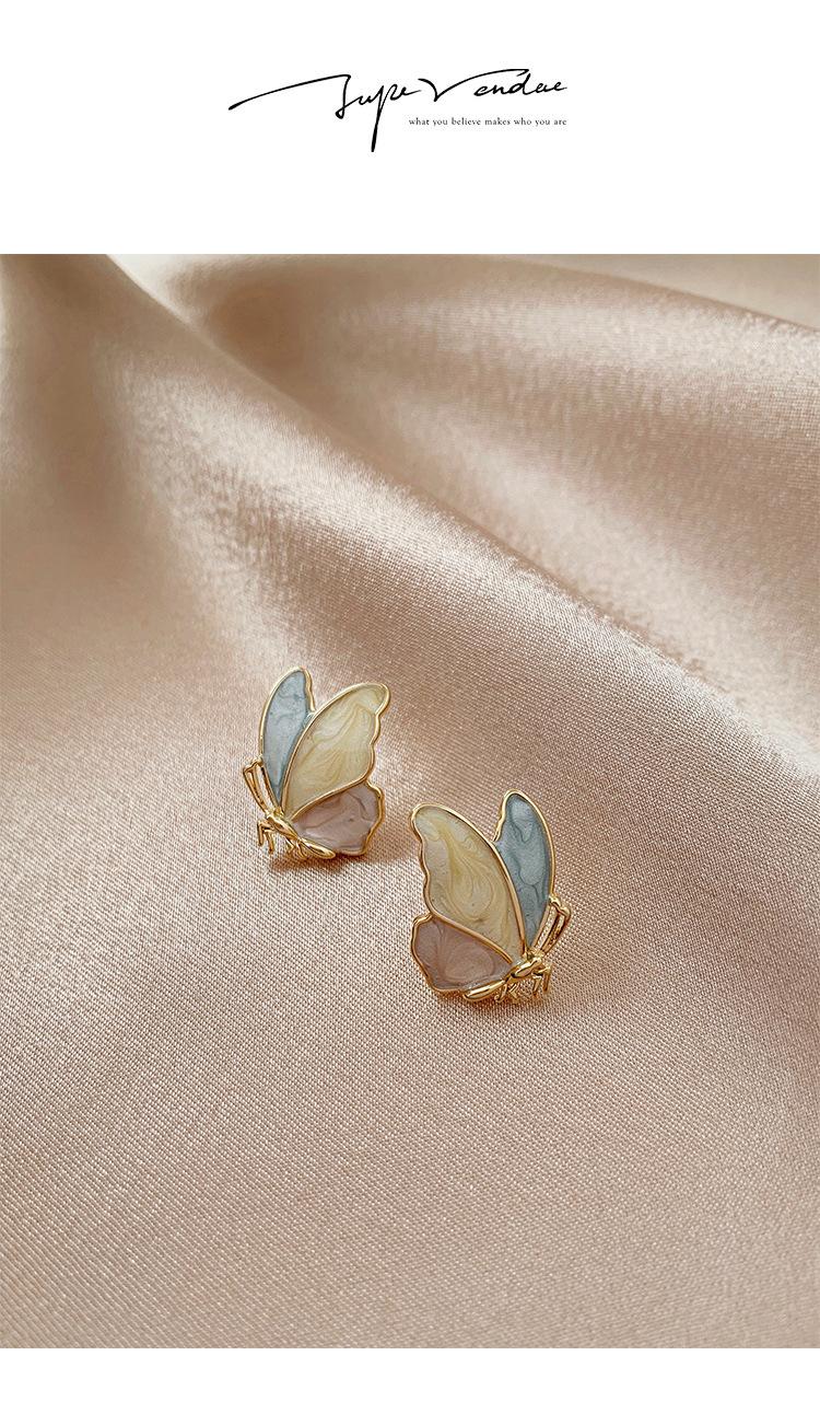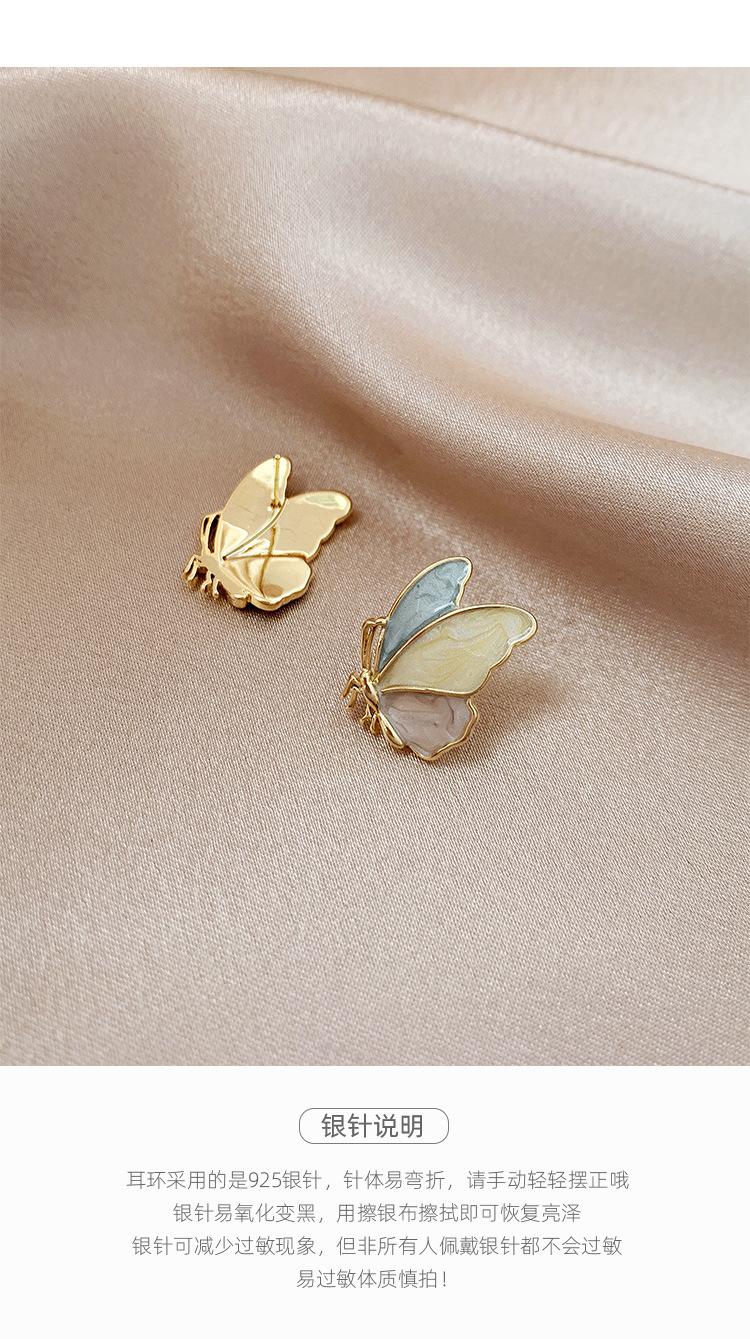 Compre S925 agulha de prata versão coreana de brincos de borboleta de óleo de moda simples doce bonito temperamento cor orelha jóias mulheres atacado no atacado no Joom.pro