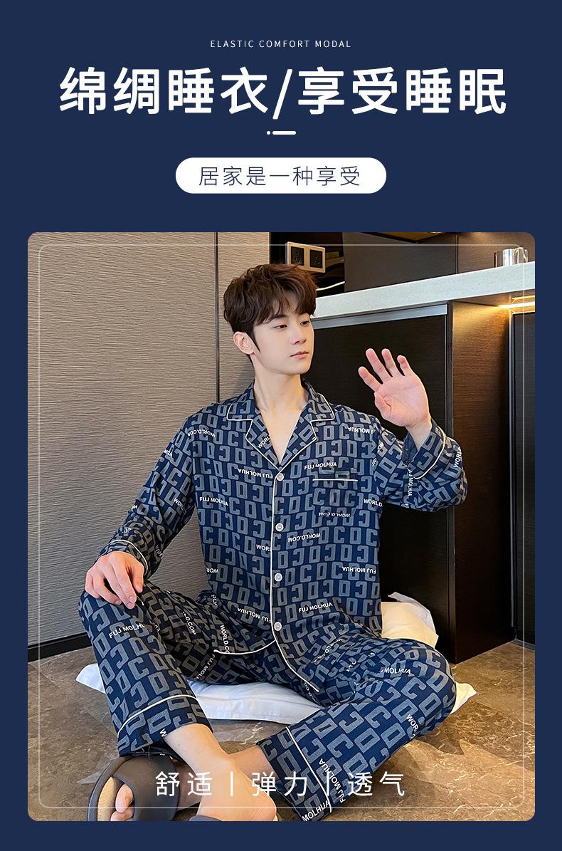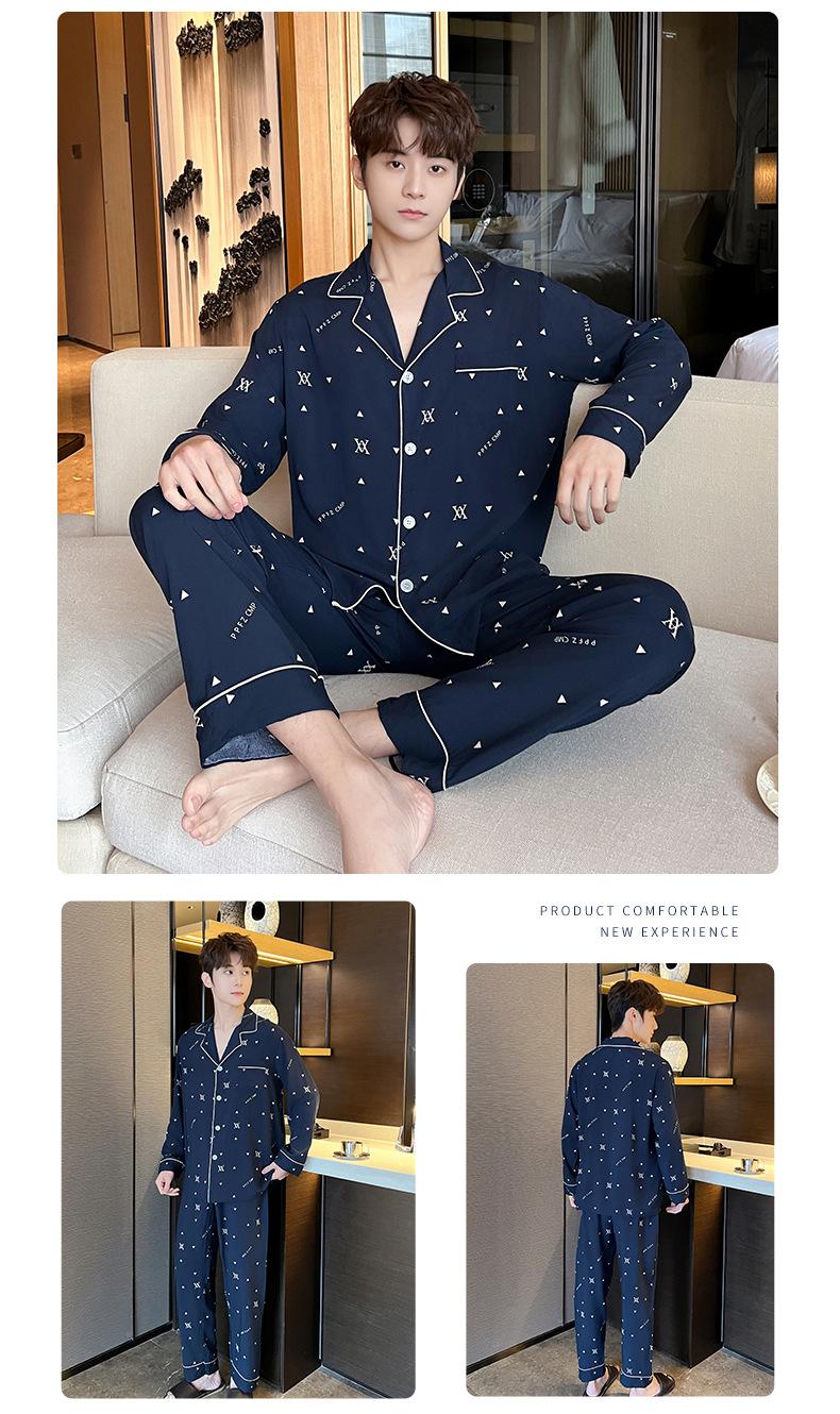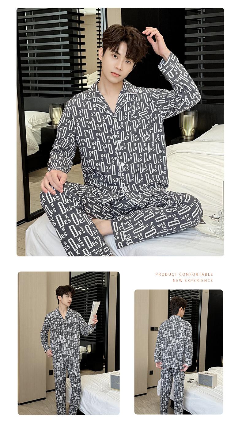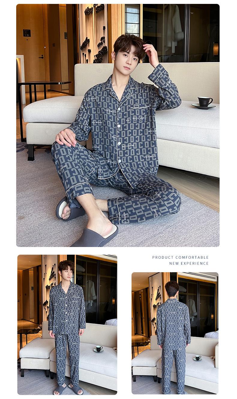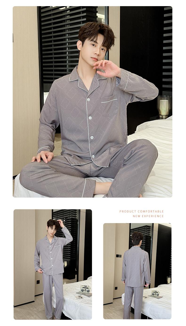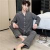 Novo pijama de seda de algodão de manga comprida masculino primavera e outono simples de alta qualidade fino lapela verão masculino casa desgaste terno