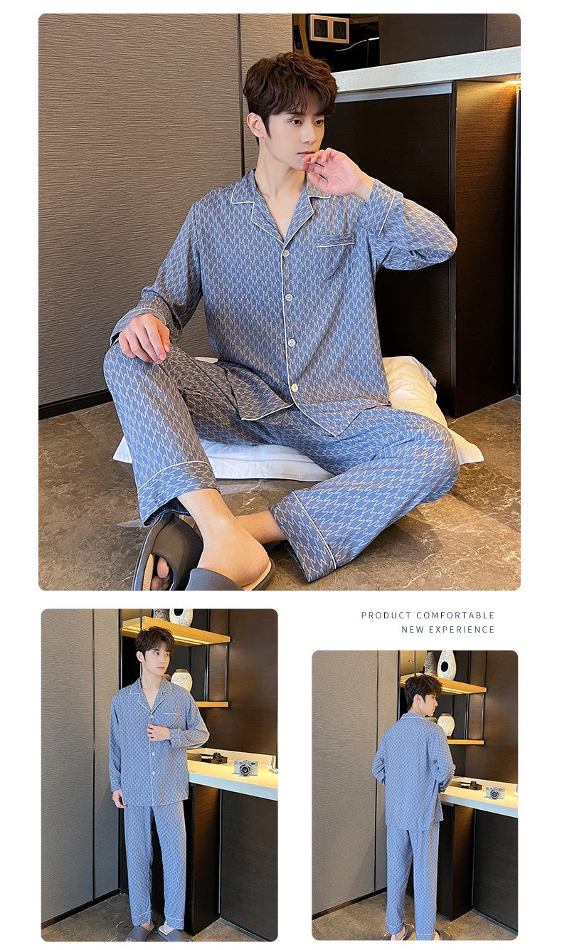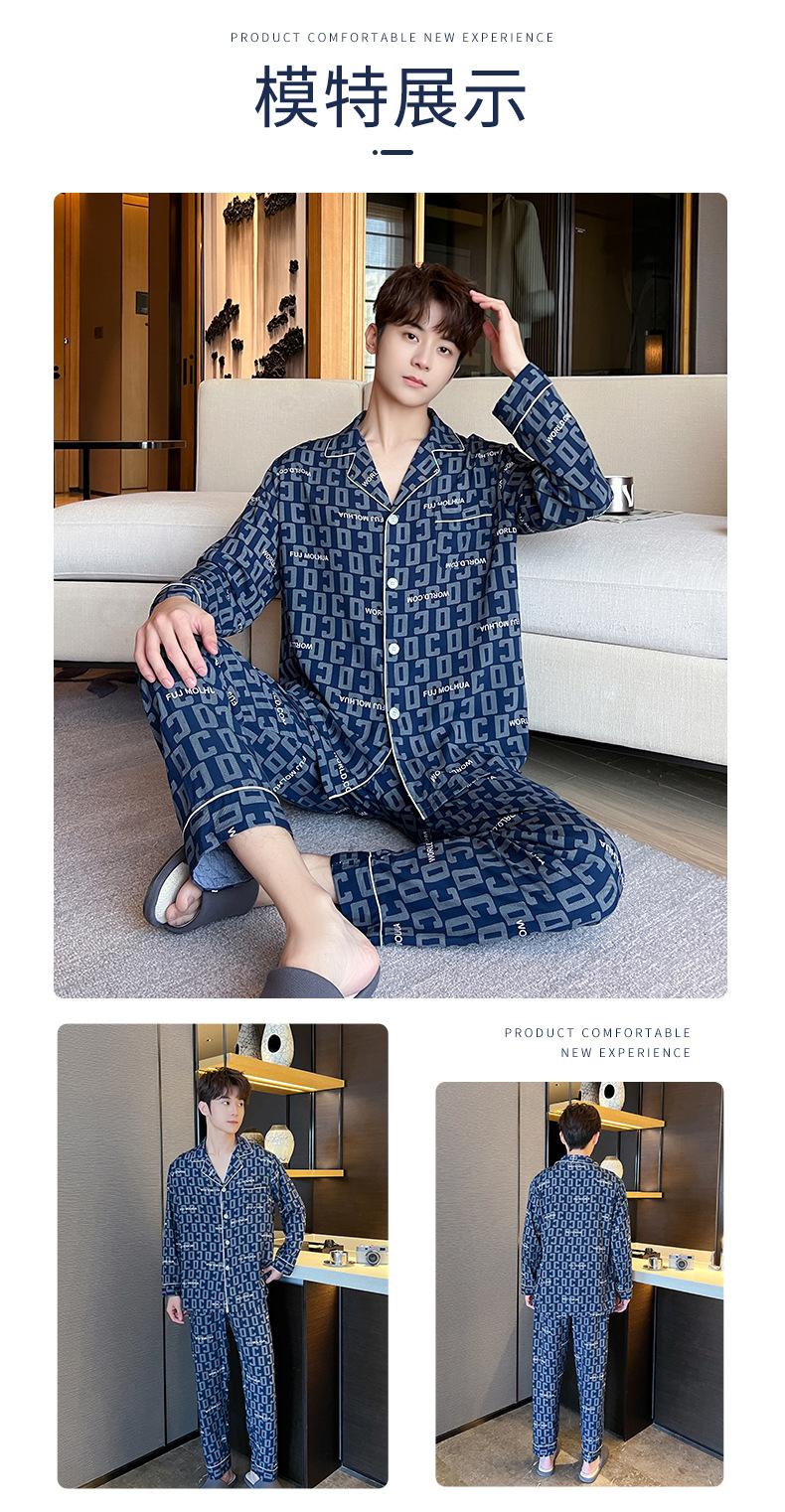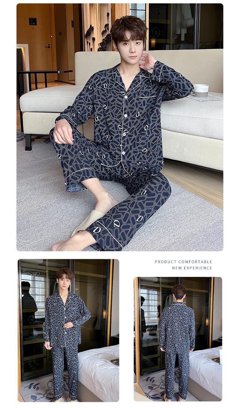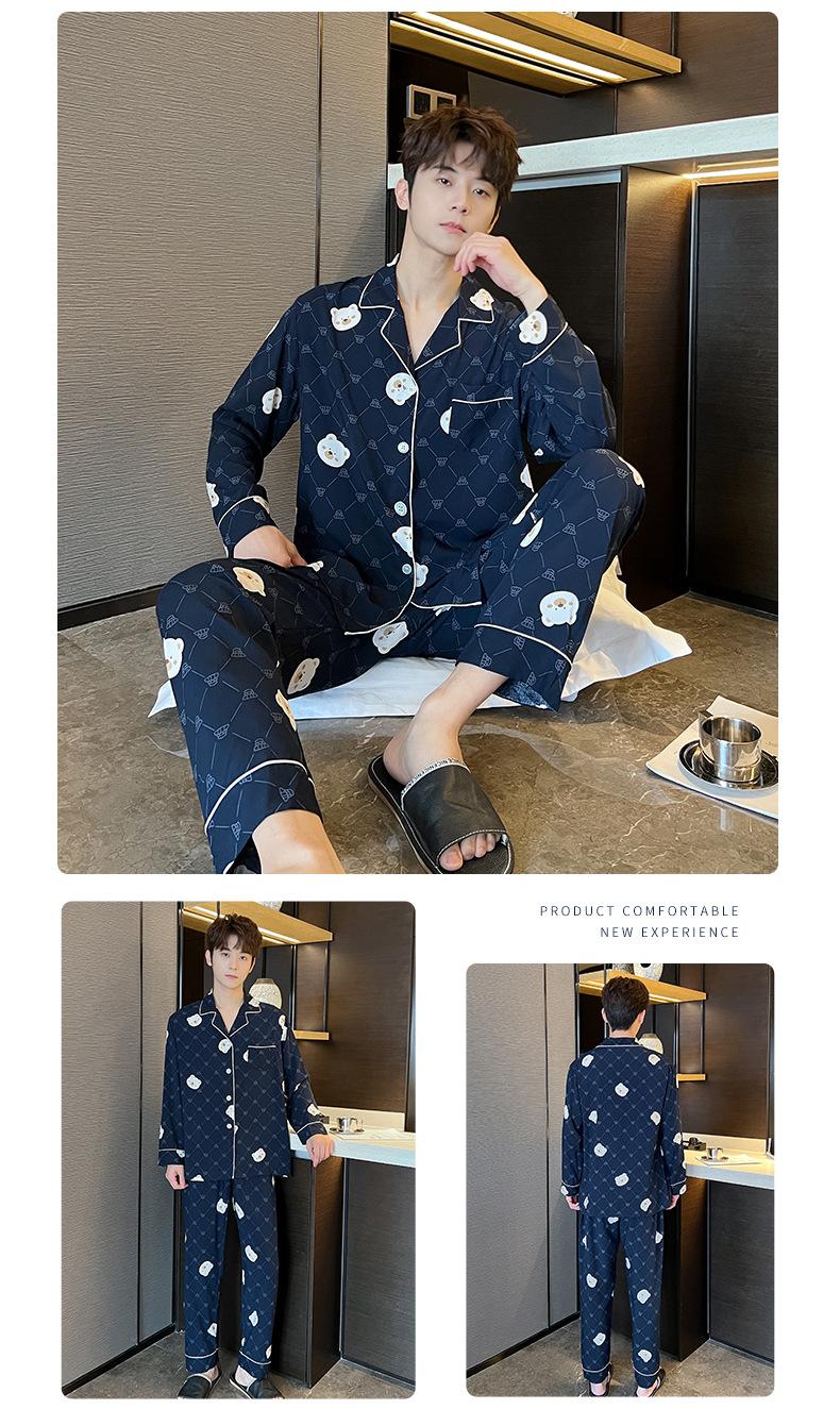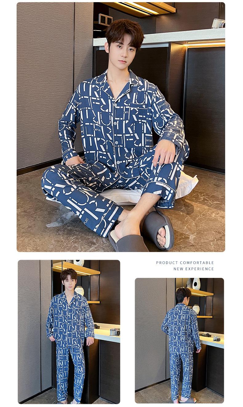 Novo pijama de seda de algodão de manga comprida masculino primavera e outono simples de alta qualidade fino lapela verão masculino casa desgaste terno