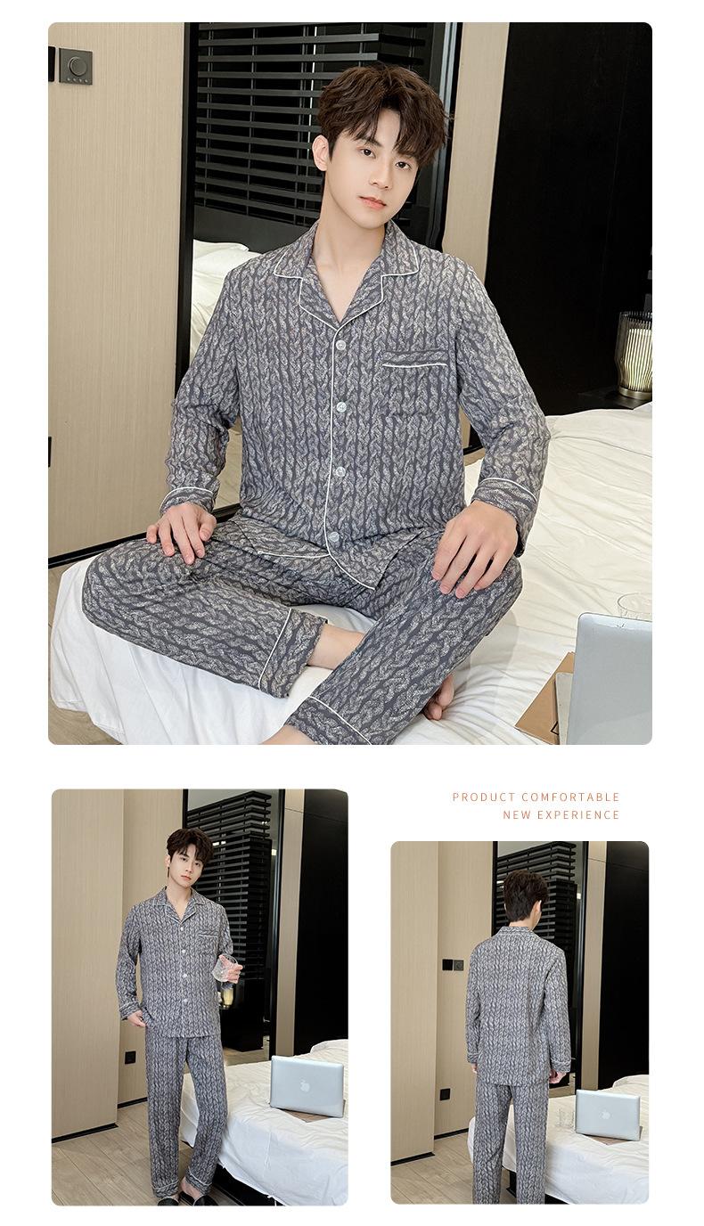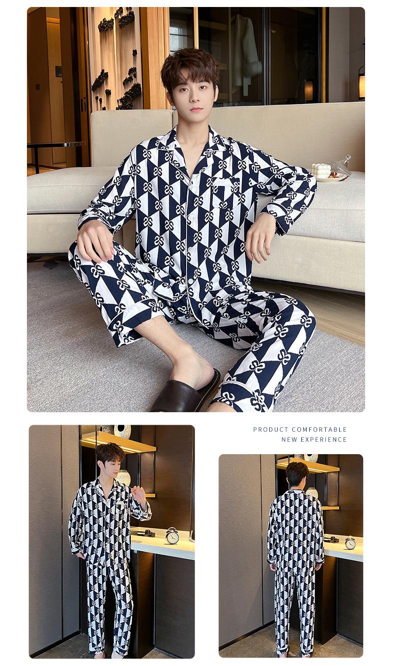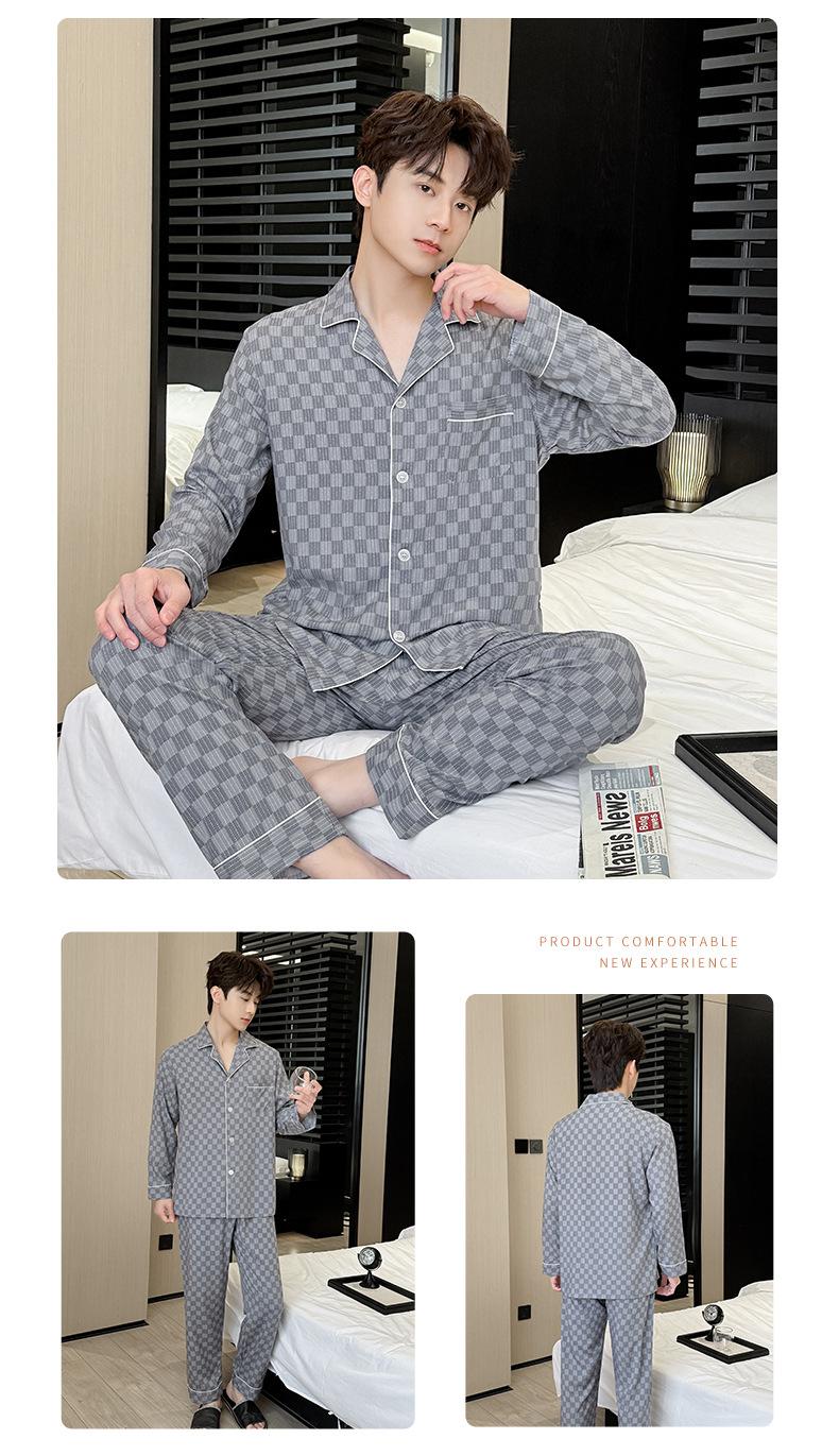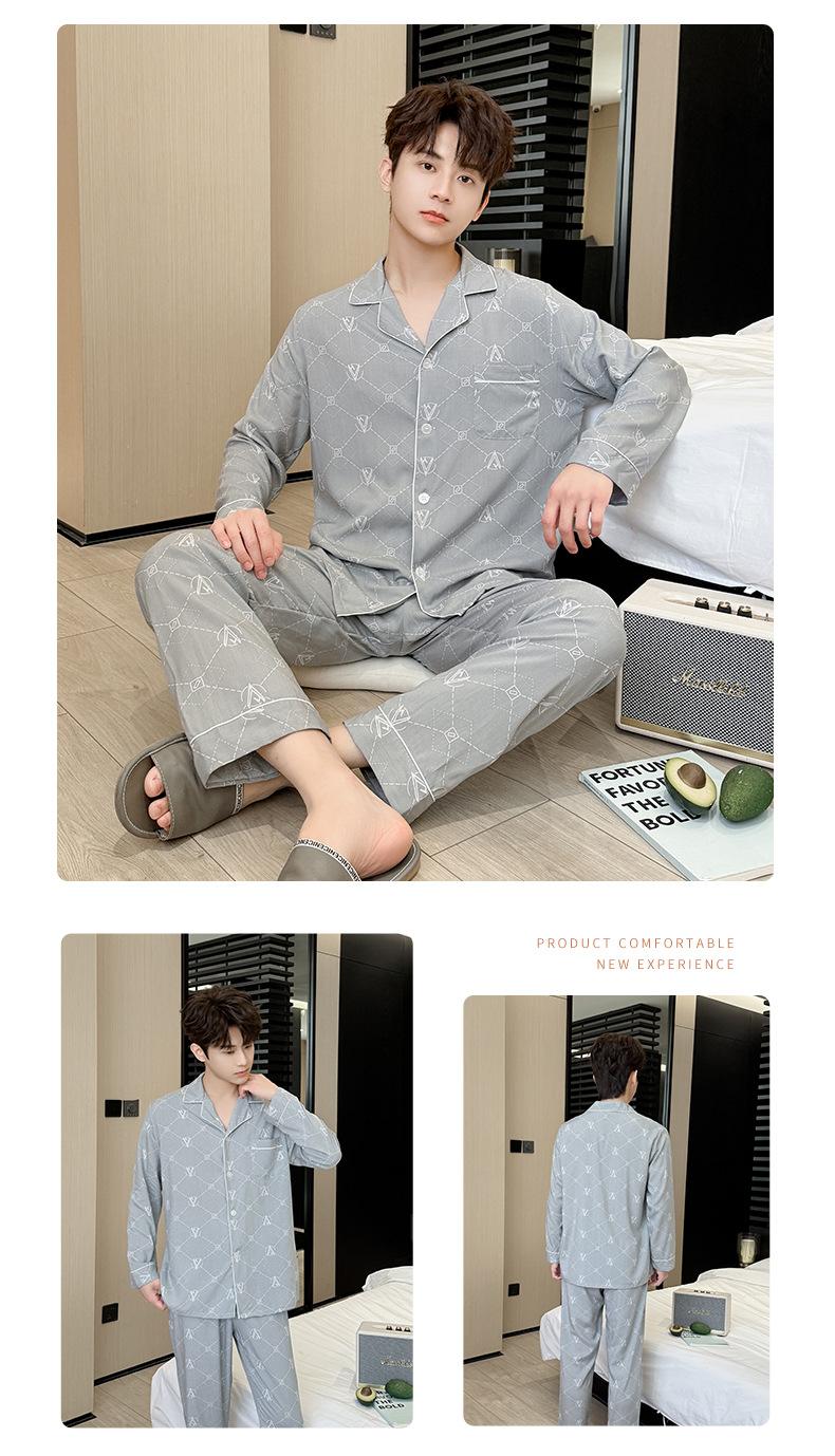 Novo pijama de seda de algodão de manga comprida masculino primavera e outono simples de alta qualidade fino lapela verão masculino casa desgaste terno
