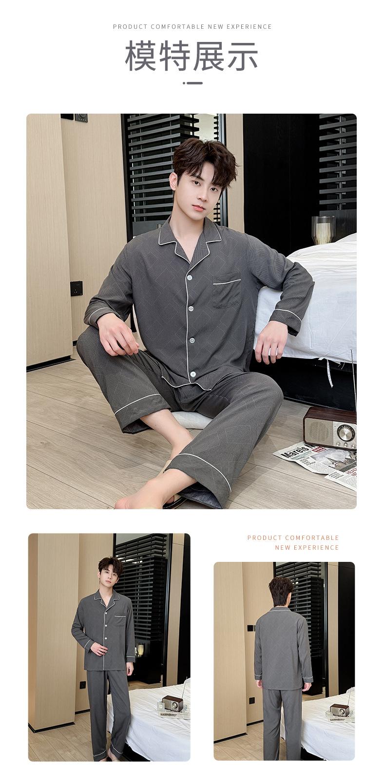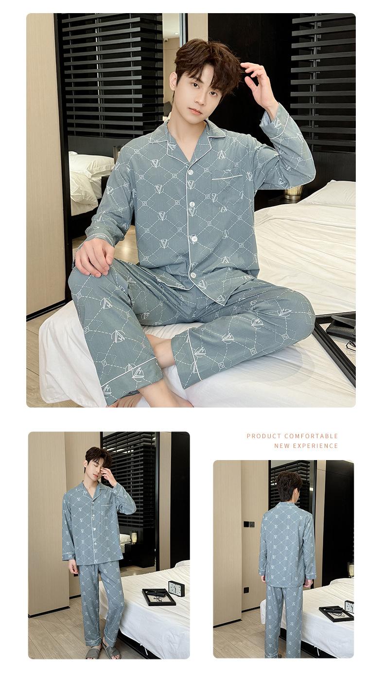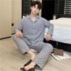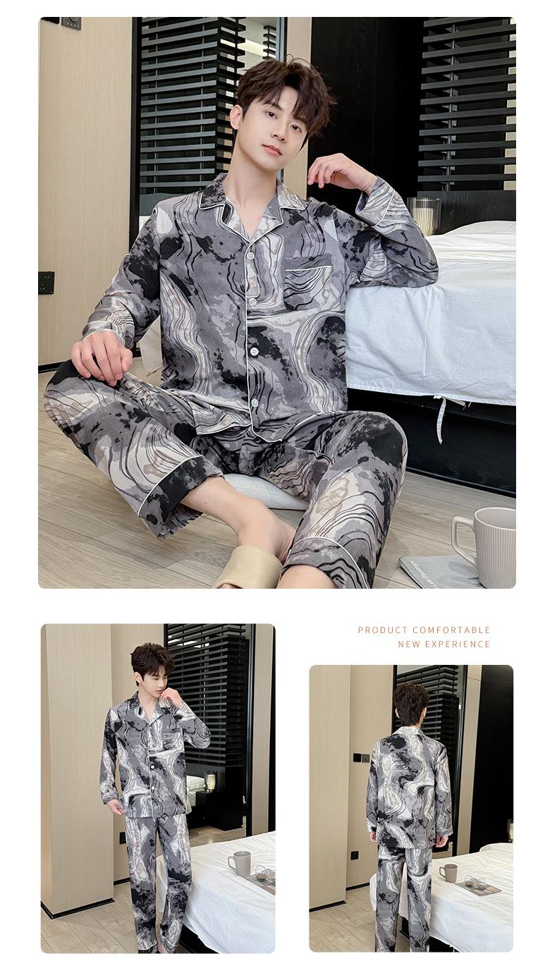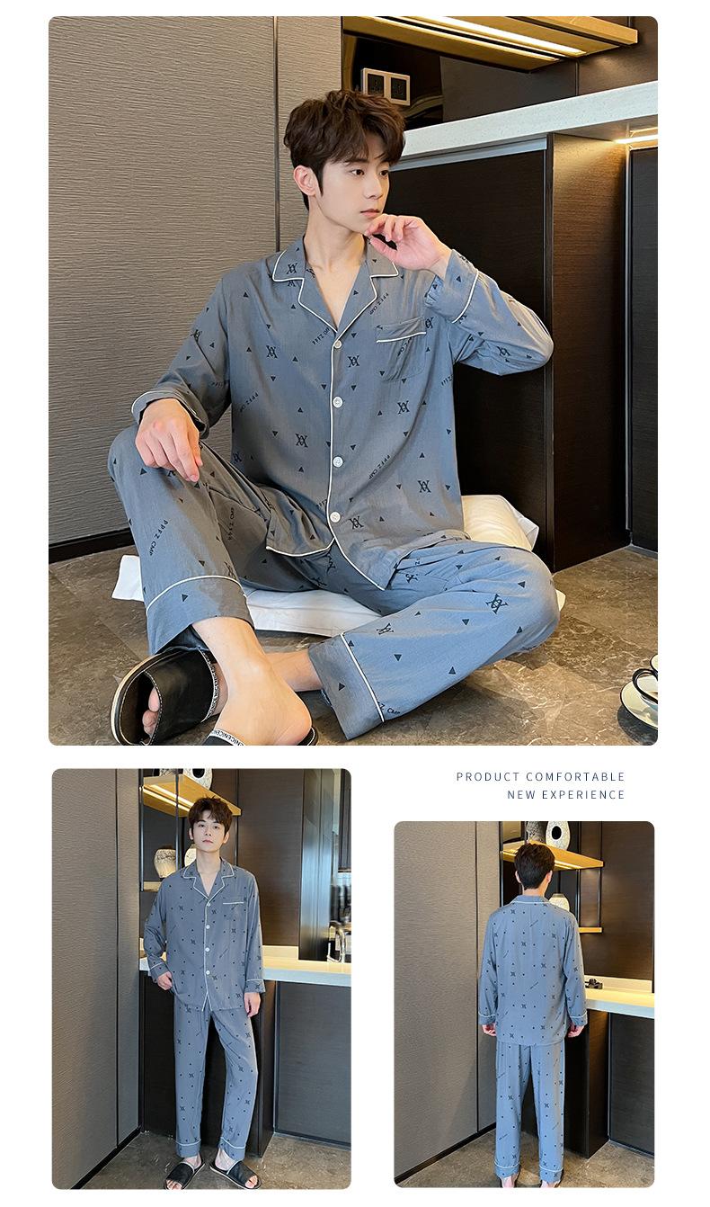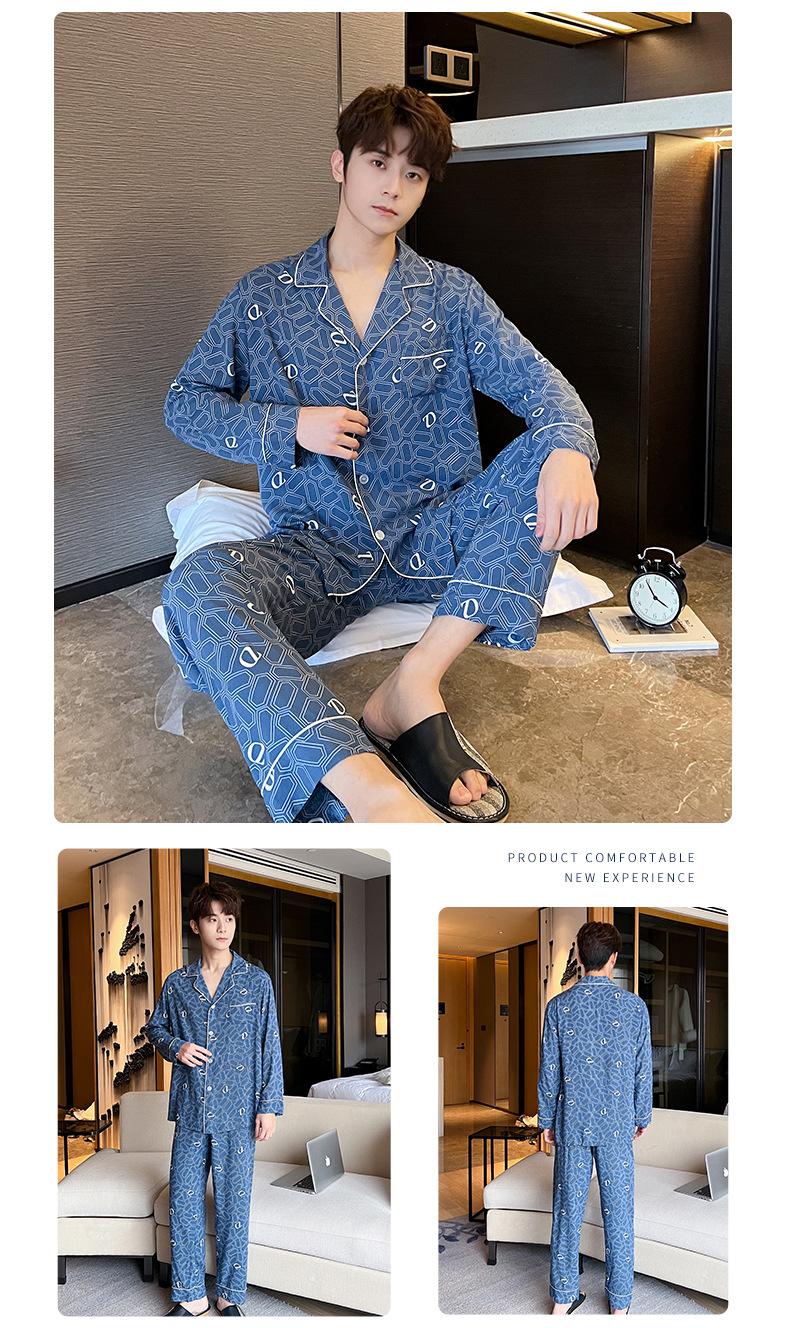 Novo pijama de seda de algodão de manga comprida masculino primavera e outono simples de alta qualidade fino lapela verão masculino casa desgaste terno