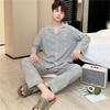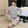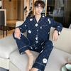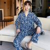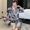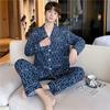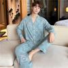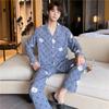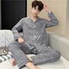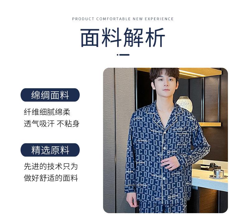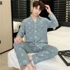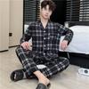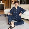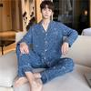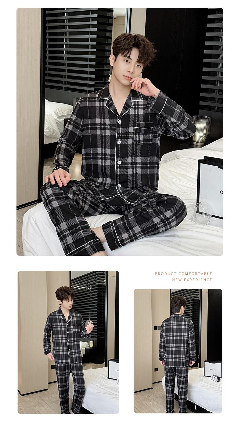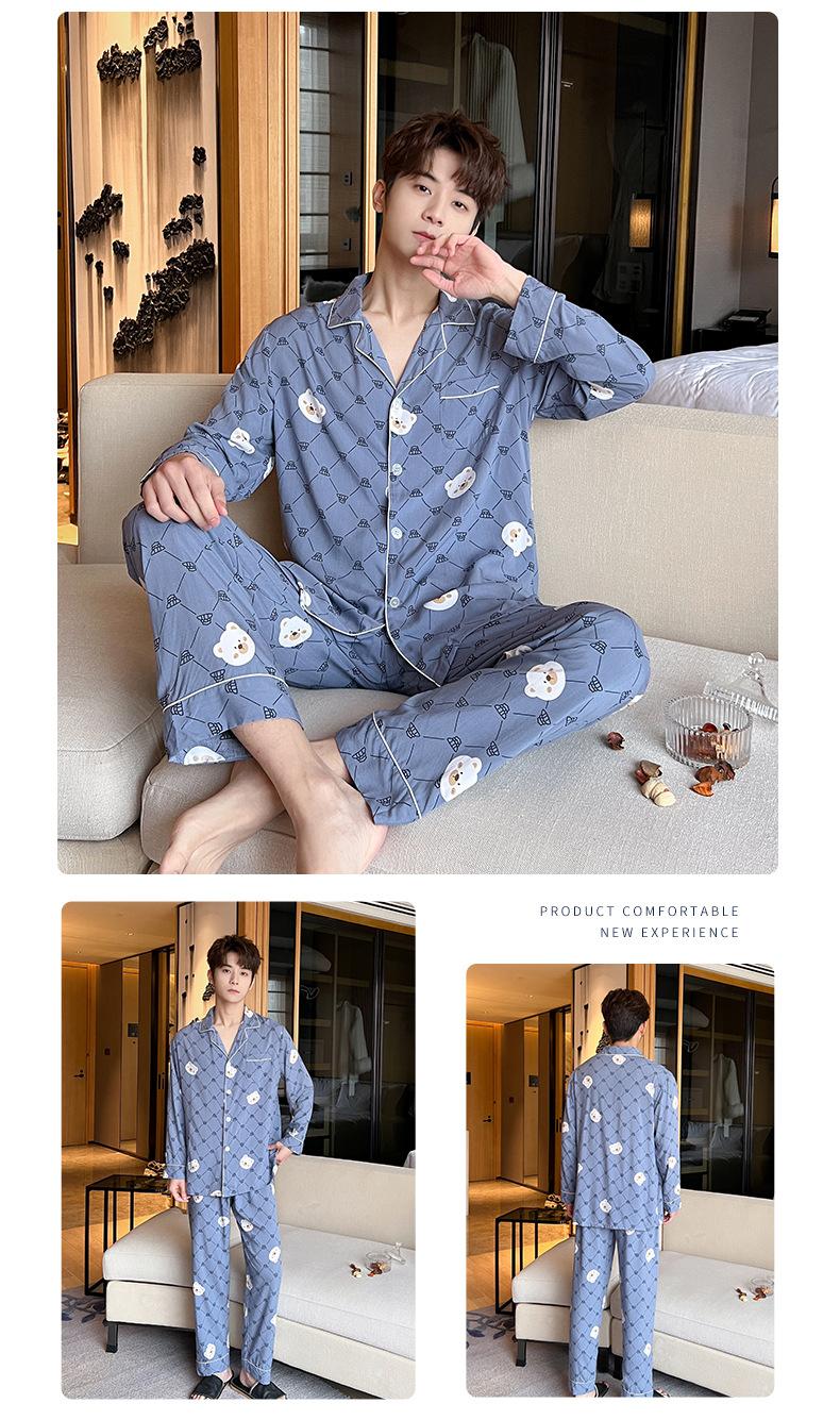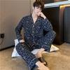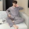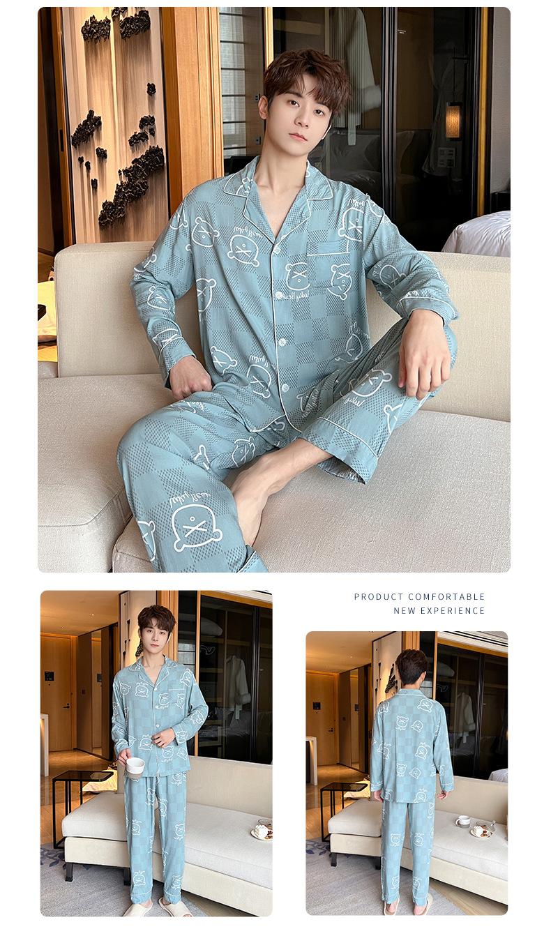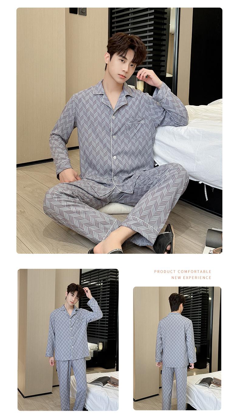 Novo pijama de seda de algodão de manga comprida masculino primavera e outono simples de alta qualidade fino lapela verão masculino casa desgaste terno