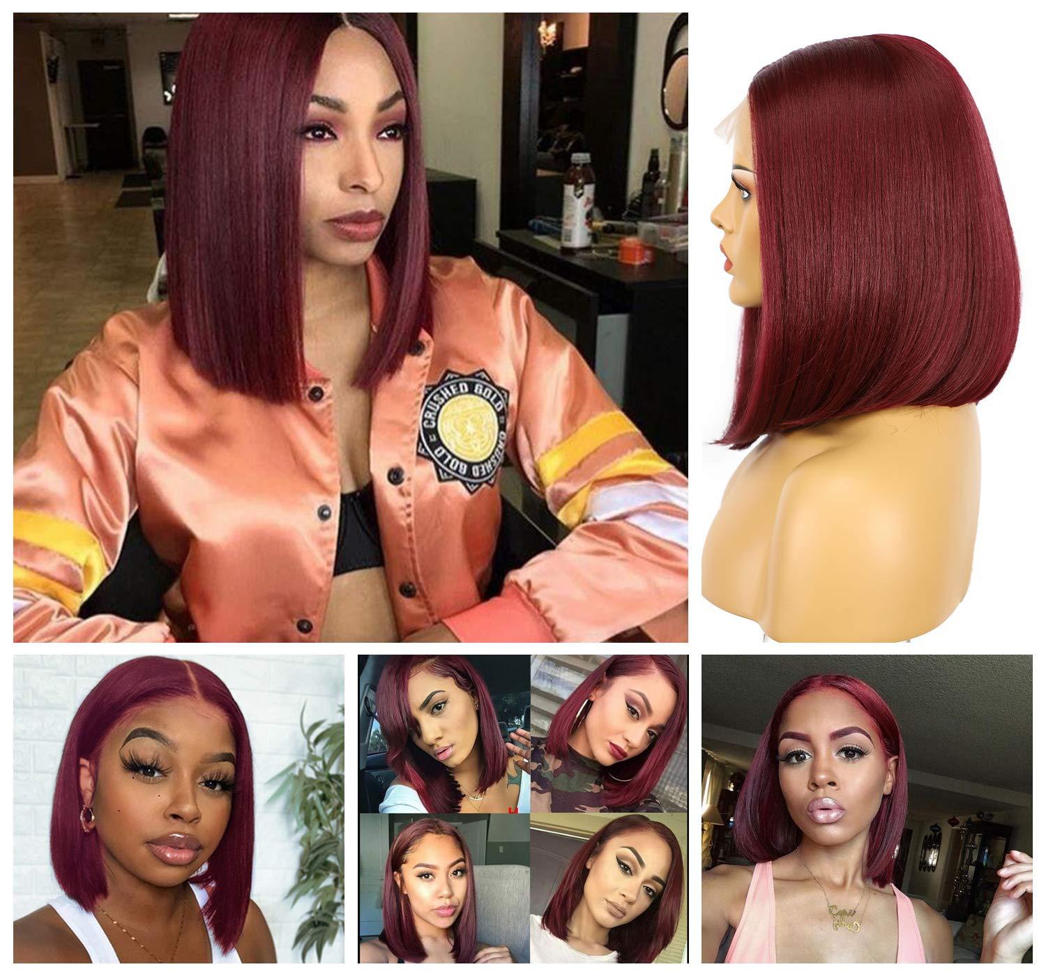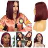 Xuchang peruca de moda europeia e americana, peruca de renda frontal feminina, vinho, vermelho, cabelo curto e liso, fibra química, peruca de renda