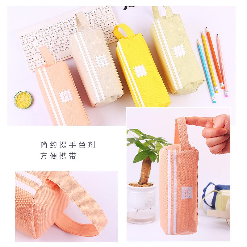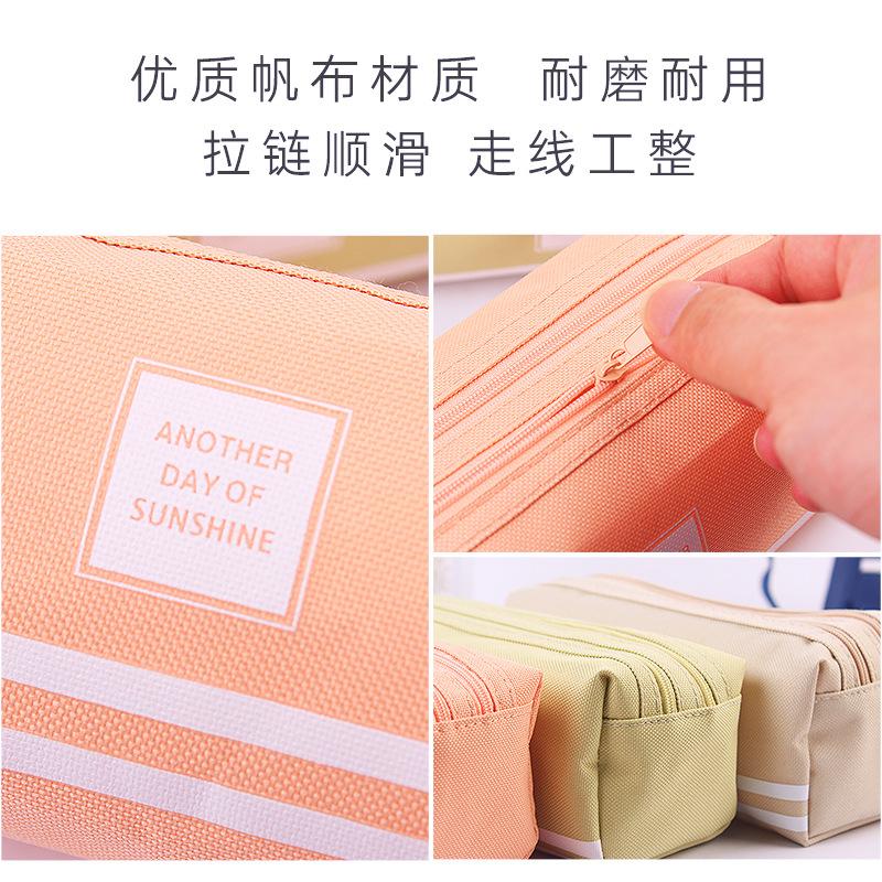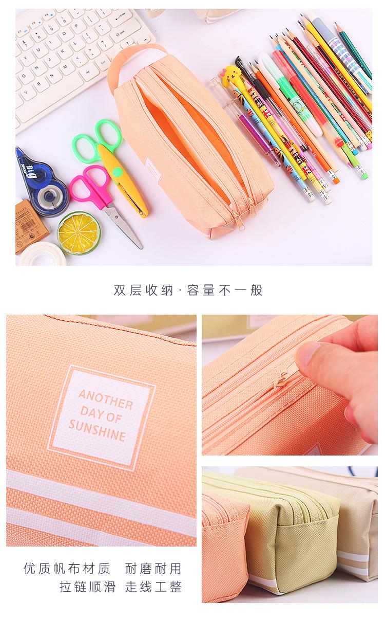 Grande Capacidade Pencil Case Canvas Grande Capacidade Pencil Case Camada Dupla Simples Multifuncional Solid Color Small Fresh Pencil Case Caixa de papelaria