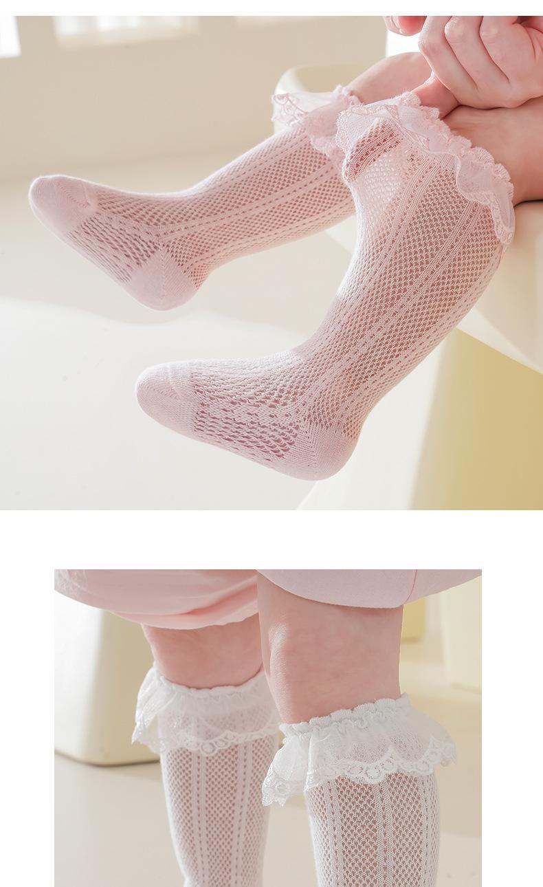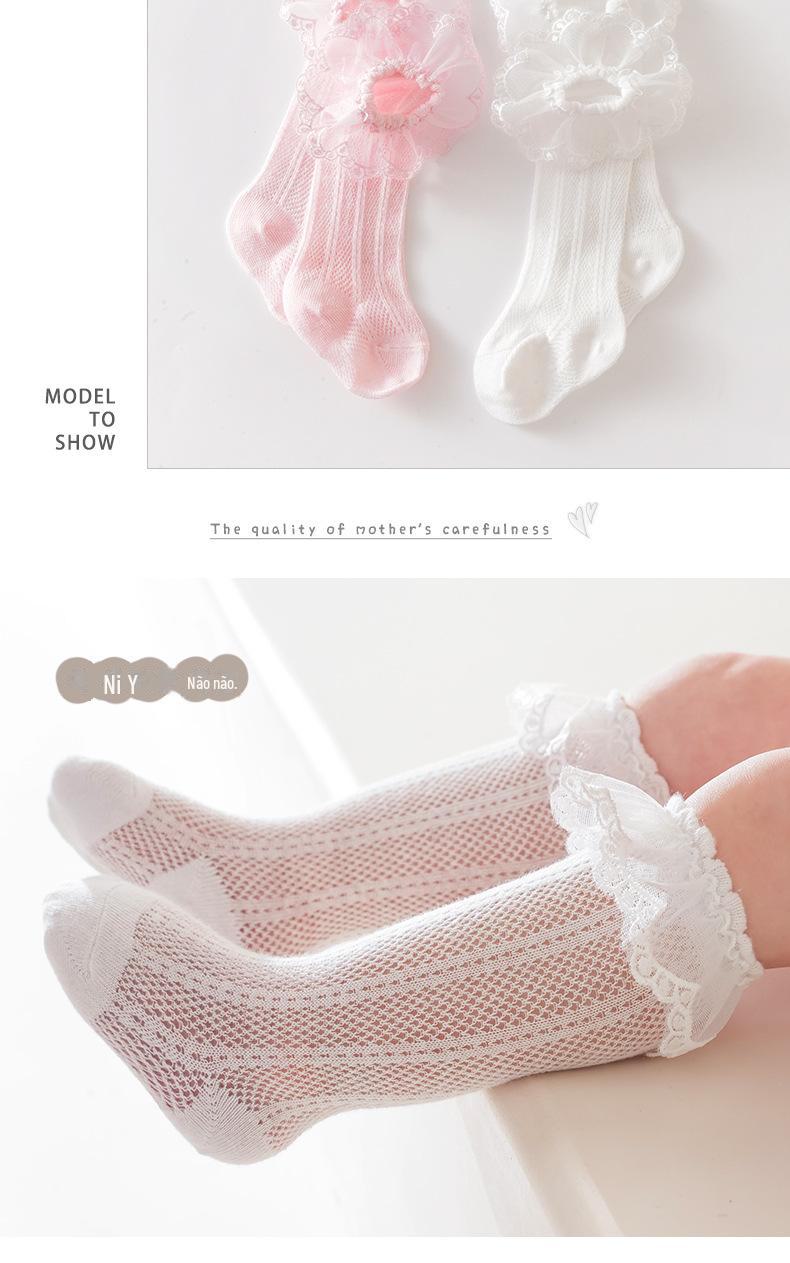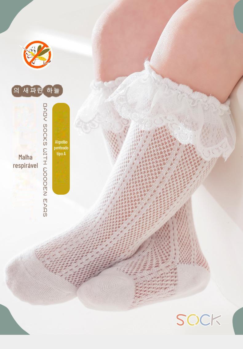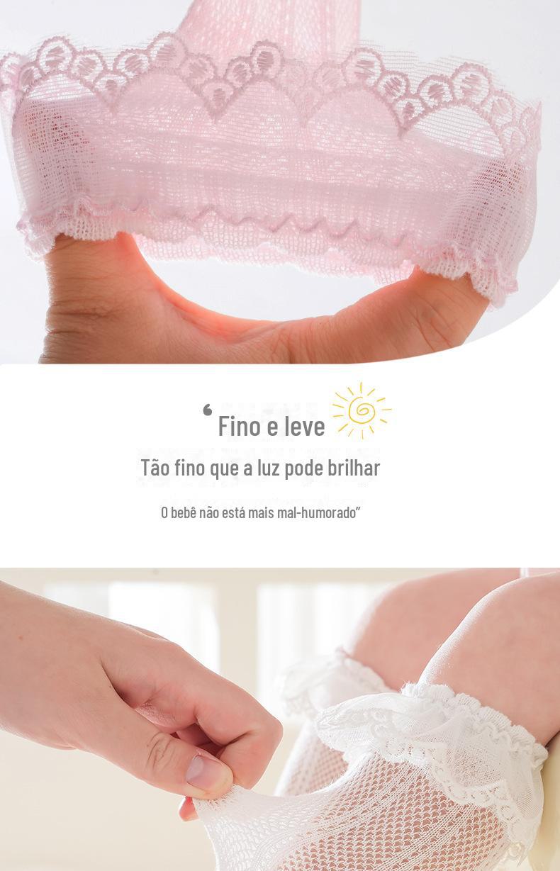2024 Novo Estilo Meias Verão Fino Malha Respirável Bebê Princesa Renda Primavera e Outono Elástico Pé Meias de Renda