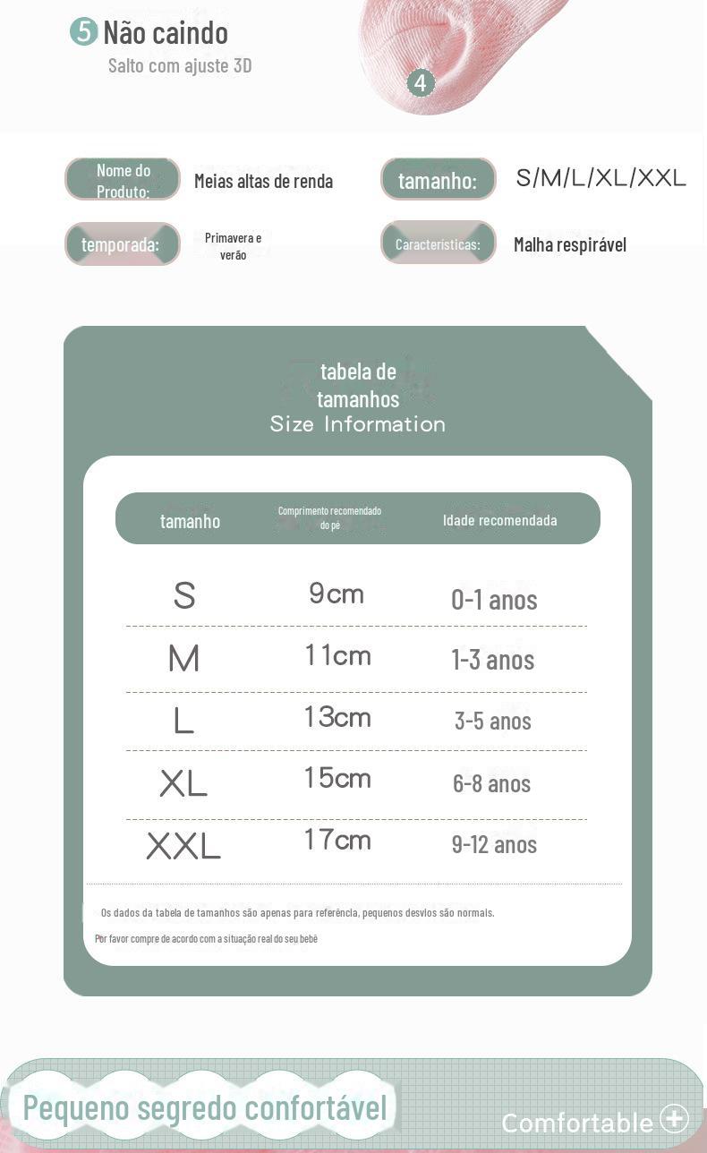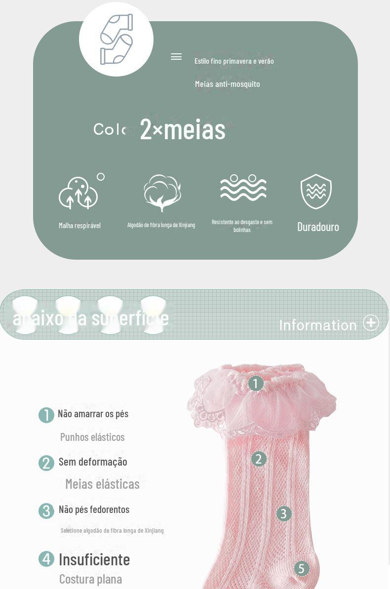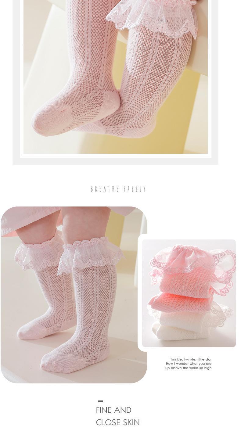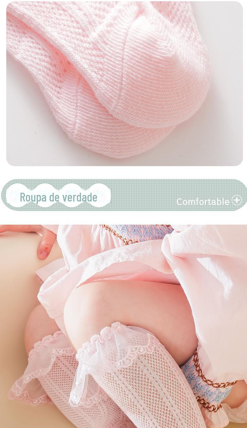 2024 Novo Estilo Meias Verão Fino Malha Respirável Bebê Princesa Renda Primavera e Outono Elástico Pé Meias de Renda