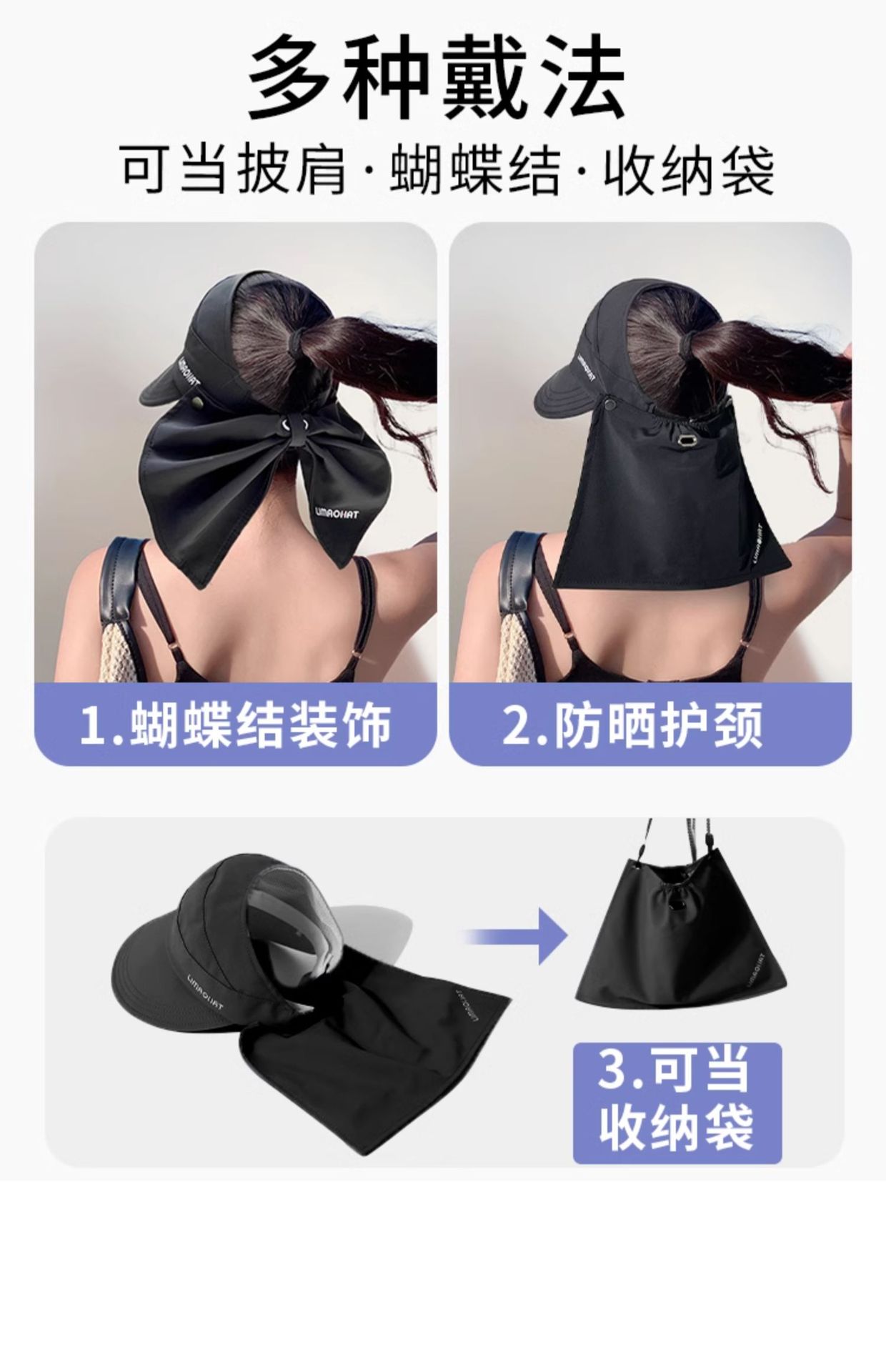 Pode ser Recebível Chapéu Protetor Solar Feminino Vazio Top Rabo de Cavalo Alto Chapéu de Pescador Primavera e Verão Ao Ar Livre Cobertura Facial Secagem Rápida Arco Chapéu de Sol