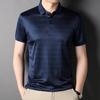 Nova camiseta masculina de seda amoreira para o verão de 2025, pulôver listrado de lapela para homens jovens e de meia-idade, camisa polo de manga curta