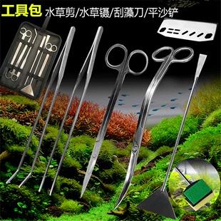 | Conjunto de ferramentas para aquário, tesoura longa de aço inoxidável, pinça para plantas aquáticas, extra longo, espessado, ferramentas para aquário, pá plana, escova de esponja |