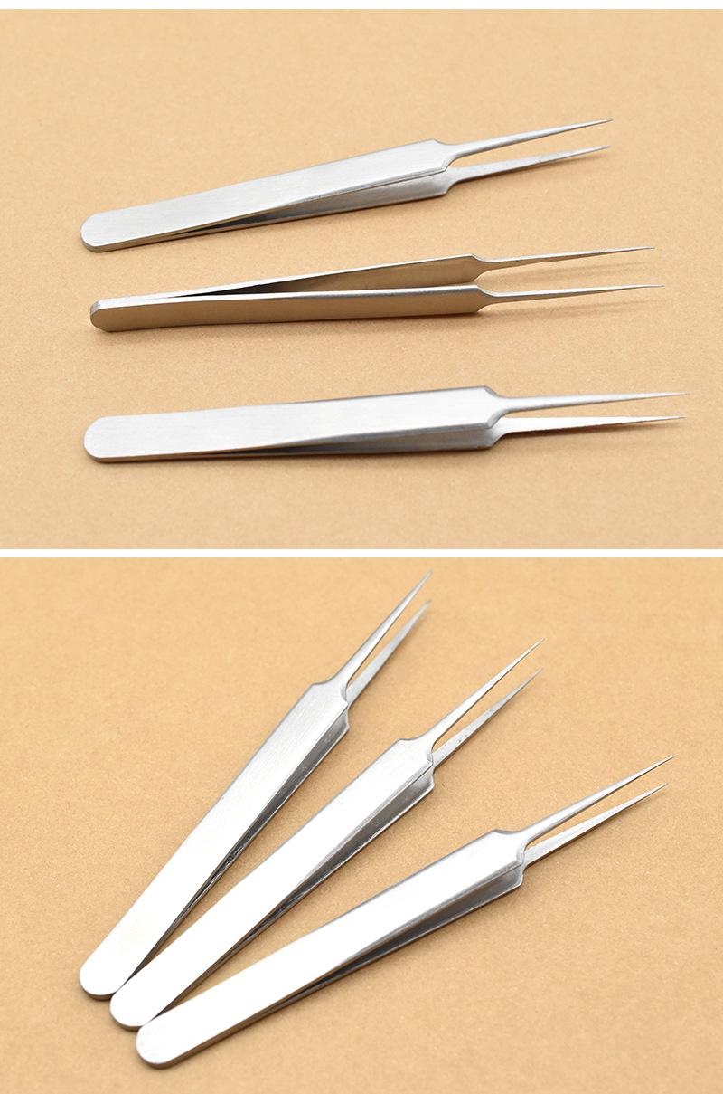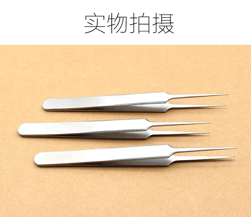 | Pinça de aço inoxidável, antimagnética, borda redonda, adesivo de cotovelo pontiagudo ST1.5mm, desmontagem de cílios de enxerto de ninho de pássaro e pinça de reparo |